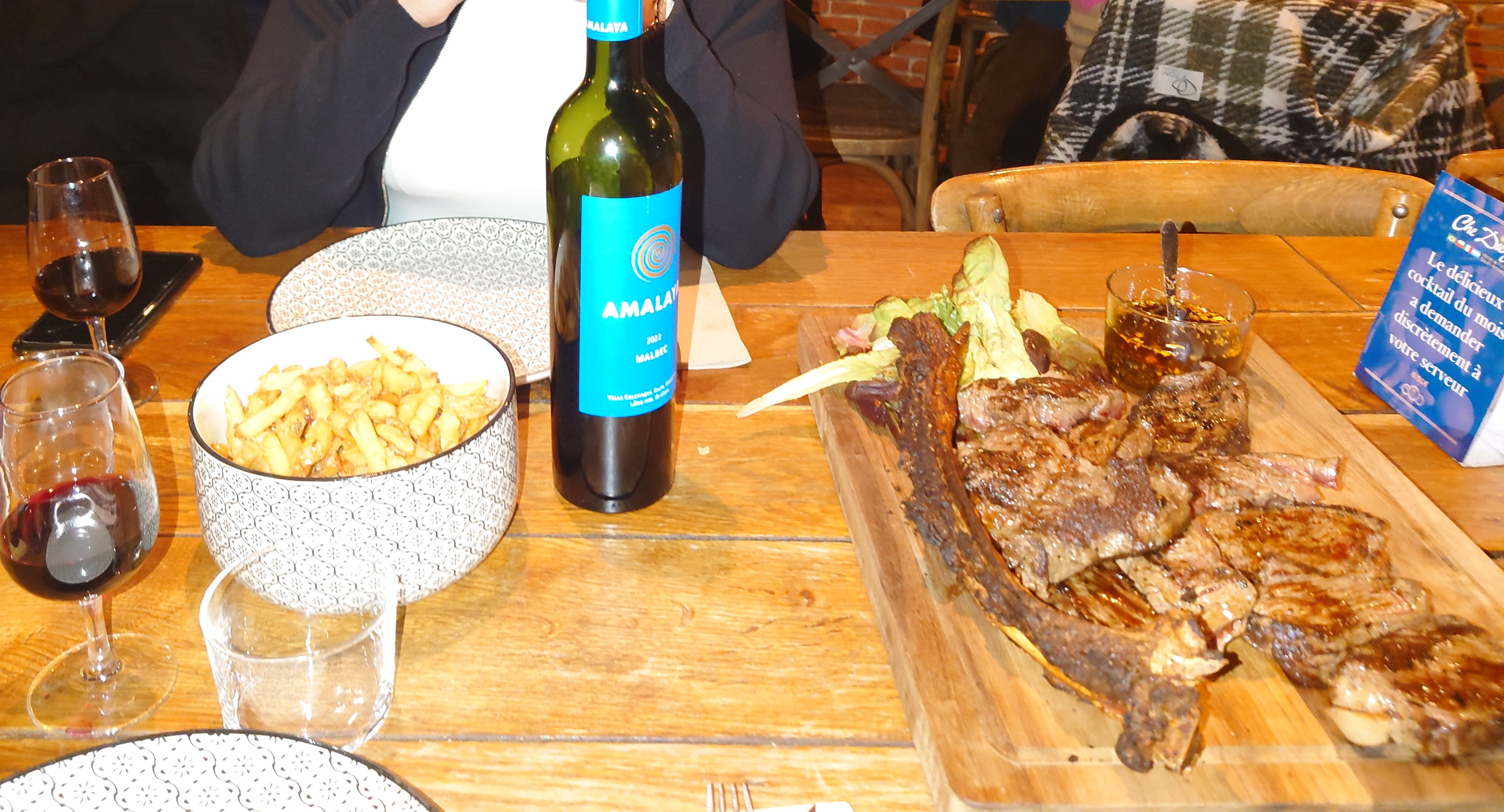 Très bon moment ! Entrée-plat-vin super, meilleure viande que j'ai mangé de l'été ! Dessert à éviter si vous n'êtes pas trop sucré