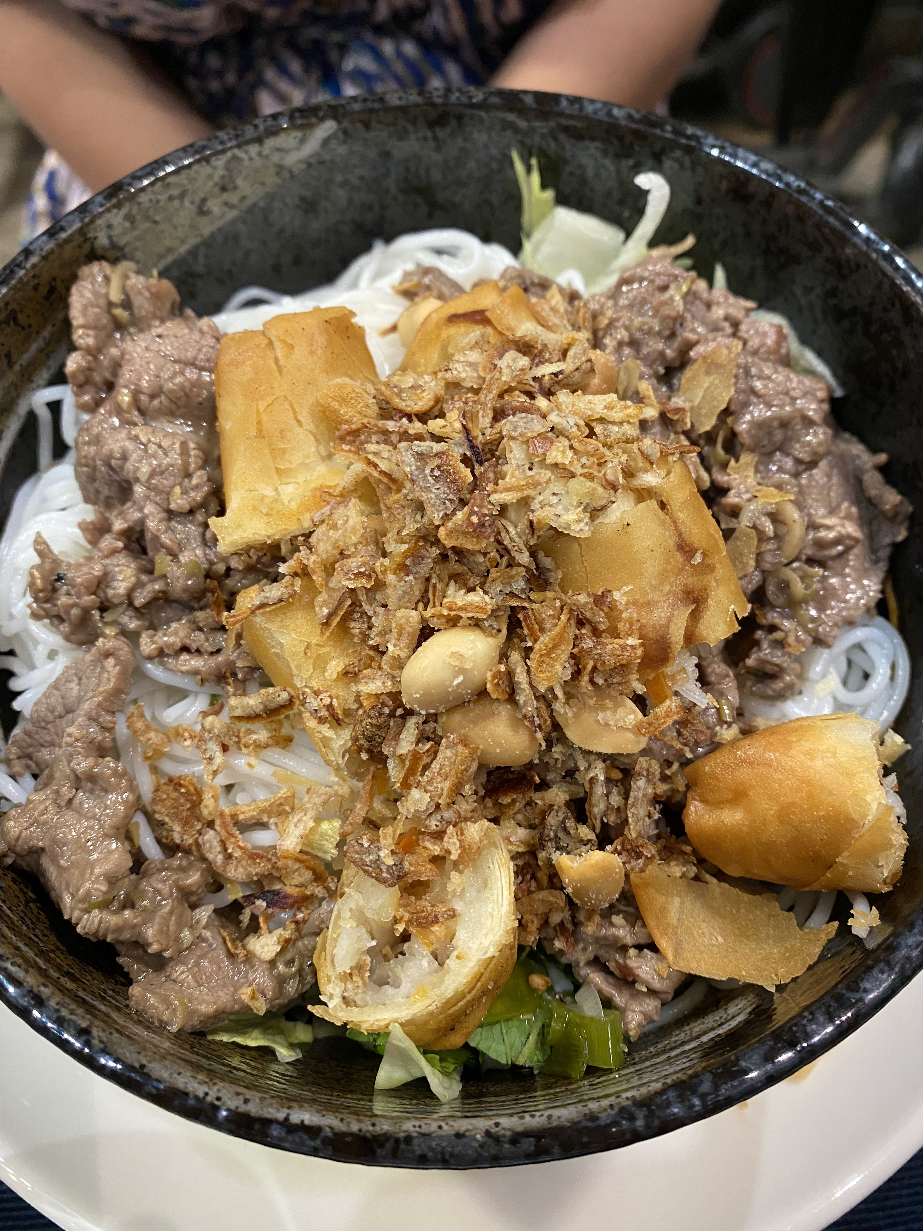 Je suis entrain de manger un bo bun végétarien c’est très très bon !!