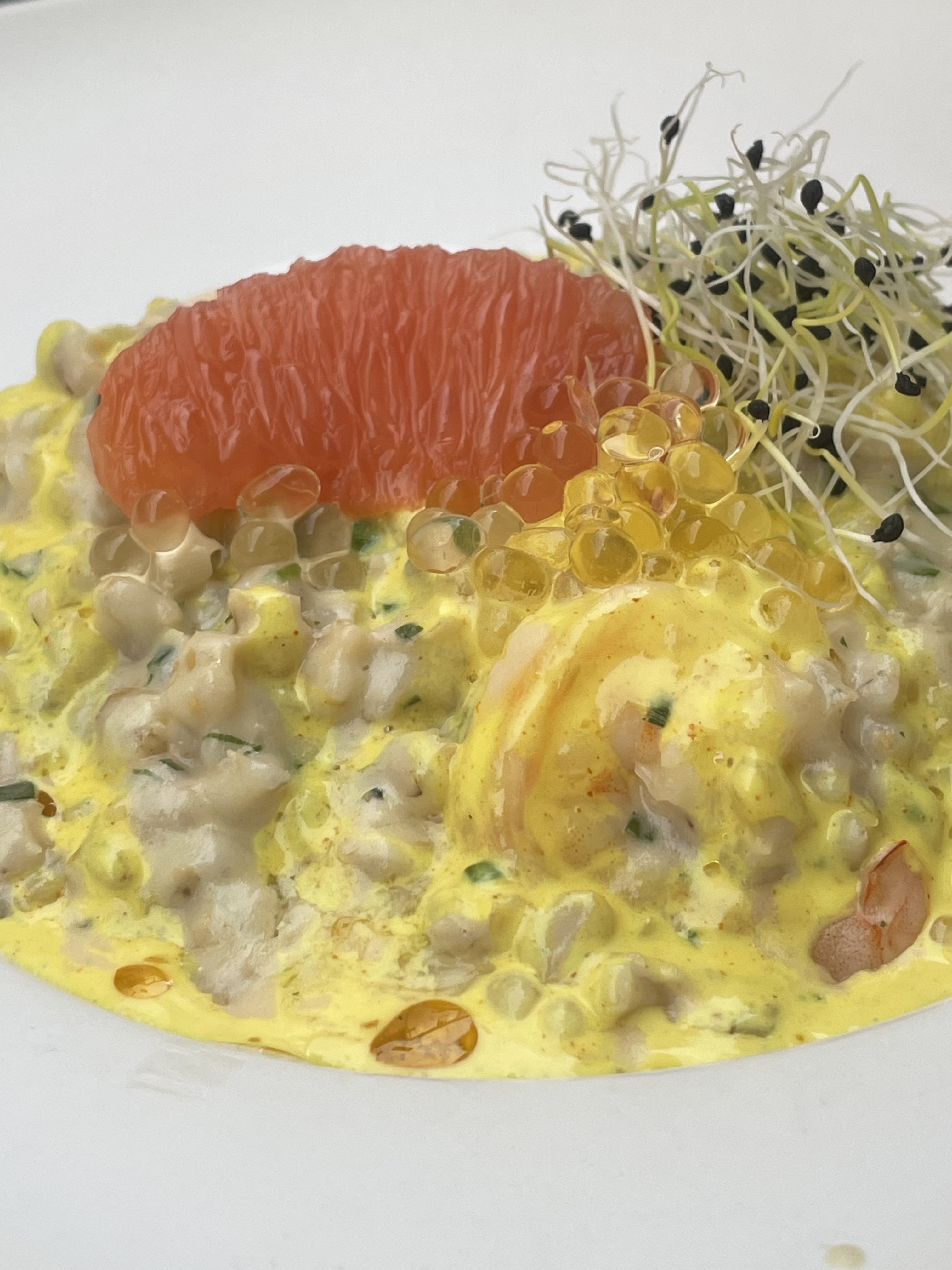 Excellente table dans un cadre agréable avec une musique discrète sinon côté cuisine j'ai goûté à l'orgeotto crevettes, magnifique saveur et encore bravo. Relevé le défi du kilbus est très réussi.