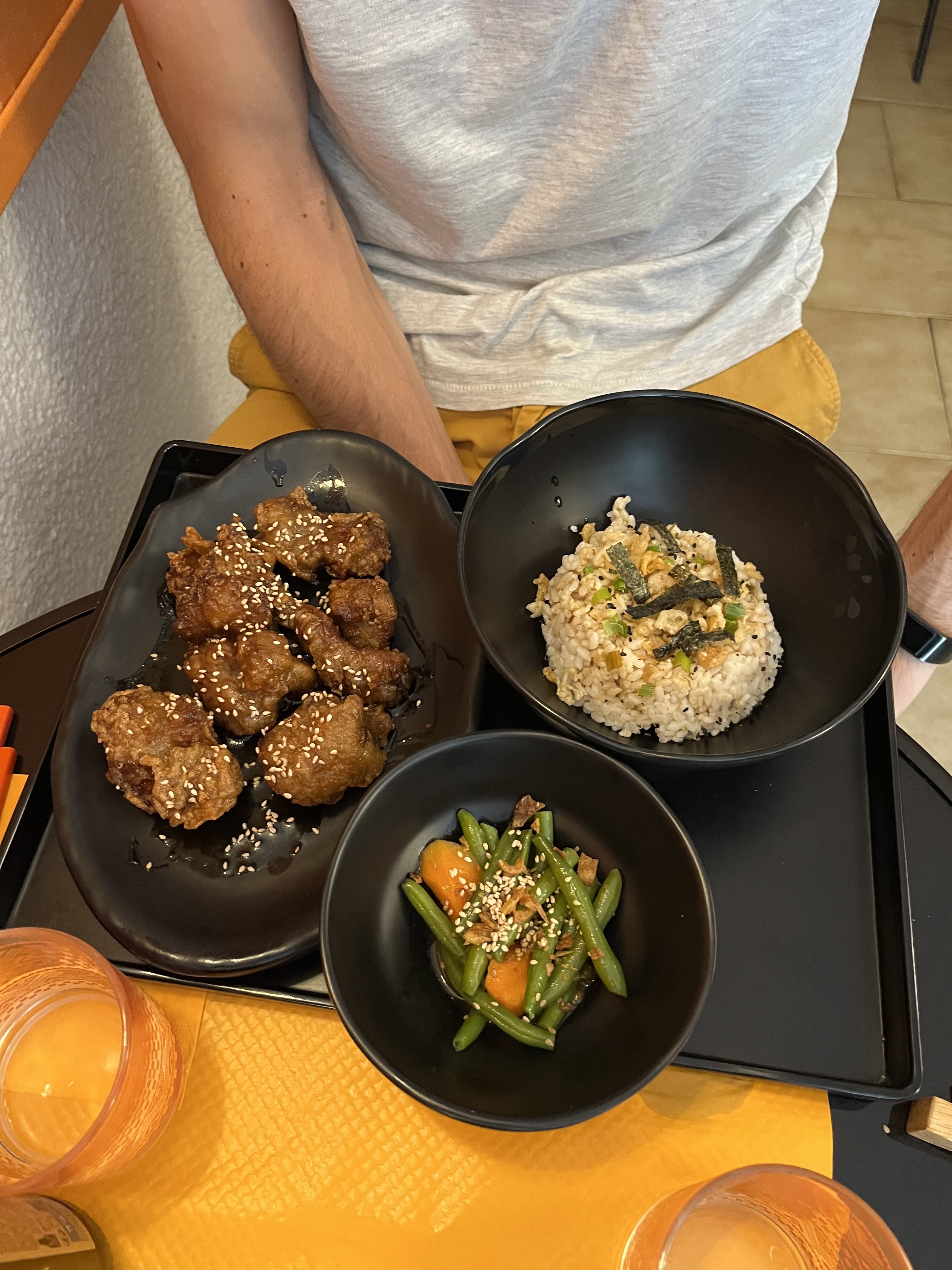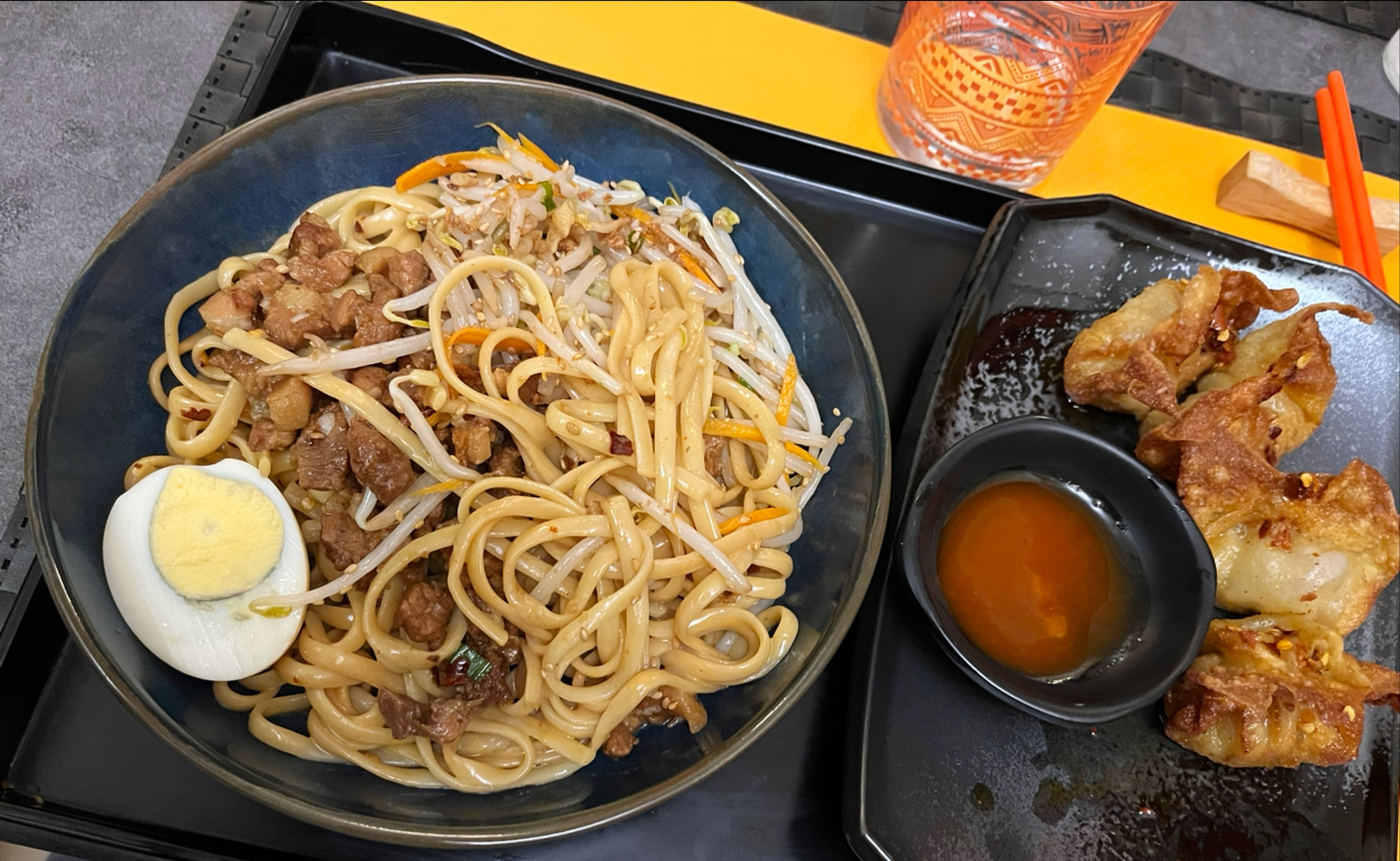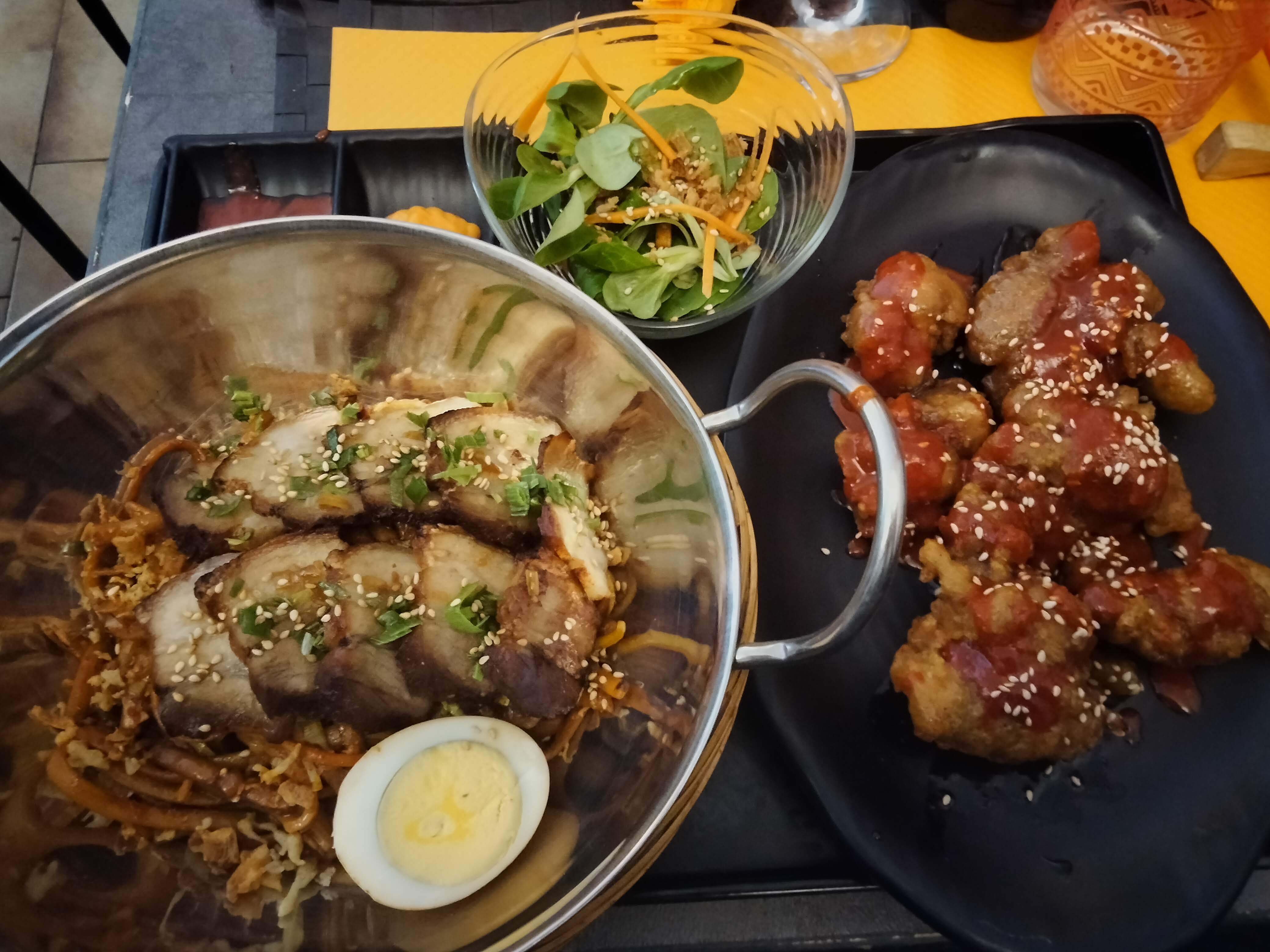 Incroyable !!! J'ai pris le poulet à la coréenne avec les nouilles pimentées et ma copine le tofu qui est aussi très bon 👌🏻