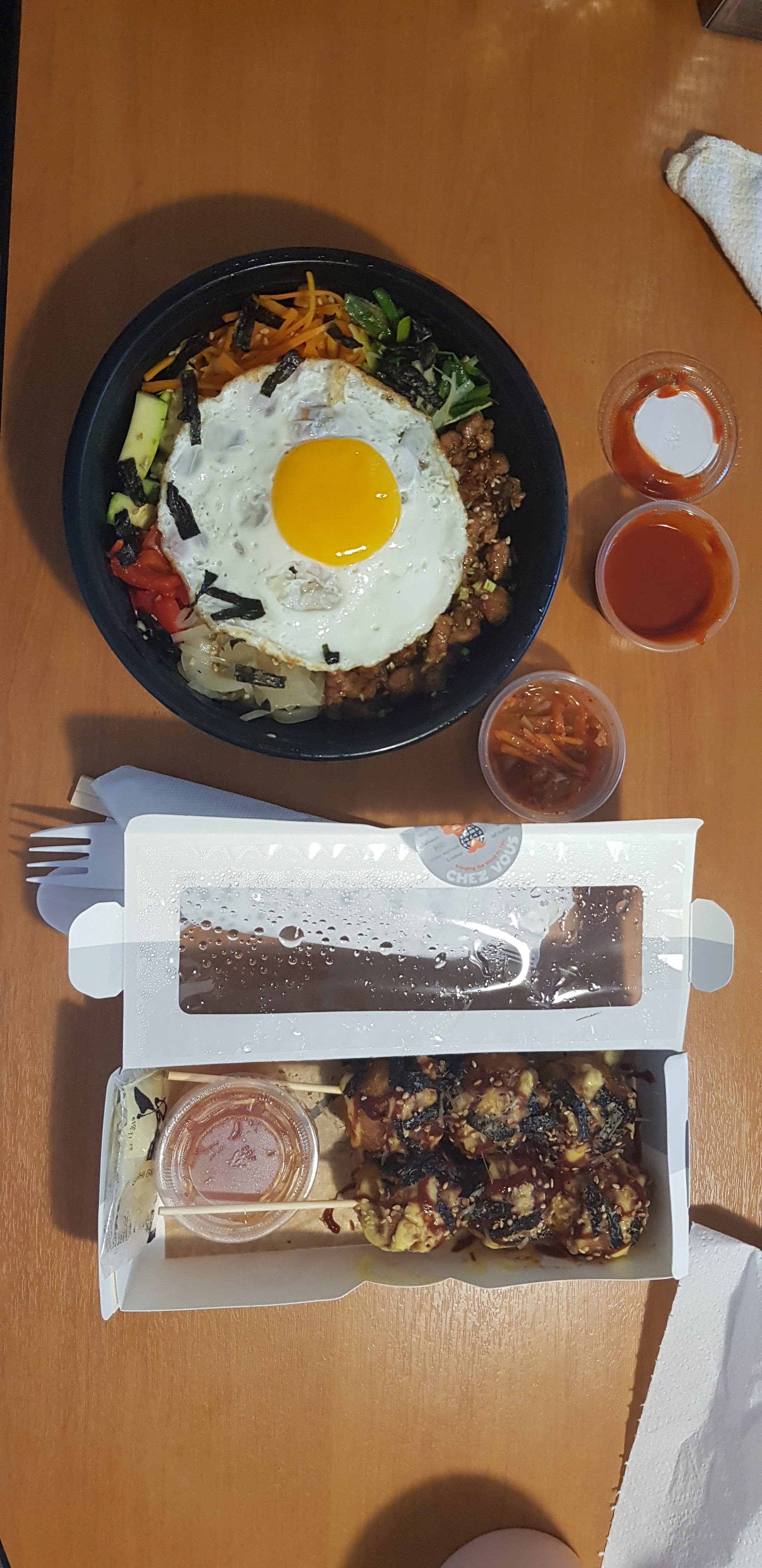 Il y avait un bibimbap pour la livraison d'ici et c'était super. L'emballage était très mignon. Ils vous donnent le choix en ce qui concerne le piquant de la sauce, ce que j'ai trouvé très agréable étant donné que tout le monde n'est pas à l'aise avec la façon dont la cuisine asiatique peut être épicée. Et ils comprennent également une portion de Kimchi coupée trop petite à mon goût. La nourriture était délicieuse bien qu'un peu chère pour la livraison. Je visiterais certainement cet endroit la prochaine fois.