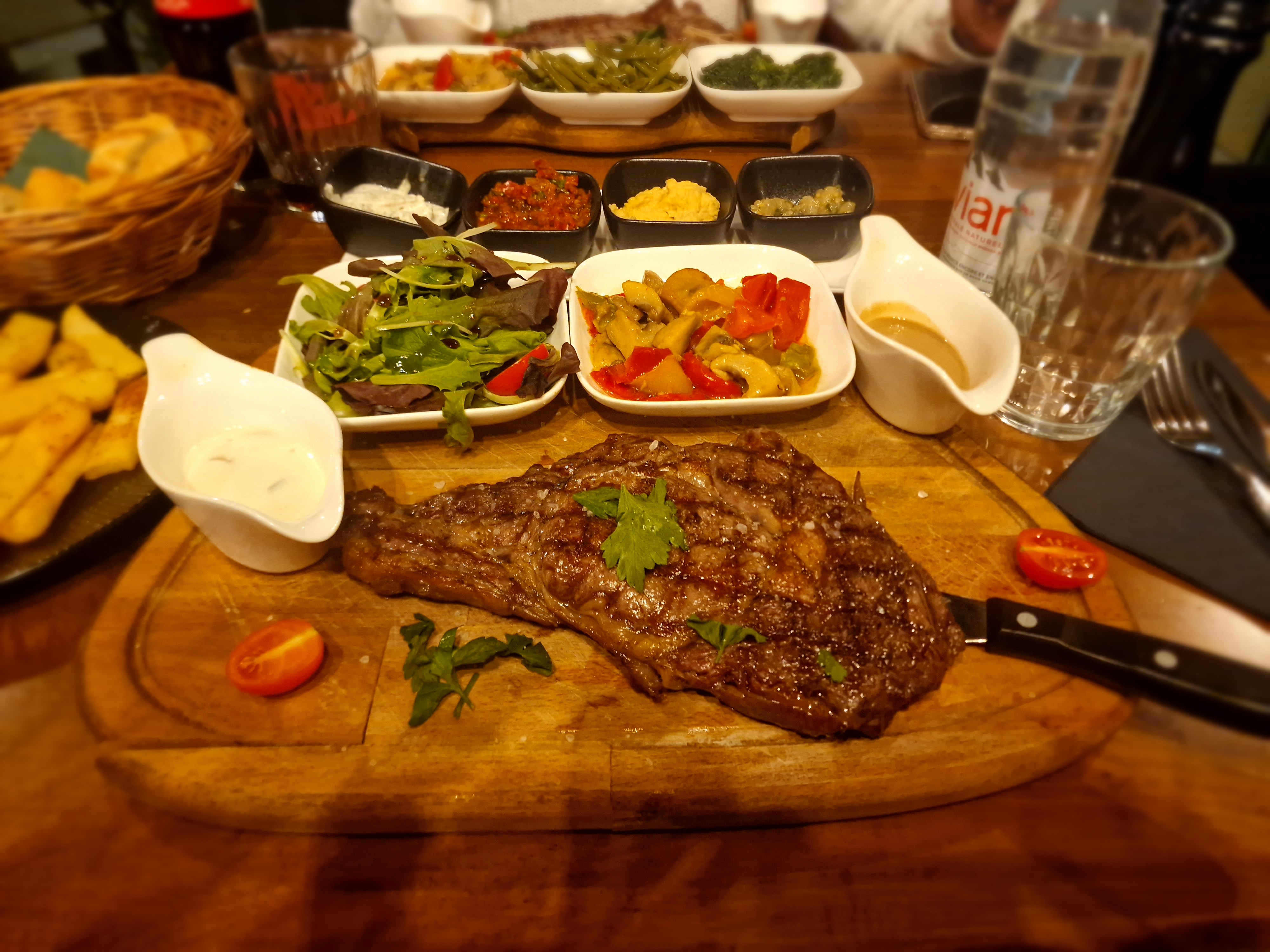 Nous avons eu droit à un service très agréable et personnalisé par le propriétaire d’origine Turc. Il nous a très bien conseillé ses différentes viandes maturées et certifiées. Servi avec un vin excellent vin rouge, nous nous sommes régalés avec un newyork steack , frites maison et champignons frais. La carte des dessert est courte. Tout est fait maison. Je vous recommande particulièrement la « glace au feu »: une énorme boule de glace maison enveloppée dans une bogue. C’est surprenant et excellent. Testez ce dessert, lui seul vaut le déplacement… bravo en tout cas . Nous reviendrons !