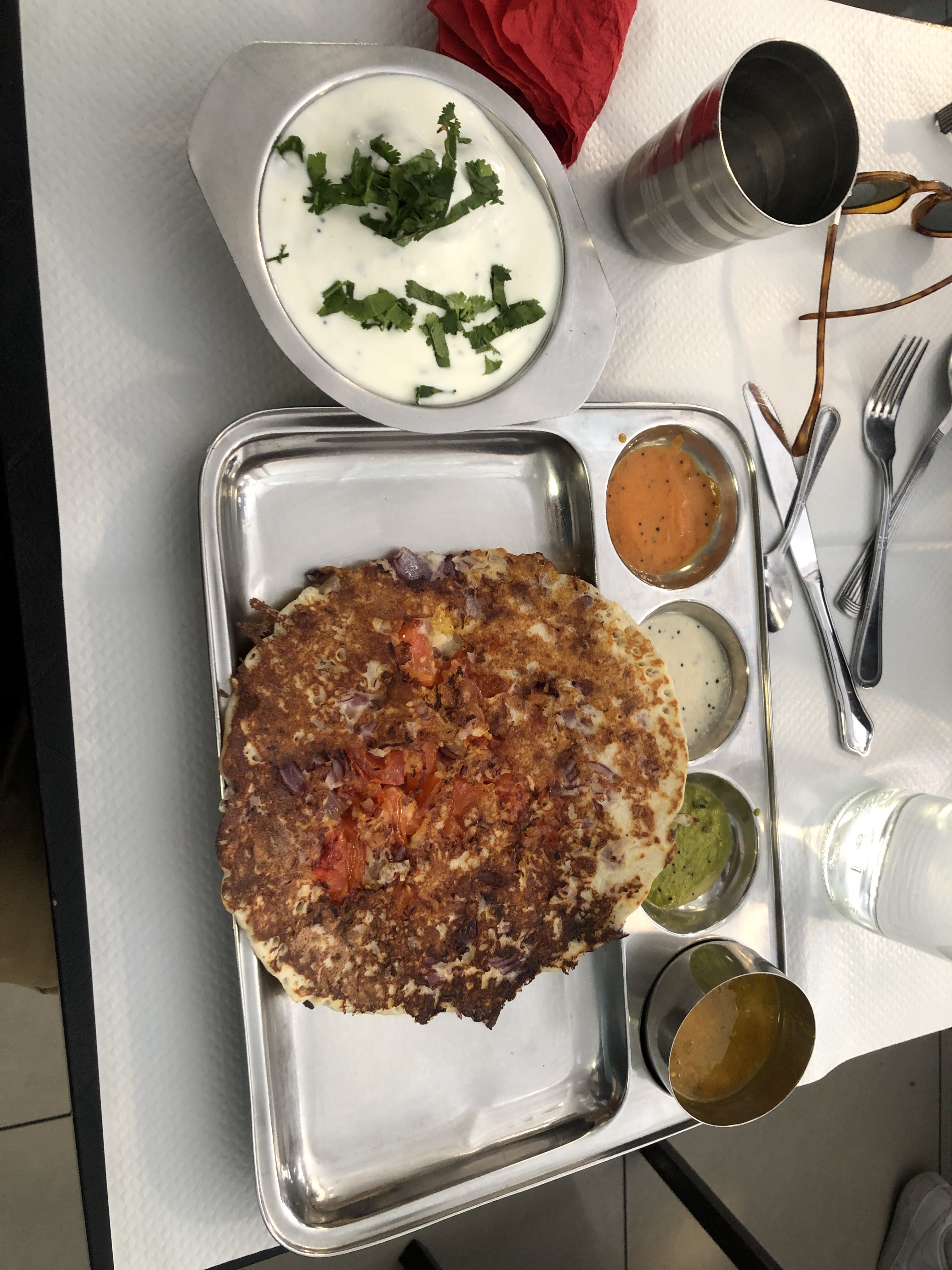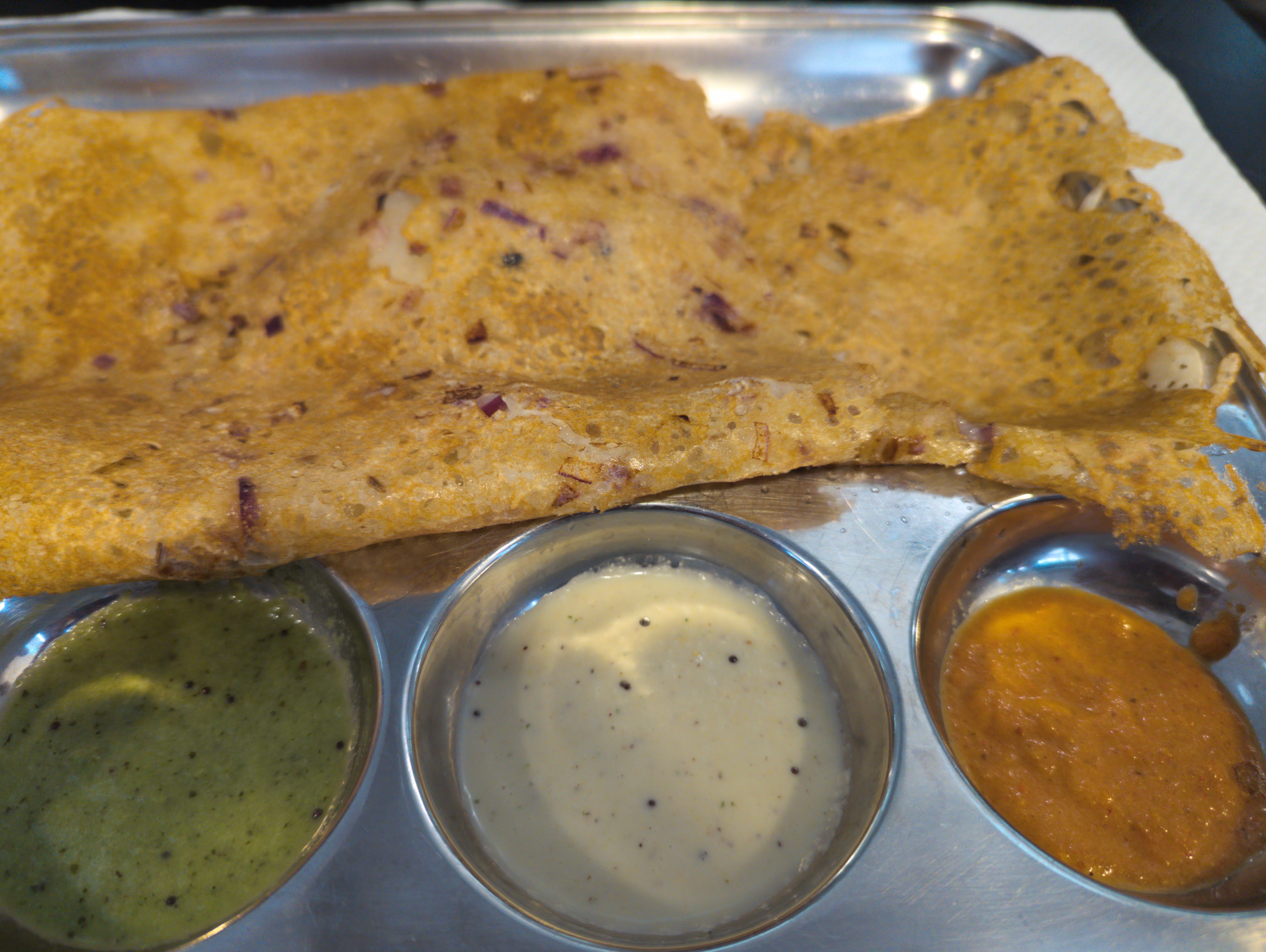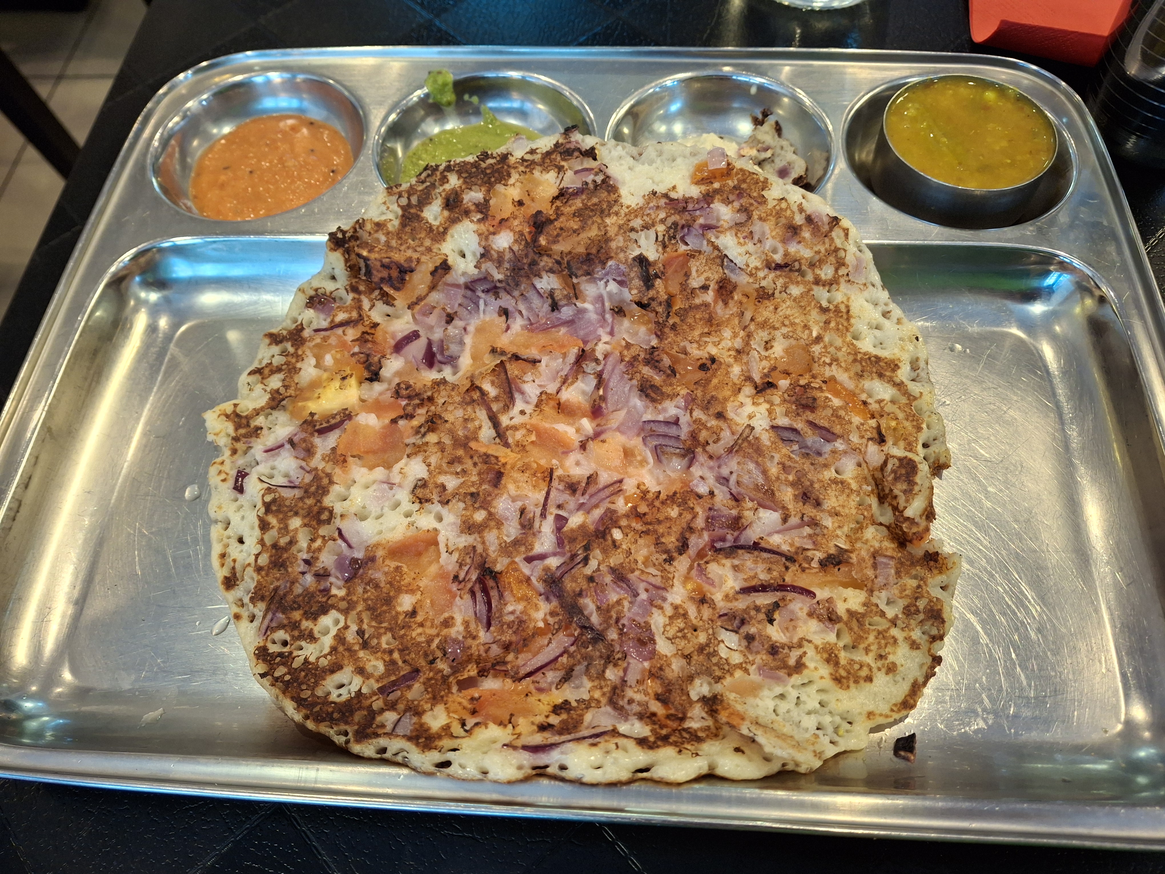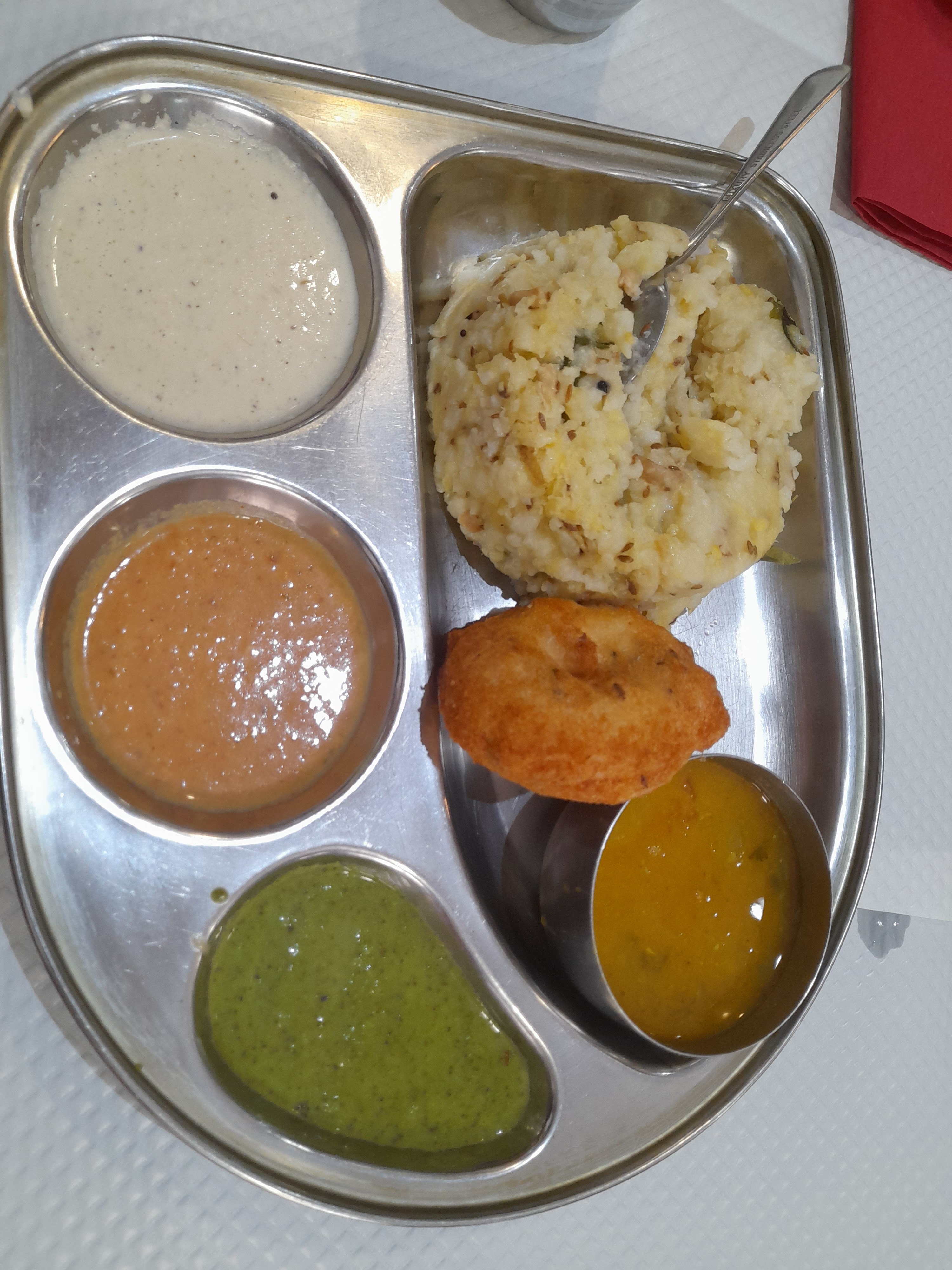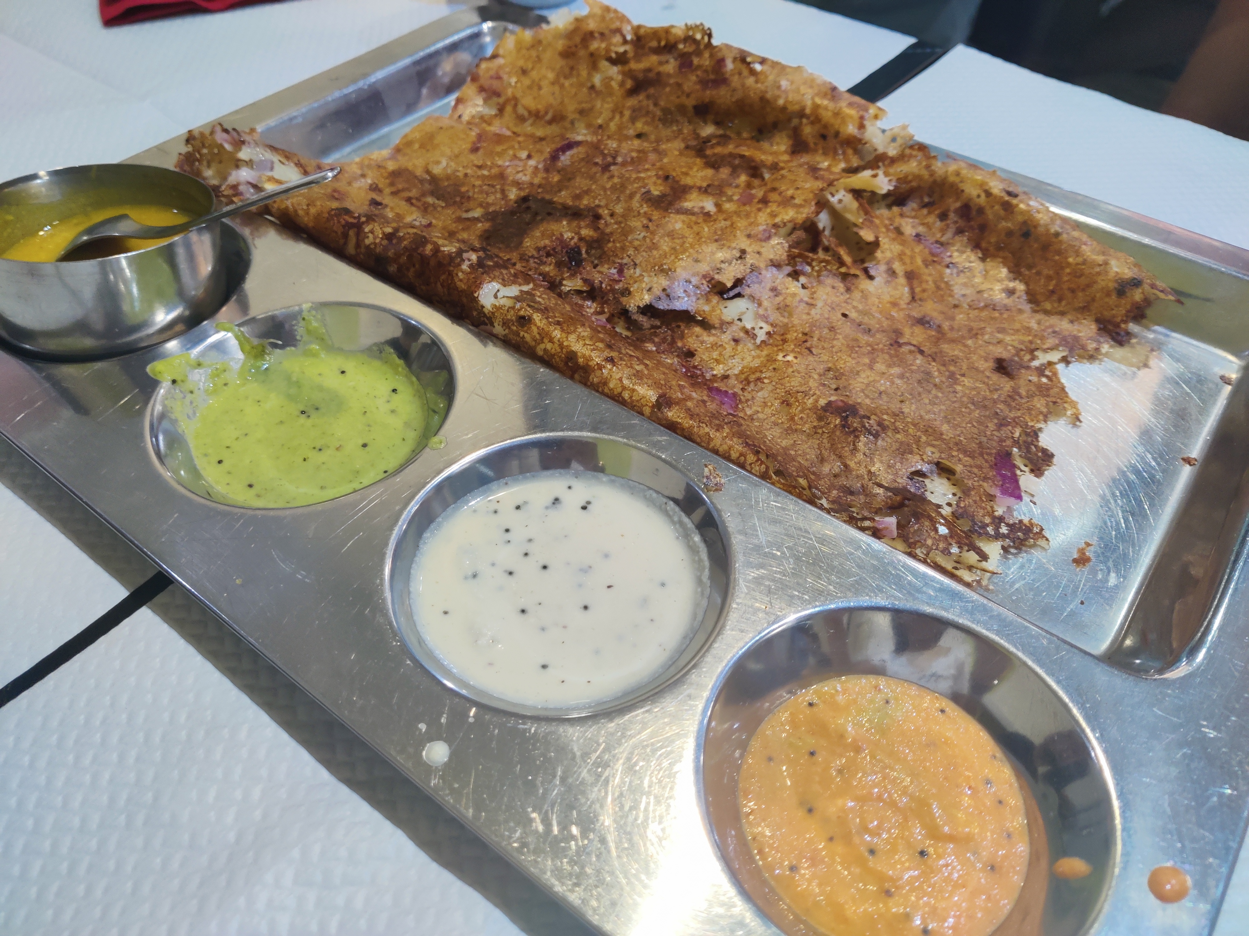 Bon service et chutneys incroyables avec l'uttapam. Dahi wada allait bien après avoir demandé du tamarin pour ajouter un peu de douceur