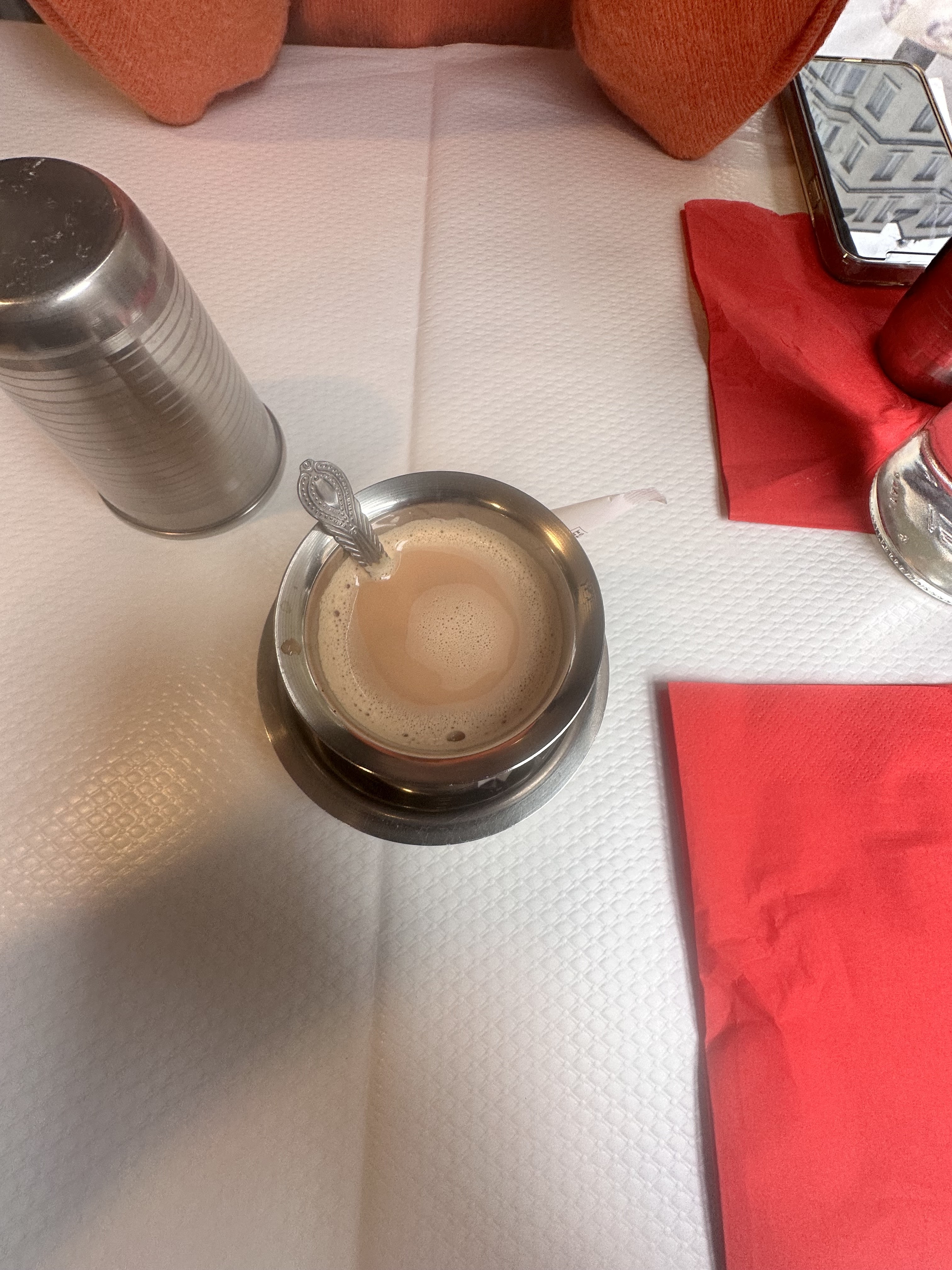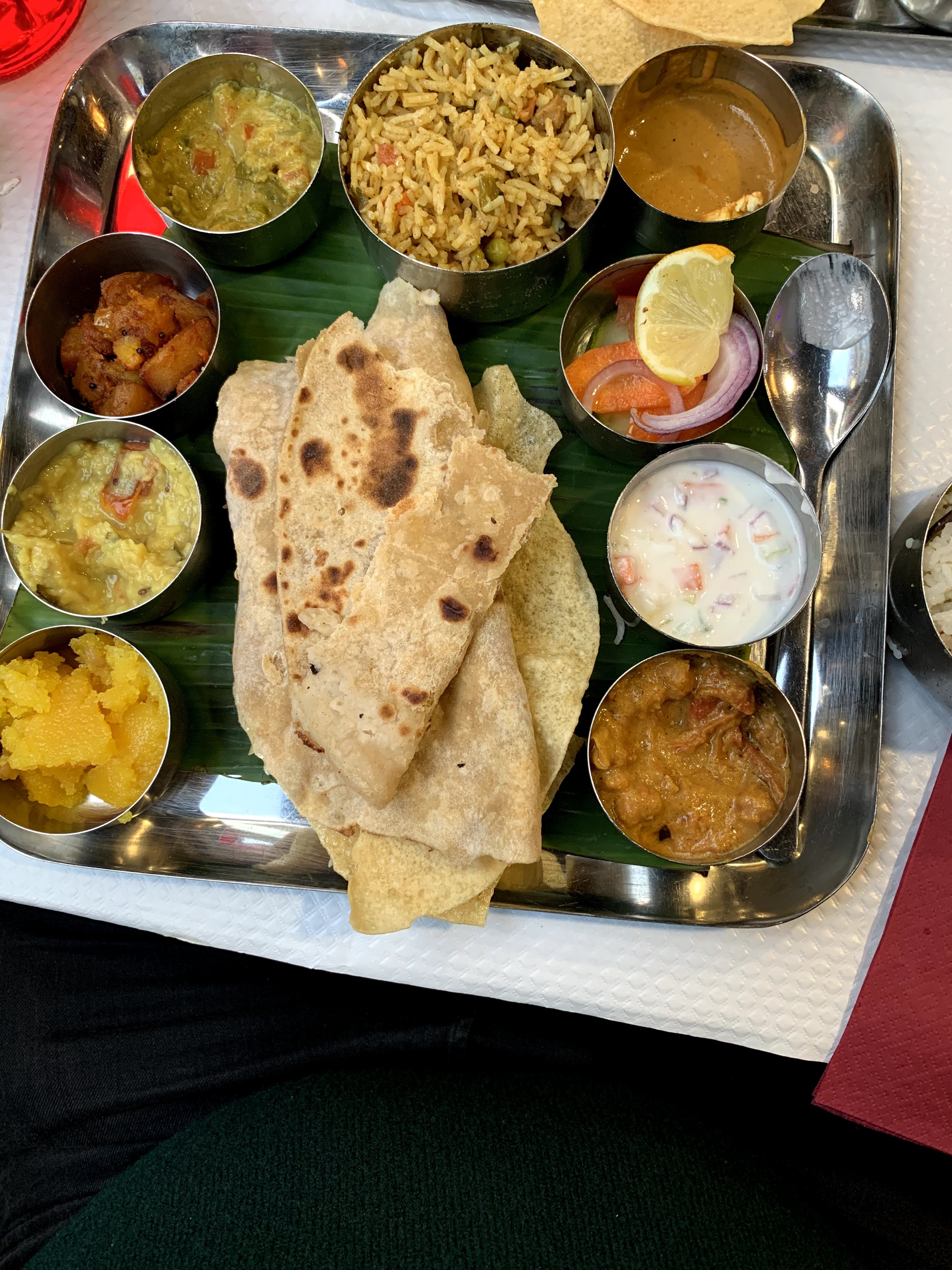 Délicieuse cuisine, les saveurs attendues sont présentes et font voyager. Bon rapport qualité/prix, lieu simple, le service est efficace et aimable, à peine francophone (plutôt bon signe). J’ai goûté pour la première fois un petit-déjeuner indien (plat traditionnel de l’Inde du Sud). Le serveur a pris le temps d’expliquer chaque spécialité. L’indian breakfast est composé : sambar (soupe aux lentilles aux épices), soupe, ghee masala dosa (crêpe à la base de pois chiches, aux oignons et pommes de terre fondantes), chutney (sauce verte à la menthe), idli (pain de riz), medu vadai (beignet aux oignons et lentilles blanche), kesari (gâteau de semoule) accompagné d’un thé chaï (offert par la maison) et un lassi à la rose 😋😋 Une vraie découverte, je recommande ! 🙂