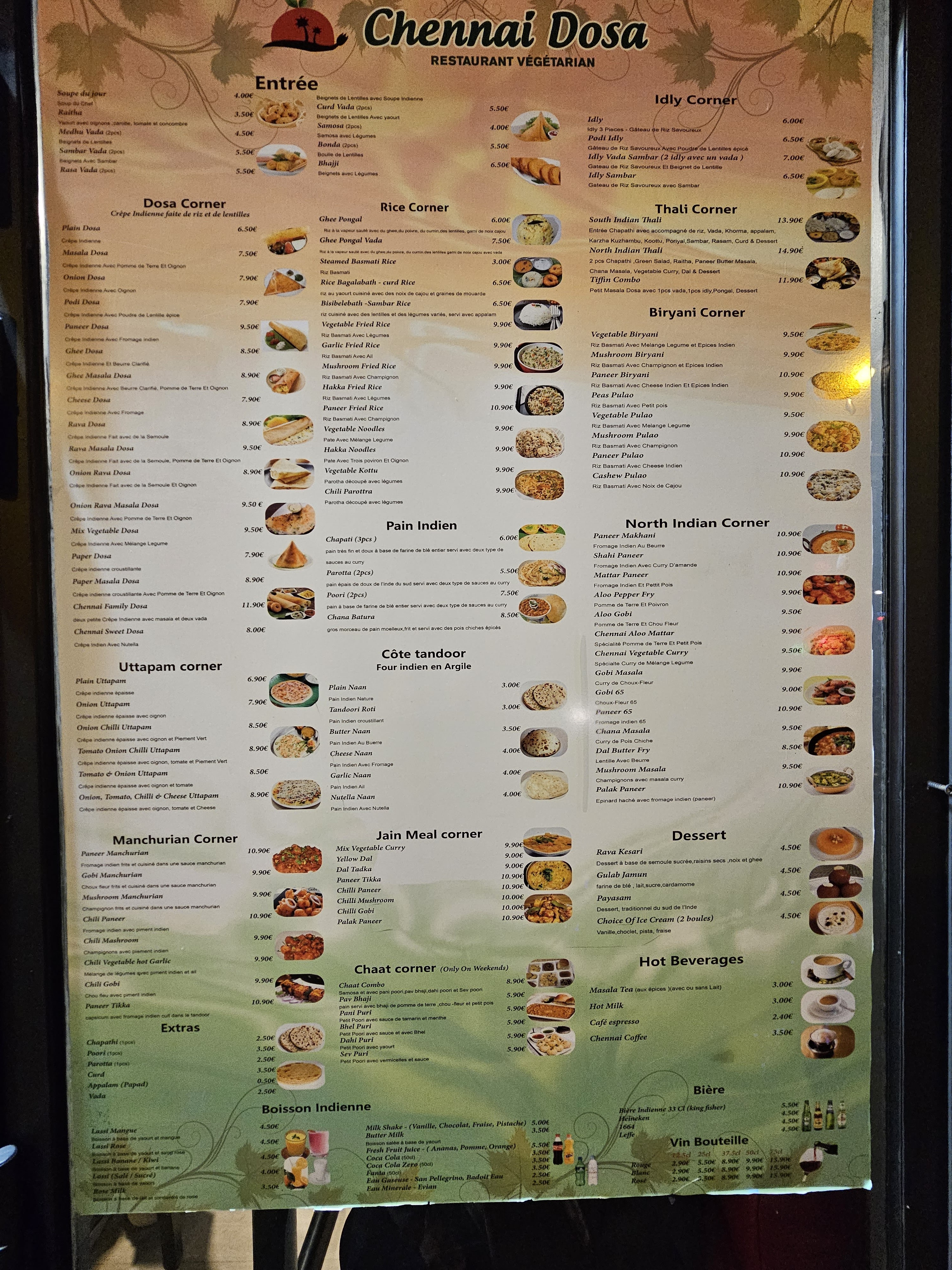 J'ai visité cet endroit presque pendant une semaine et je dois dire que c'est un endroit idéal pour déguster de la cuisine du sud de l'Inde. Ils ont un vrai goût indien authentique dans leur nourriture. Leur prix est également raisonnable, ils donnent une rude concurrence à Sarvana Bhawan. J'ai essayé leur Thaali de l'Inde du Nord, leur Thali de l'Inde du Sud, leur Masala Dosa, leur Masala Tea et leur café Chennai. J'ai le meilleur dosa de Paris, tu devrais essayer. Acclamations!!
