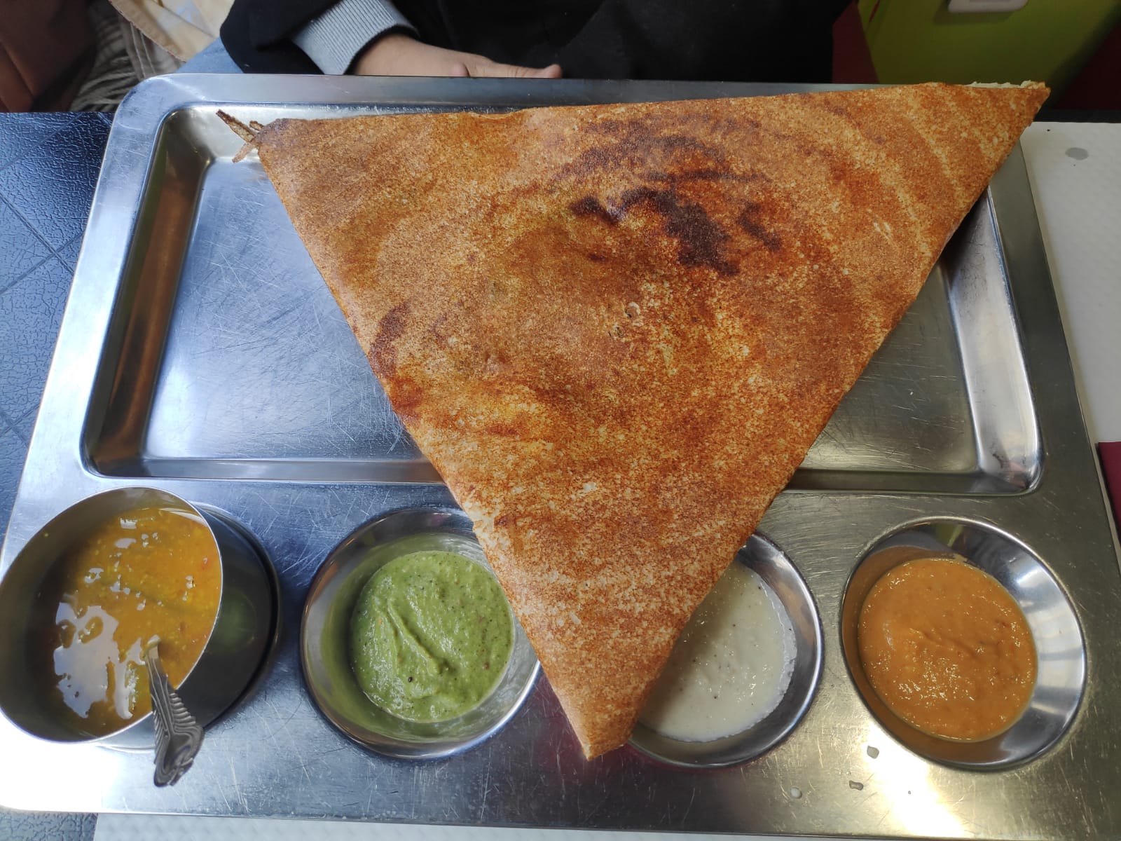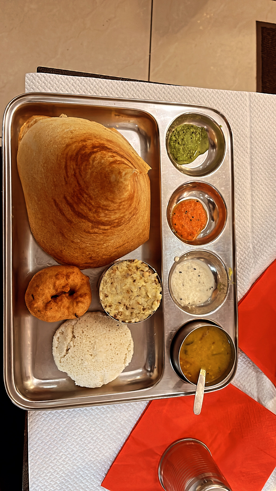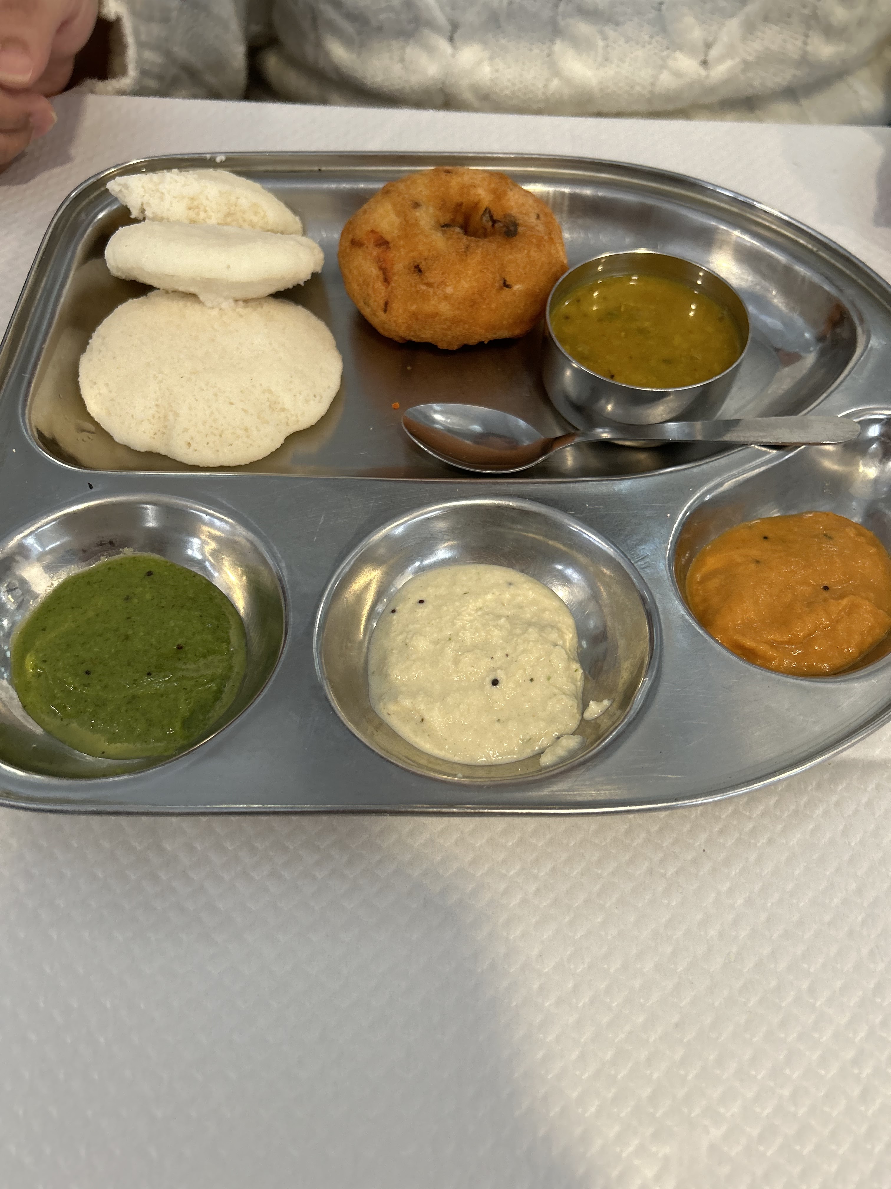 Nourriture incroyable. Service incroyable. Je dois essayer le sambhar et le chatney rouge. J'ai demandé 2 fois Sambhar et le personnel était heureux de donner. Ne manquez pas le café. Meilleur service. Tout était parfait. Hautement recommandé.