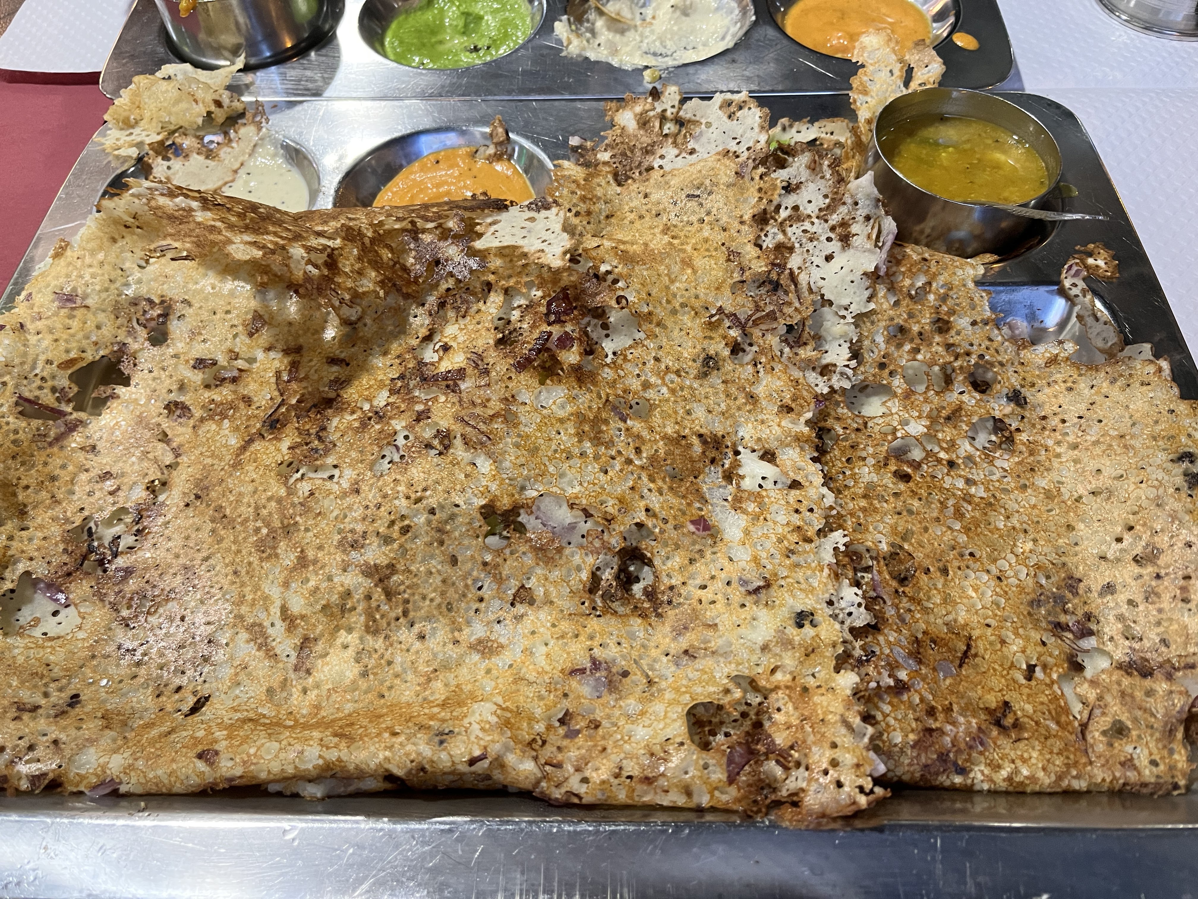 Un délice et pour un très bon prix! Comme au Tamil Nadu, on vous sert plus de Chutney si vous le demandez, sans vous le facturer. Une cuisine vegan à découvrir, avec des goûts nouveaux comparé à la cuisine européenne!