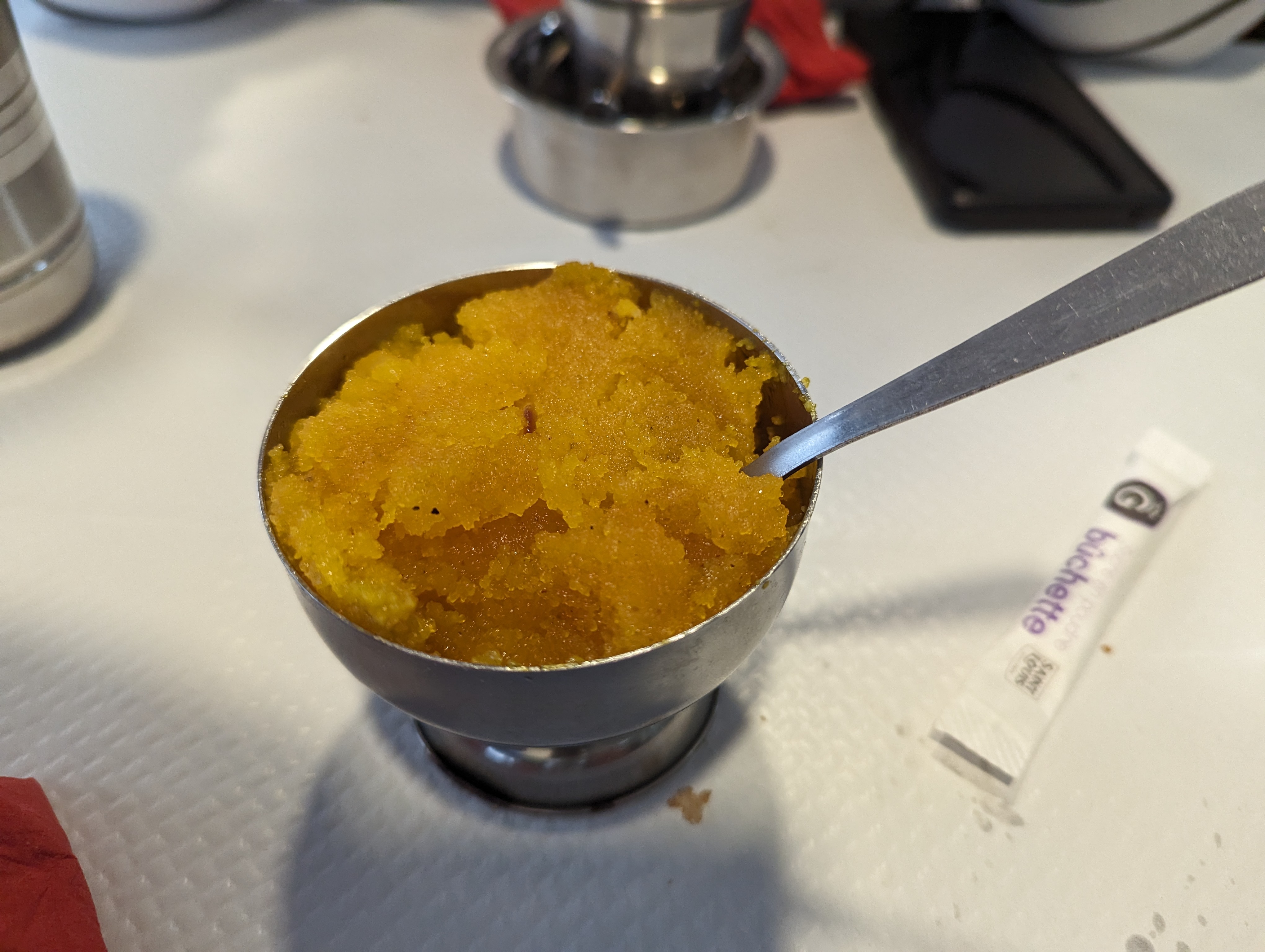 Nous fiant aux avis positifs, nous sommes venues commander à emporter pour prendre notre repas dans le train, le service a été rapide et plein d'attentions. La soupe d'épinards au fromage était un régal et le dessert offert était délicieux (semoule au gingembre et raisins secs).