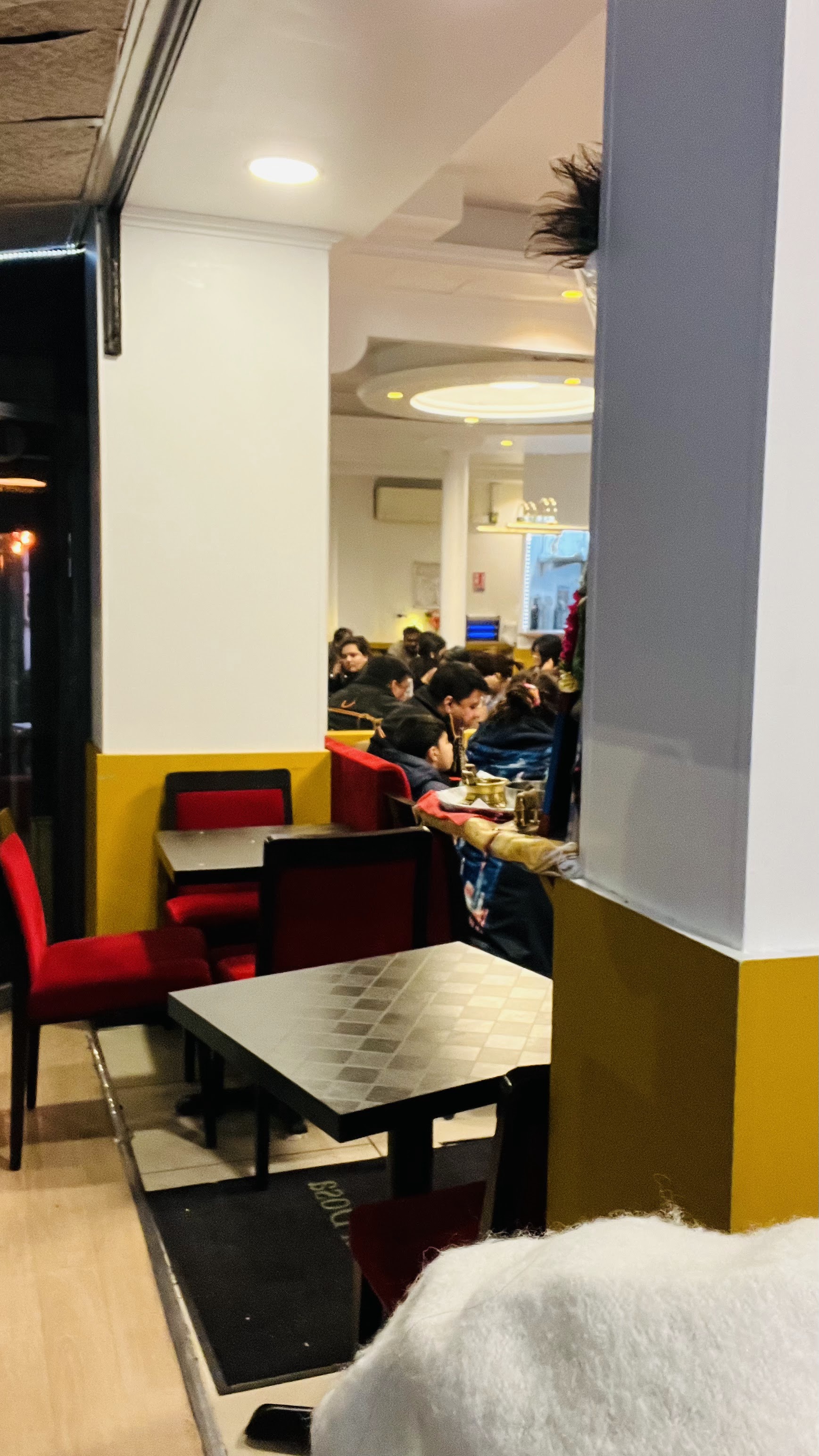 Extrêmement encombré ! Ils s’attendent à ce que vous soyez assis sur une table de six personnes entre les sièges lorsque vous êtes 2 personnes ! 🤷♀️ et si vous demandez, vous pouvez attendre, ce n'est pas possible ! Nous avons plutôt dîné au Sarvana Bhawan à côté !