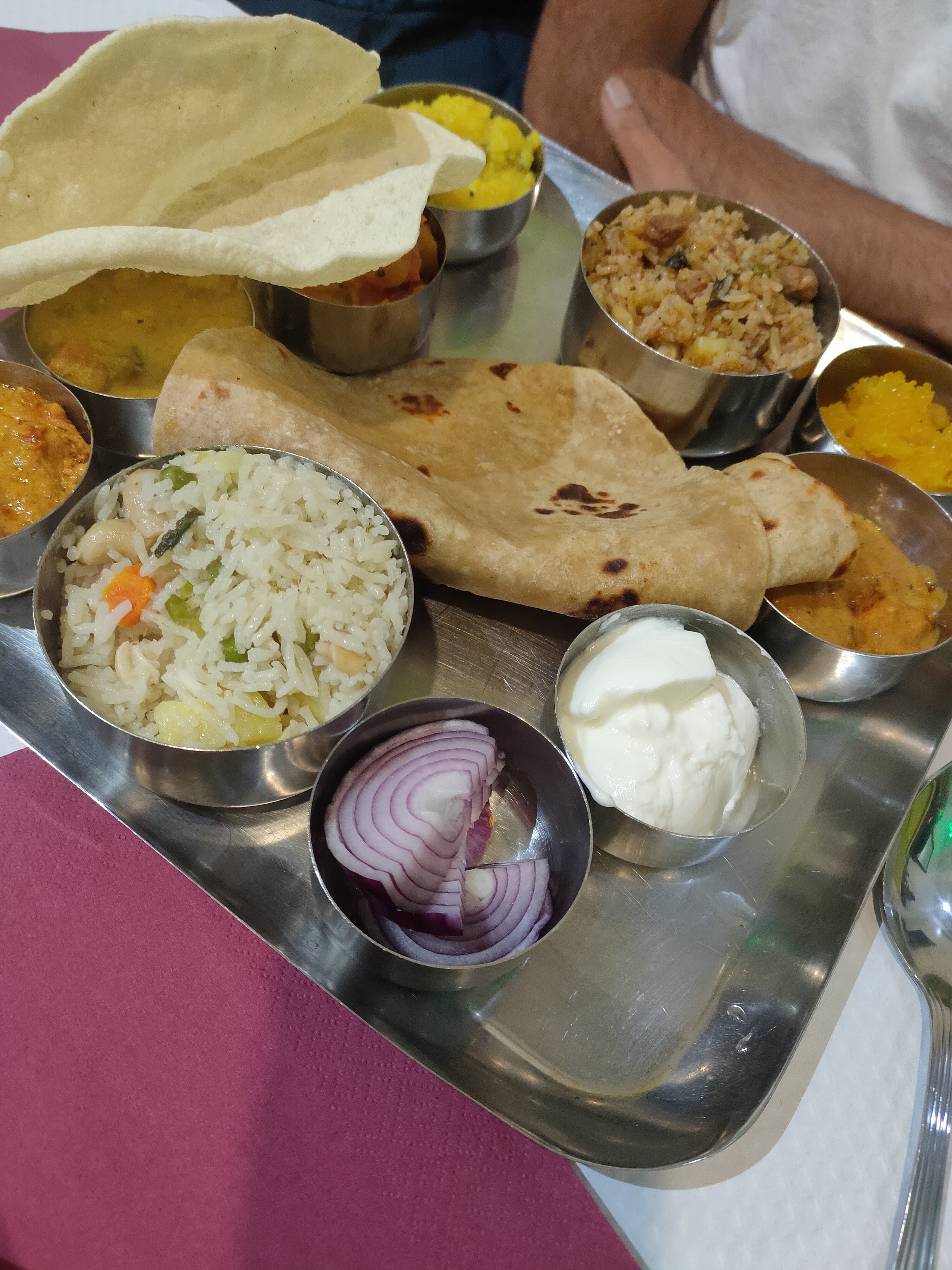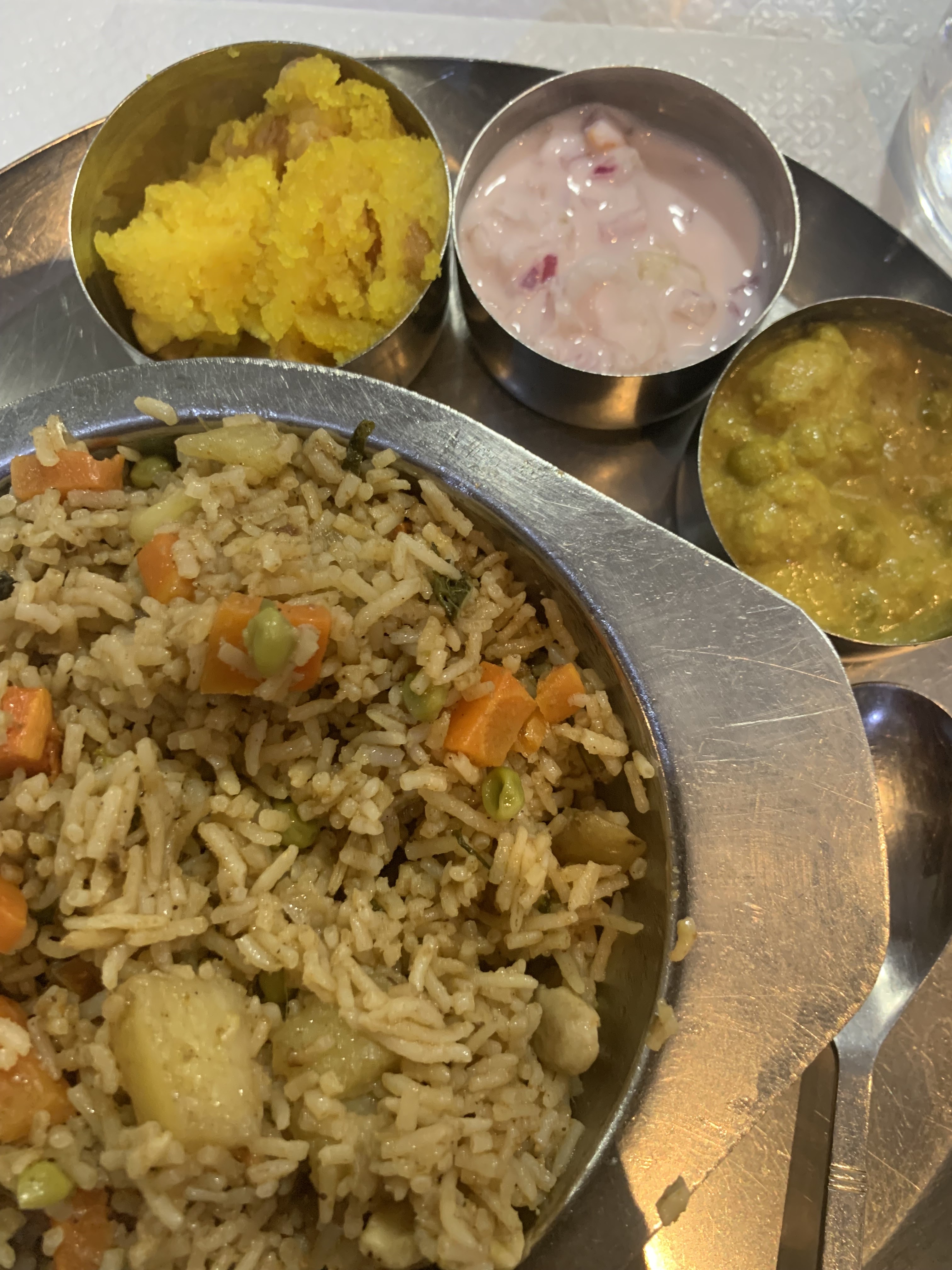Je recommande vivement ce restaurant ! Nous avons commandé les thalis de l'Inde du Nord et du Sud, et wow... l'un des meilleurs repas de ma vie. Les saveurs sont parfaites et excitantes, et la nourriture a laissé notre estomac sain et bien nourri par la suite, pas lourd comme la plupart des autres restaurants indiens que nous avons essayés. Nous sommes revenus le lendemain pour le petit-déjeuner et le dîner ! Le personnel est très gentil et les prix sont également très intéressants !