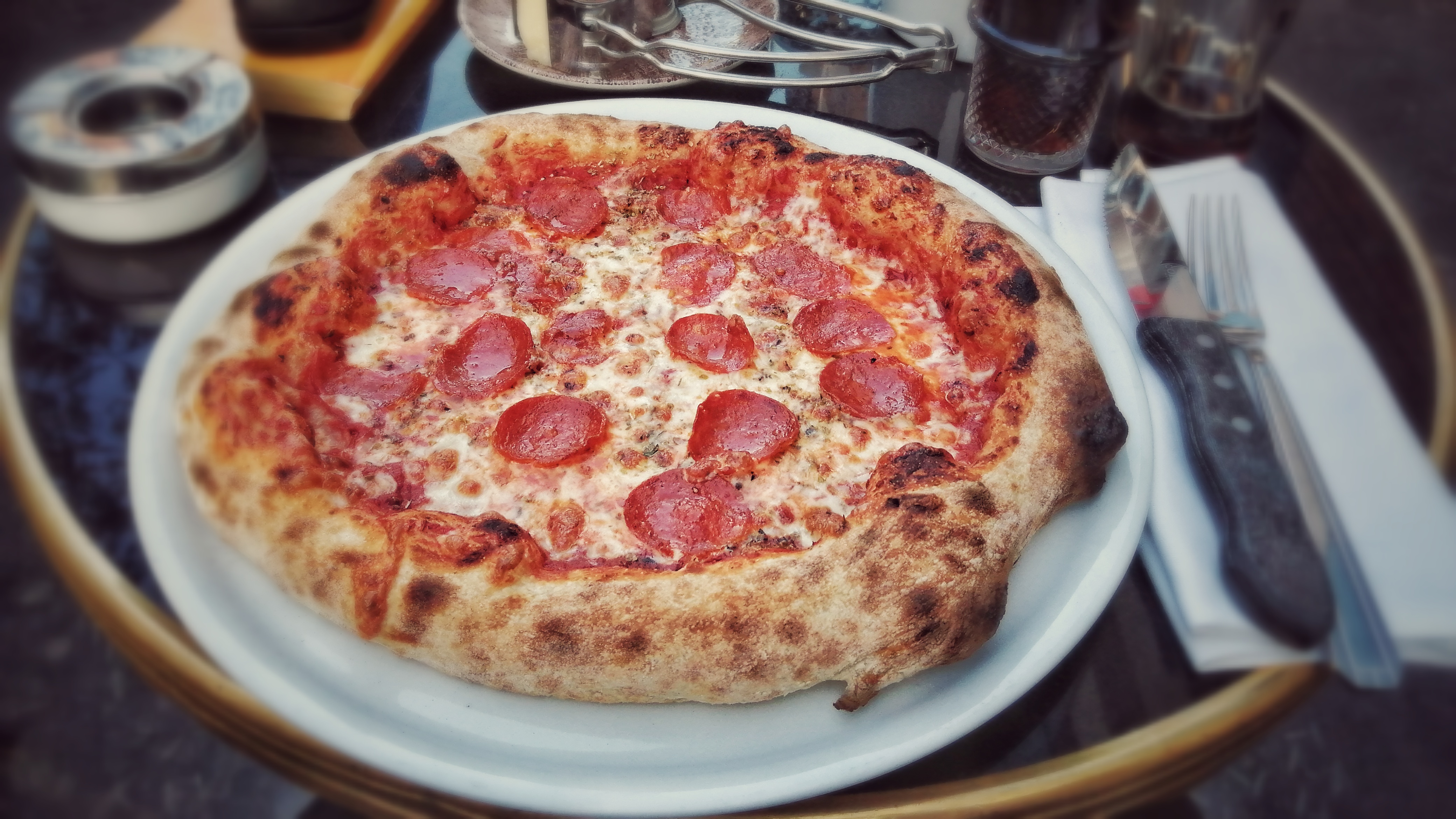 Je suis venu ici sur un coup de tête et j'en suis ravi ! J'ai commandé une pizza au pepperoni pour le dîner et on m'a présenté une pizza traditionnelle incroyablement bien faite et délicieuse. Ce qui l'a rendu encore meilleur, c'est qu'on lui a donné du parmesan FRAIS à râper sur le dessus... c'était une surprise ! Quant au service, il était poli et professionnel et dans l'ensemble, j'ai été impressionné par l'endroit. Oui, c'était un peu cher et le menu est petit, mais ça vaut vraiment le coup et j'ai beaucoup apprécié mon repas.