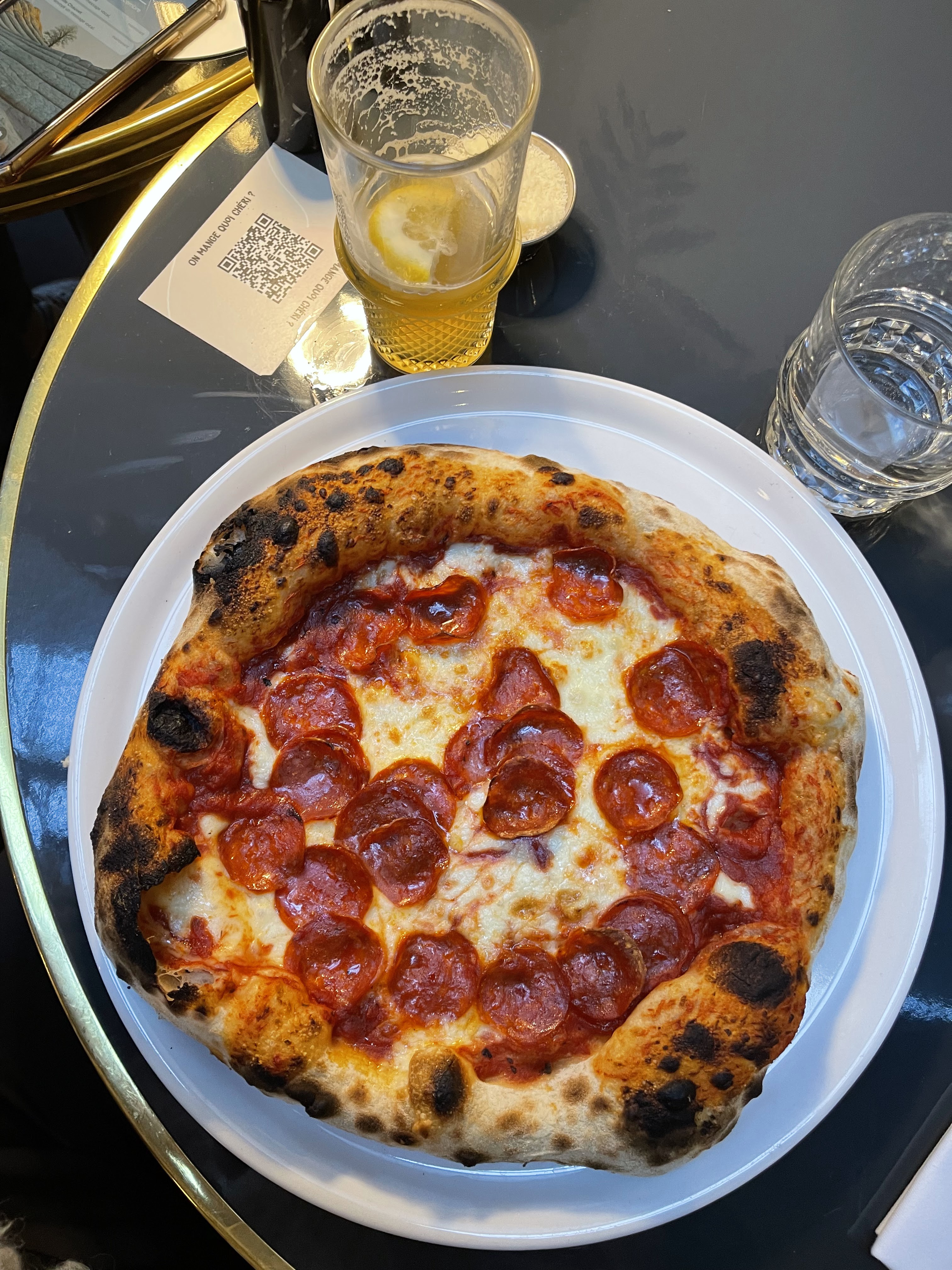 Bonnes pizzas avec de vrais produits italiens. Tables trop petites et côté salle vraiment trop bruyant avec les halles en dessous, la musique est trop forte, on s'entend limite parler.