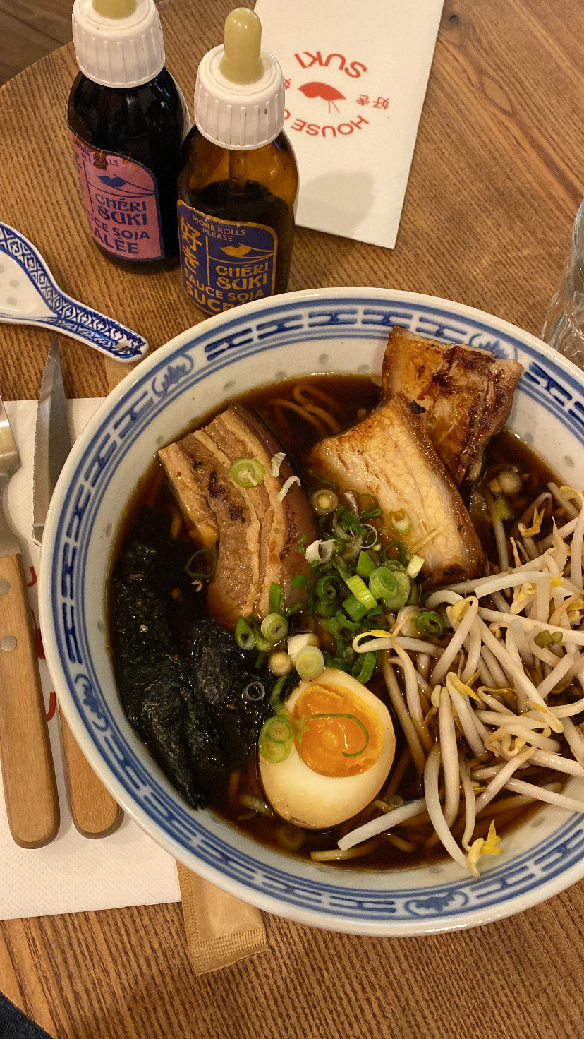 Petite soirée sympa au Chéri Suki. Le ramen était bon et suffisamment copieux mais un peu fade, les autres plats idem. Plusieurs chaises à l'extérieur étaient cassées et mériteraient grandement d'être changées. Service ok très sympa.