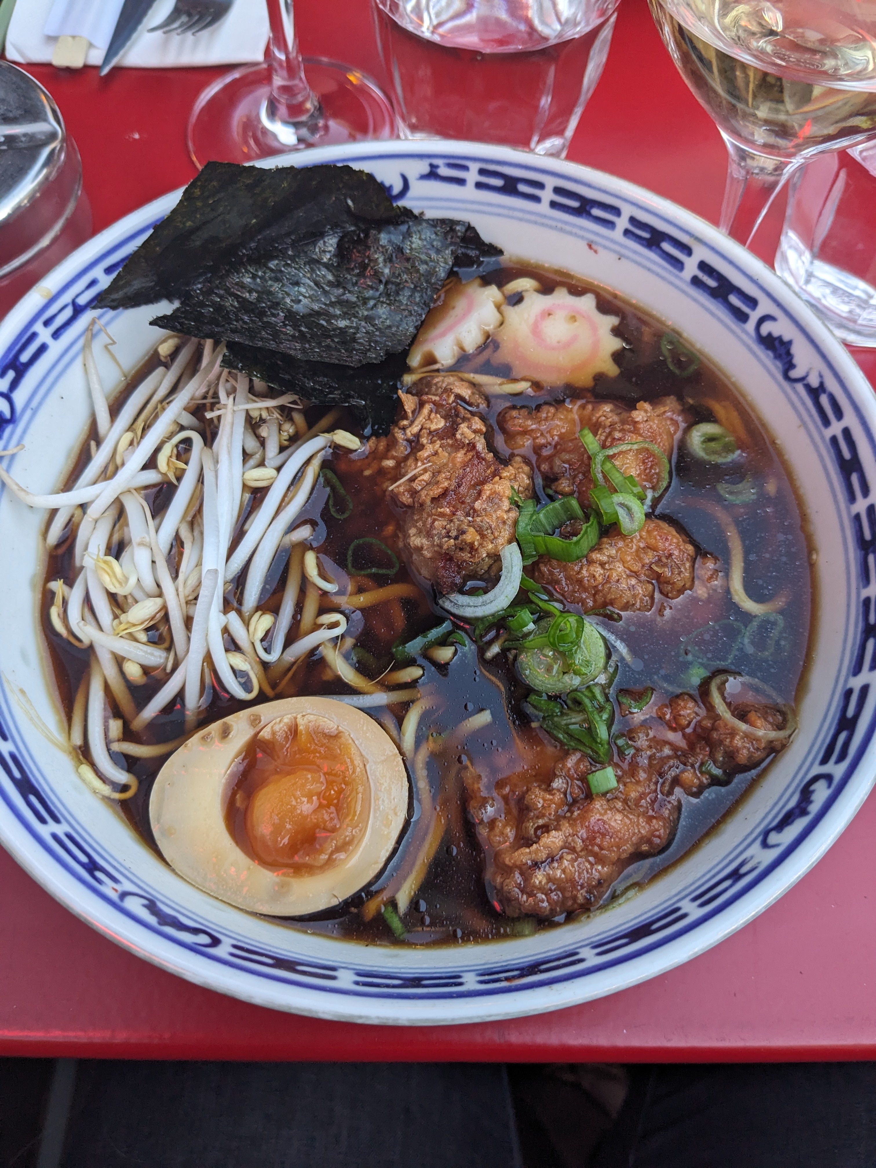 Déjeuner solo sur le pouce, une grande amoureuse de la cuisine japonaise j’ai été déçue. Un ramen avec un bouillon fade, pareil pour le porc qui était de grande qualité par contre. Les gyozas étaient pas mal et mention spéciale pour le cookie qui était excellent mais malheureusement on va pas dans un bistrot japonais pour les cookies. Il y a du choix à Toulouse, je retenterais en espérant que le bouillon sera riche en goût la prochaine fois.