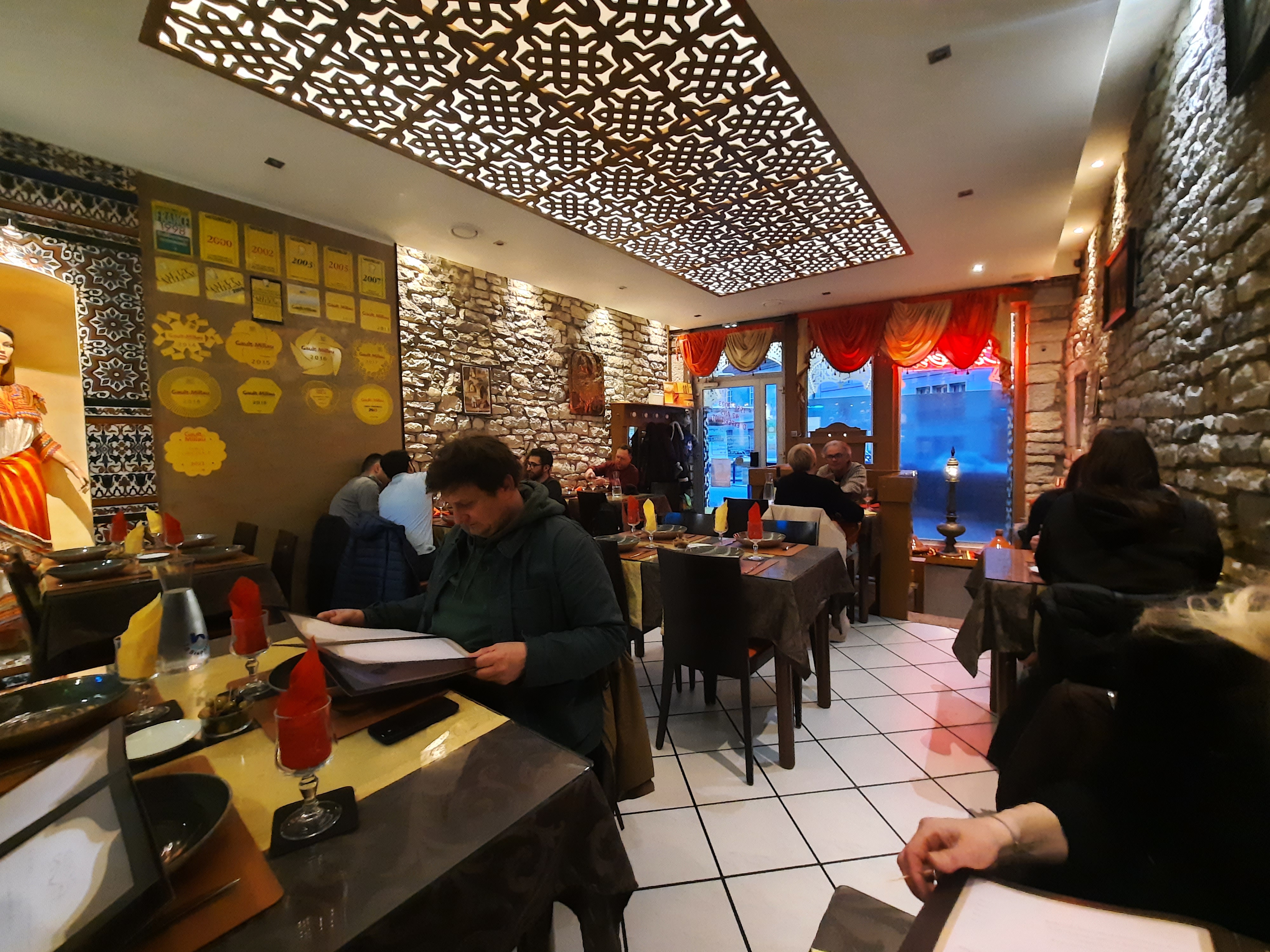 Bon accueil mais très bruyant, nous étions 7 personnes très serrées peu de place pour être à l aise. Rien de transcendant dans le menu a 27 euros qui de plus restreint le choix de 2 viandes sur les 4 normalement mis dans un couscous. Pas d opulence.....