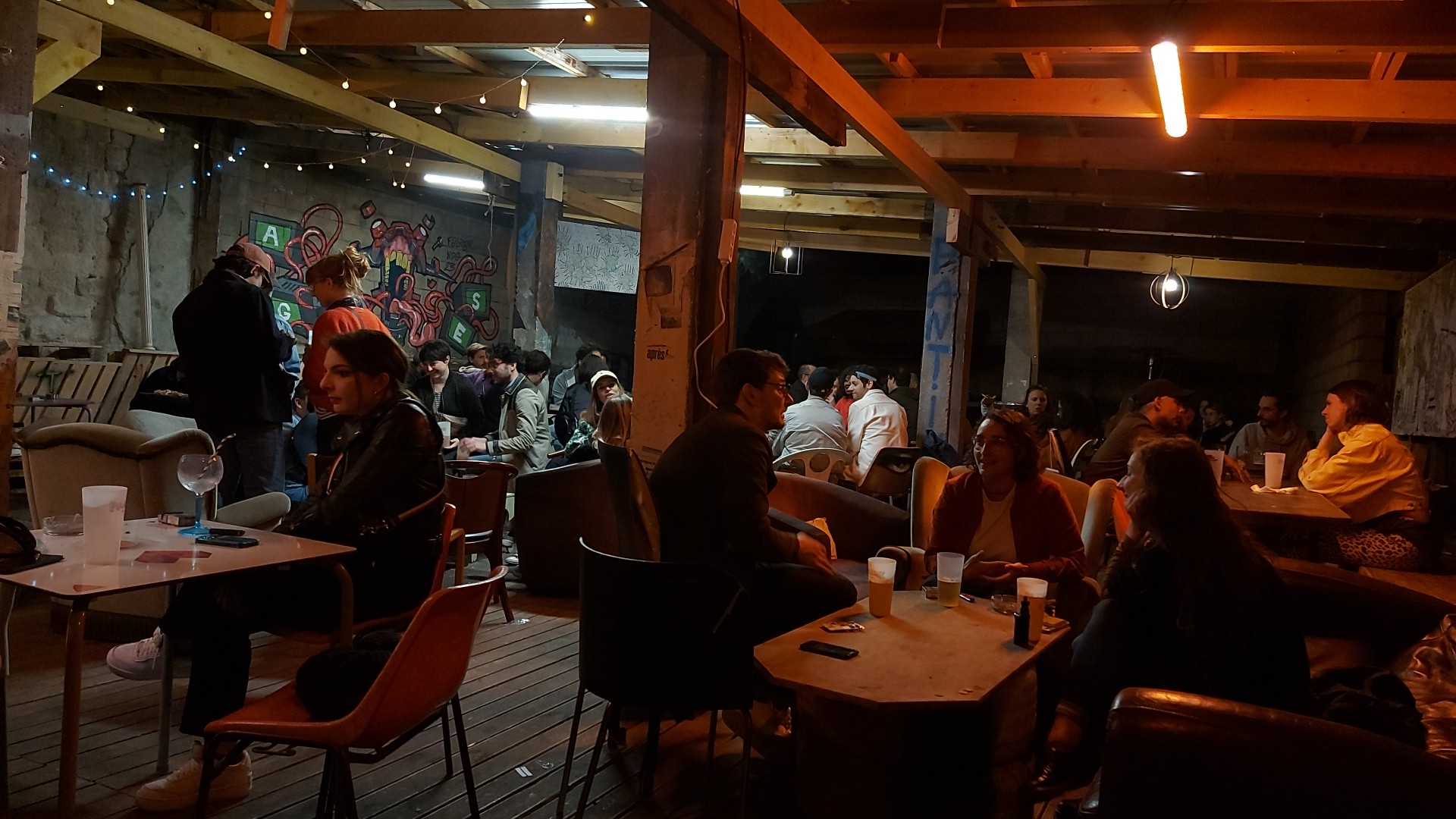 C'est vraiment pas mal comme endroit. Petite terrasse extérieure style hangar, pintes à 6e, rosé à 4e, et une salle pour danser.