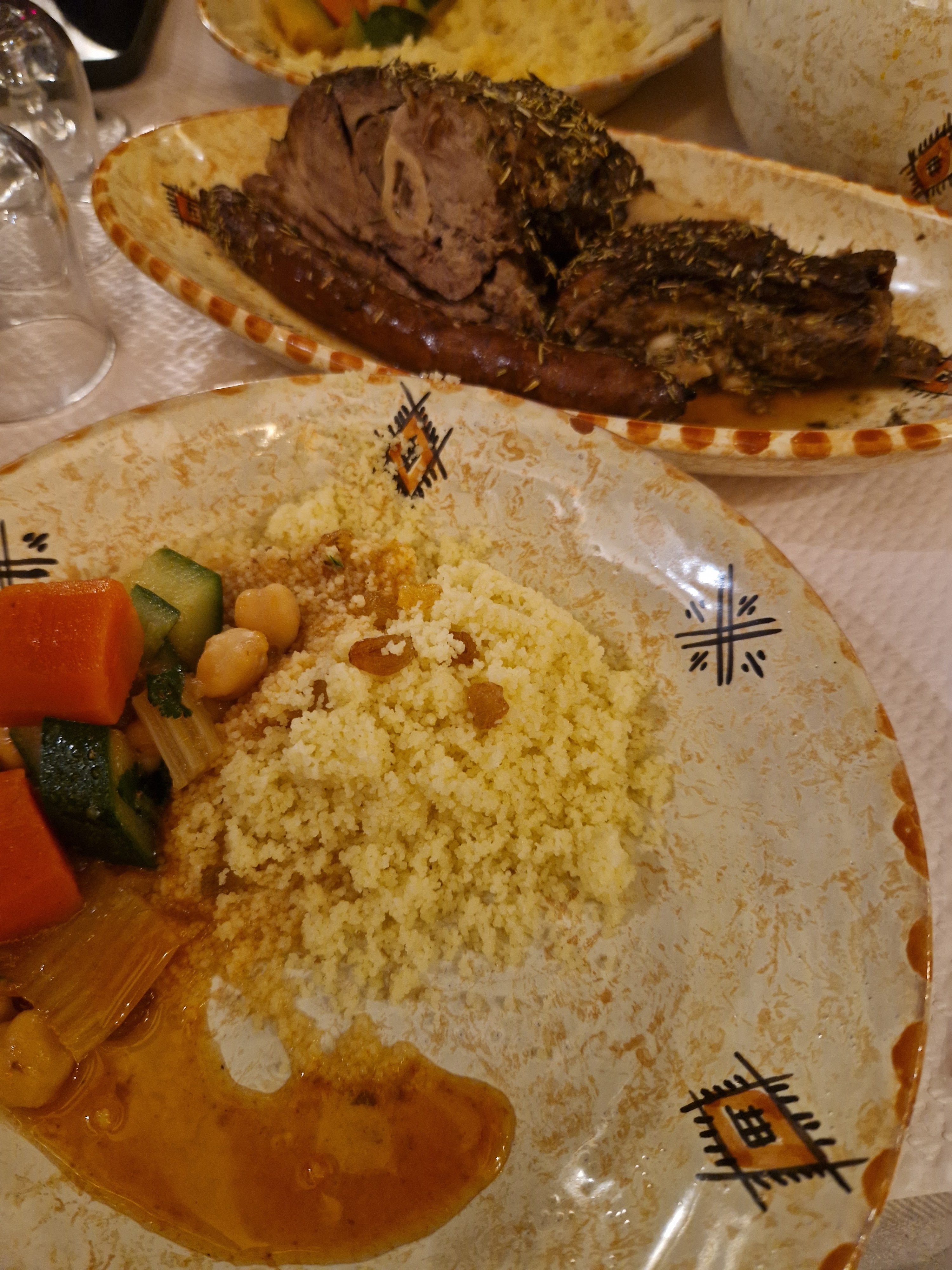 Très bonne surprise que ce restaurant. Il sert à la fois des plats maghrébins (type couscous, brick etc) et des plats Français. Nous avons goûté un couscous mixte et un méchoui d'agneau en plat principal et les deux étaient exquis. La viande du méchoui fondait littéralement dans la bouche. Côté service, le serveur, aimable, est discret (peut être un peu trop) et nous avons été légèrement gêné par une odeur de transpiration en entrant. Deux petits points à améliorer.