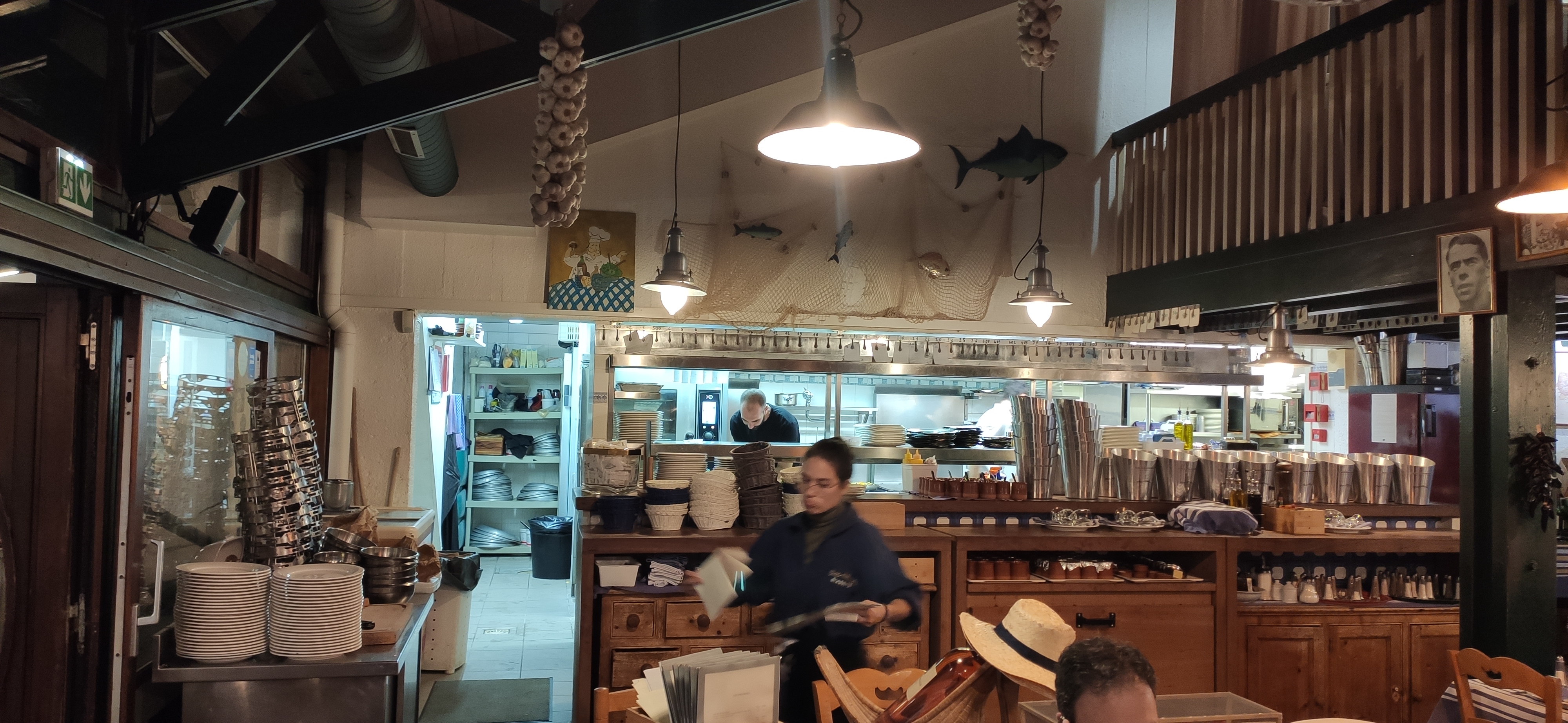 Magnifique cadre portuaire traditionnel avec une excellente cuisine. Arrivez tôt car ils sont complets et fermez également vers 14 heures pour le déjeuner.