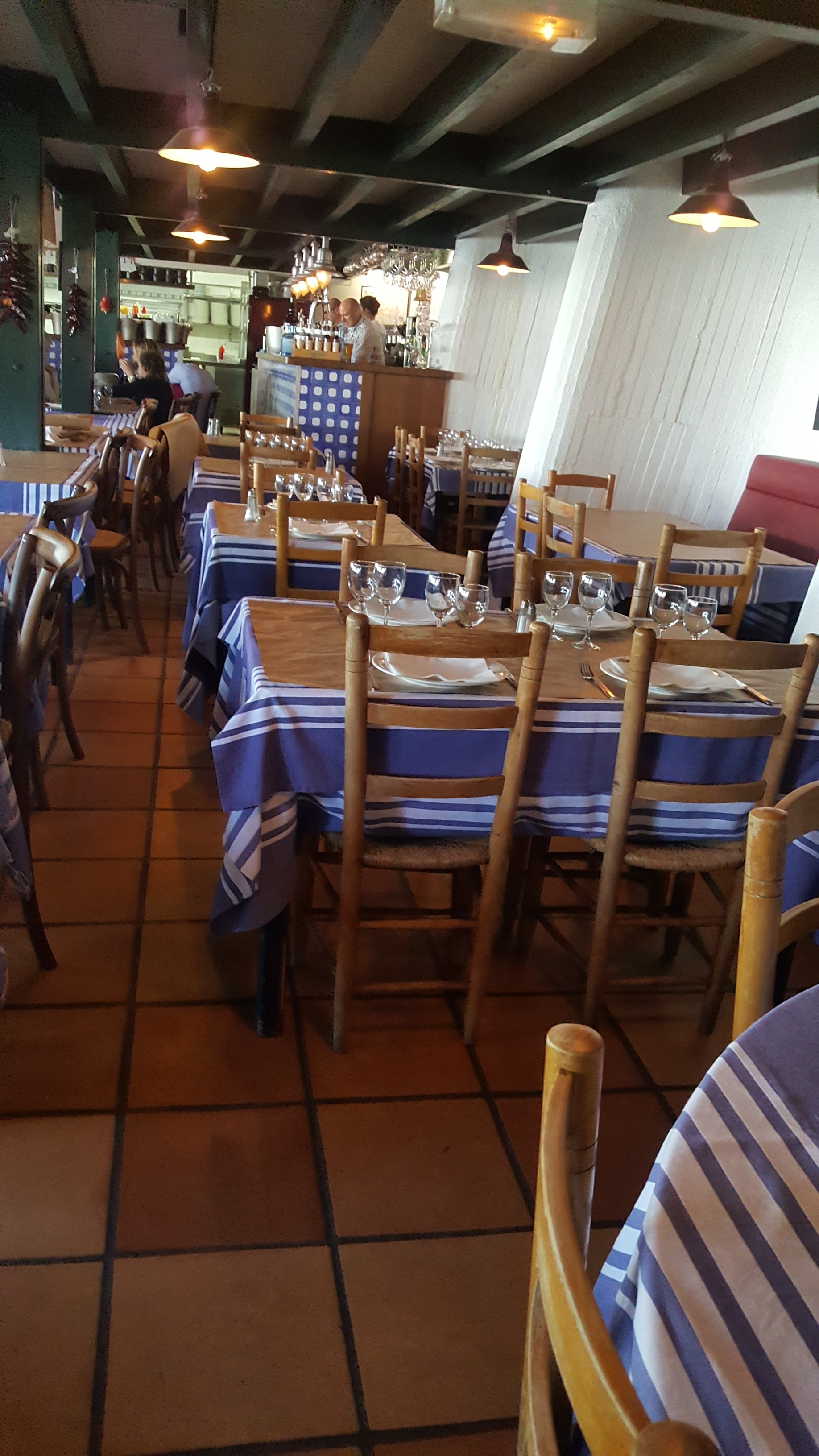 Idealement niché sur le Vieux Port, les tables dressées avec belles nappes en toile Basque bleues, et la variété de poissons et crustacés de la pêche du jour, invitent à s'installer pour regarder le soleil se coucher derrière les fameuses roches. Un plaisir aussi bien pour les yeux que pour les papilles. Les portions sont généreuses à l'image du service.