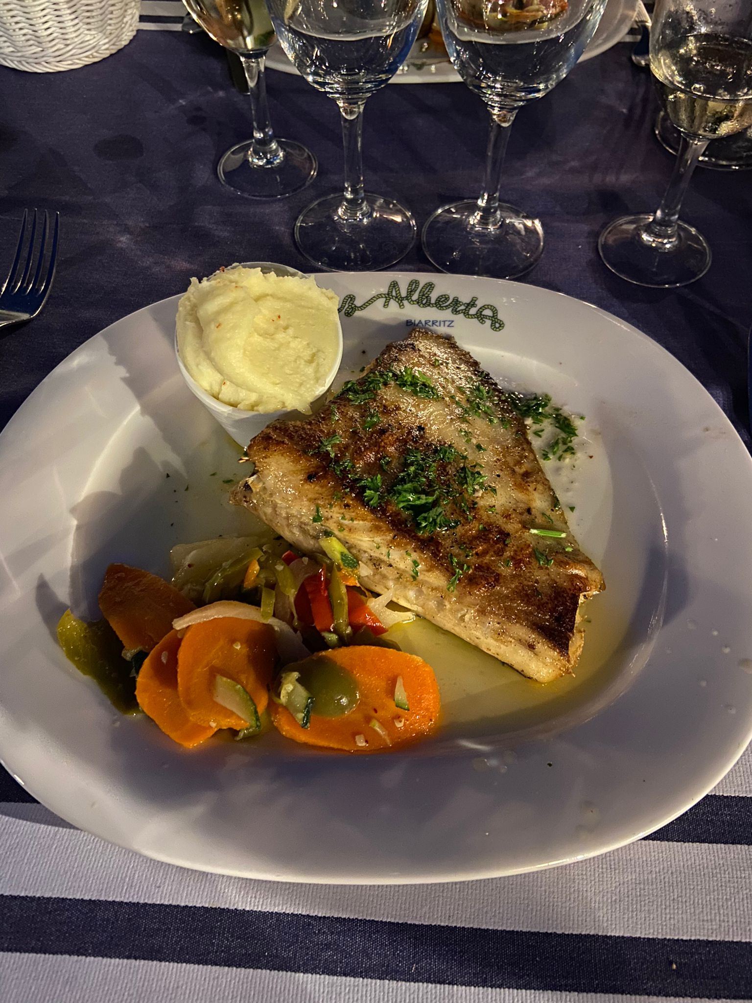 Excellent bistrot / restaurant Chez Albert. Très réputé à Biarritz, mais mérite largement sa notoriété. Salle et personnel sympathiques. Cuisine parfaite. Que du bonheur quand on aime le poisson (sole ce jour là) et les fruits de mer (le plateau copieux pour une personne à 51€). Mieux vaut réserver. Prix honnêtes, mais en ligne avec la notoriété et le positionnement face à la mer, au vieux port.