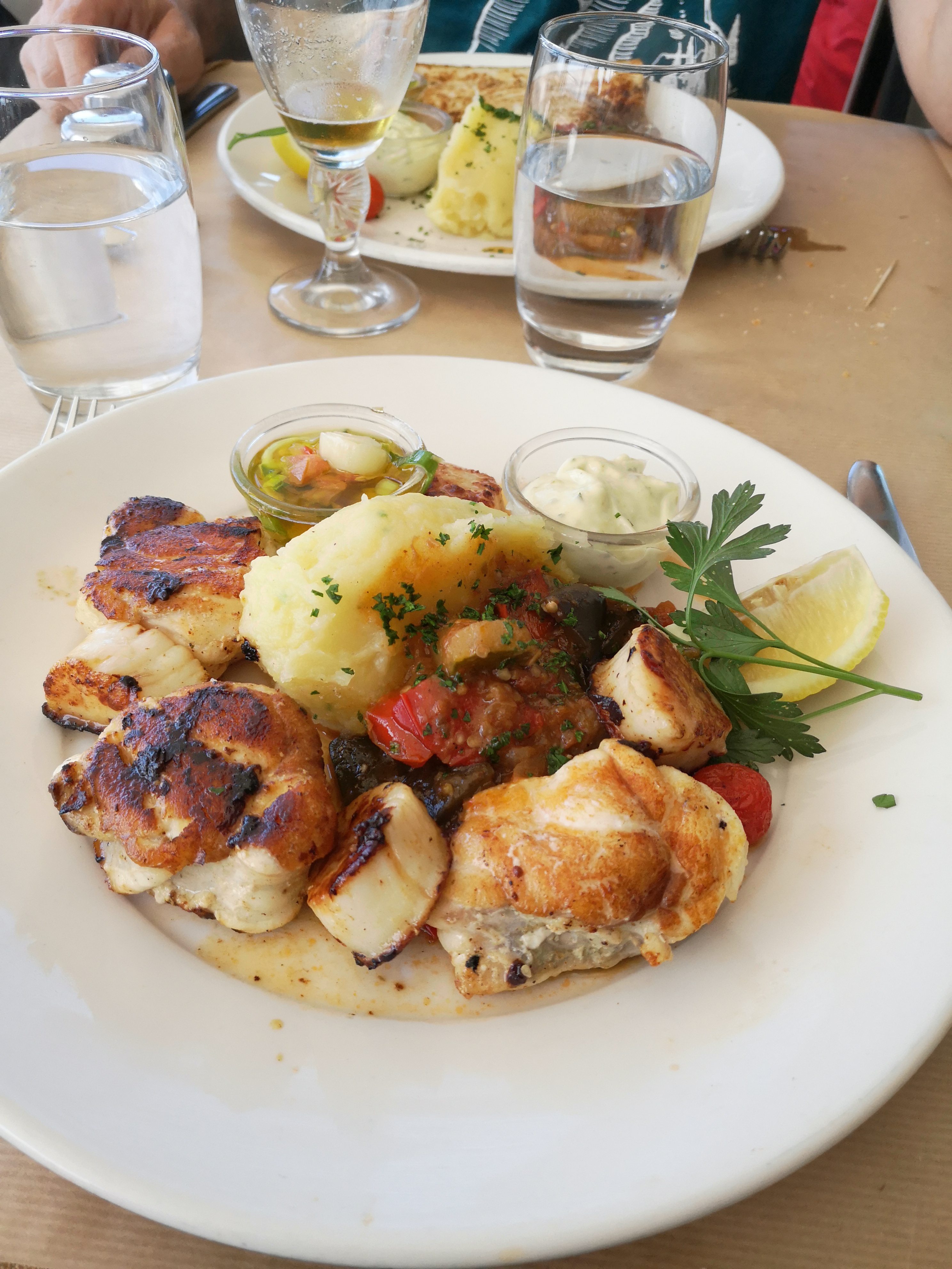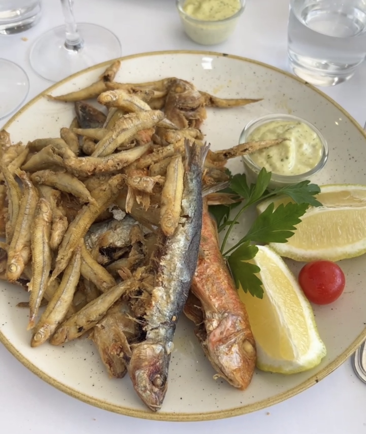 La friture de rougets était copieuse et d'une fraîcheur absolue. La tarte tatin delicieuse. Les plats des tables à côté avaient tous l'air appétissants. Tarif abordables, notamment sur les boissons. Bref, on se fait plaisir avec une bonne cuisine, un vrai service et une super vue. Nous y retournerons