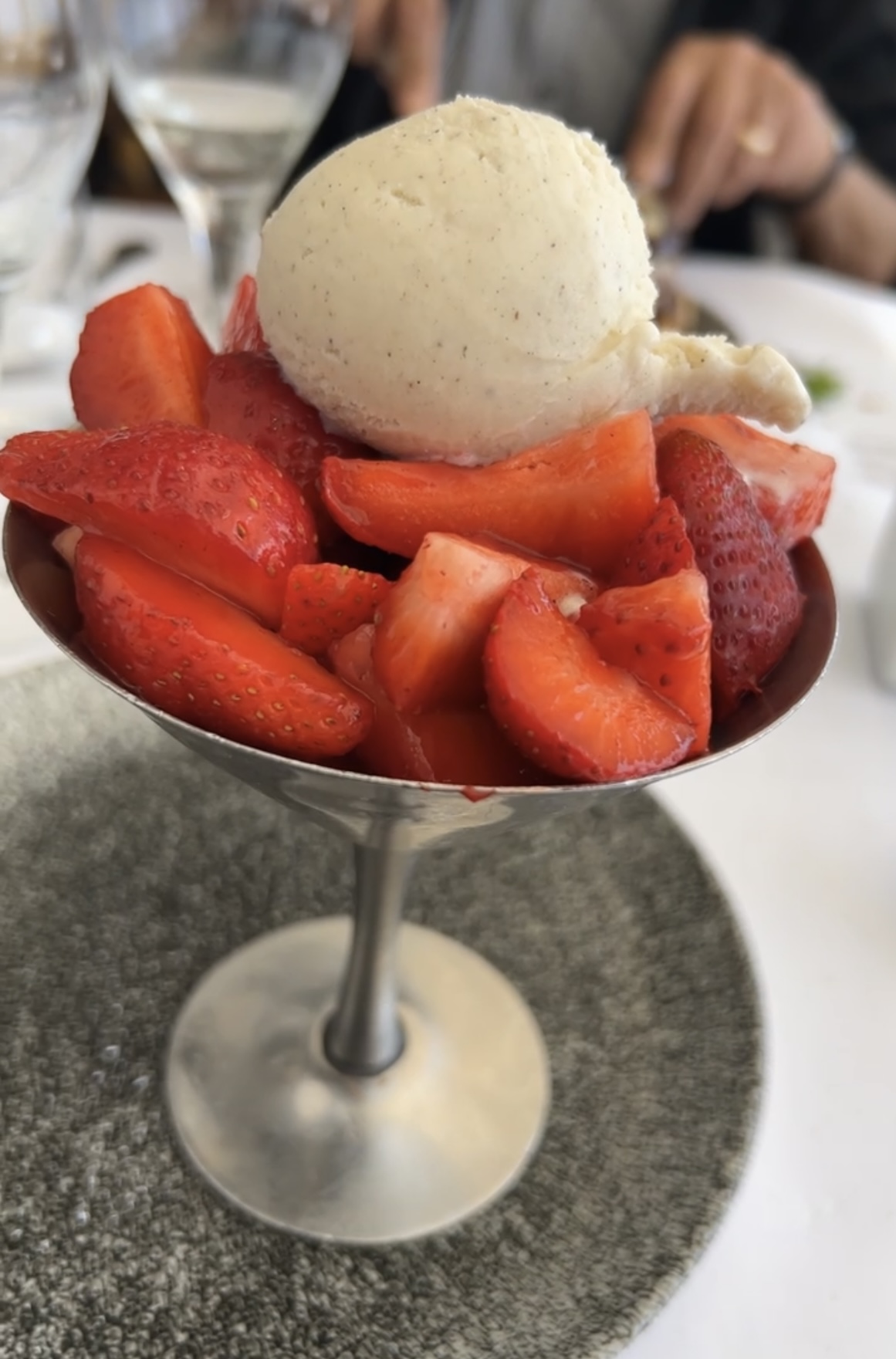 Très bon poisson grillé, excellente omelette norvégienne vue magnifique. Champagne à peine frais et peu de bulles ce qui nous à fait penser qu'il était ouvert depuis un moment. Cela a été signalé lors du paiement sans réaction de leur part.