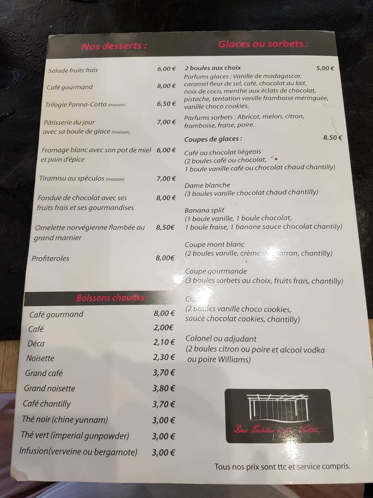 Bon accueil Personnel sympathique , prix un peu élevé, mais ce restaurant est une institution. Je recommande ce lieu
