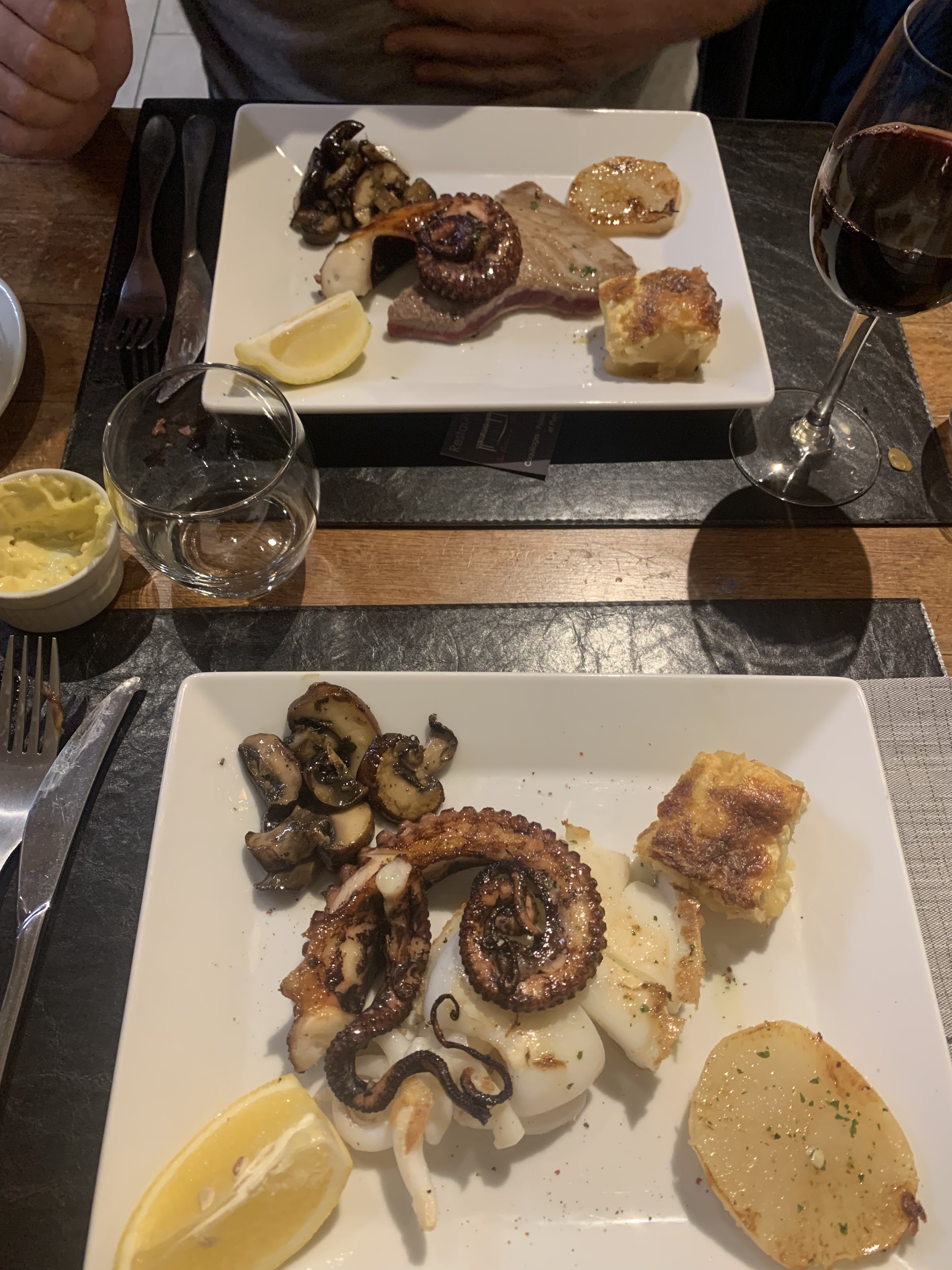 Restaurant et personnel très agréable. Les plats proposés ici sont très bons néanmoins je trouve certaines assiettes un peu chères. Le duo seiche/poulpe (1 patte de poulpe avec une petite seiche) et frites... 28€. J'aurais apprécié d'avoir pour ce prix là un peu plus de poulpe.