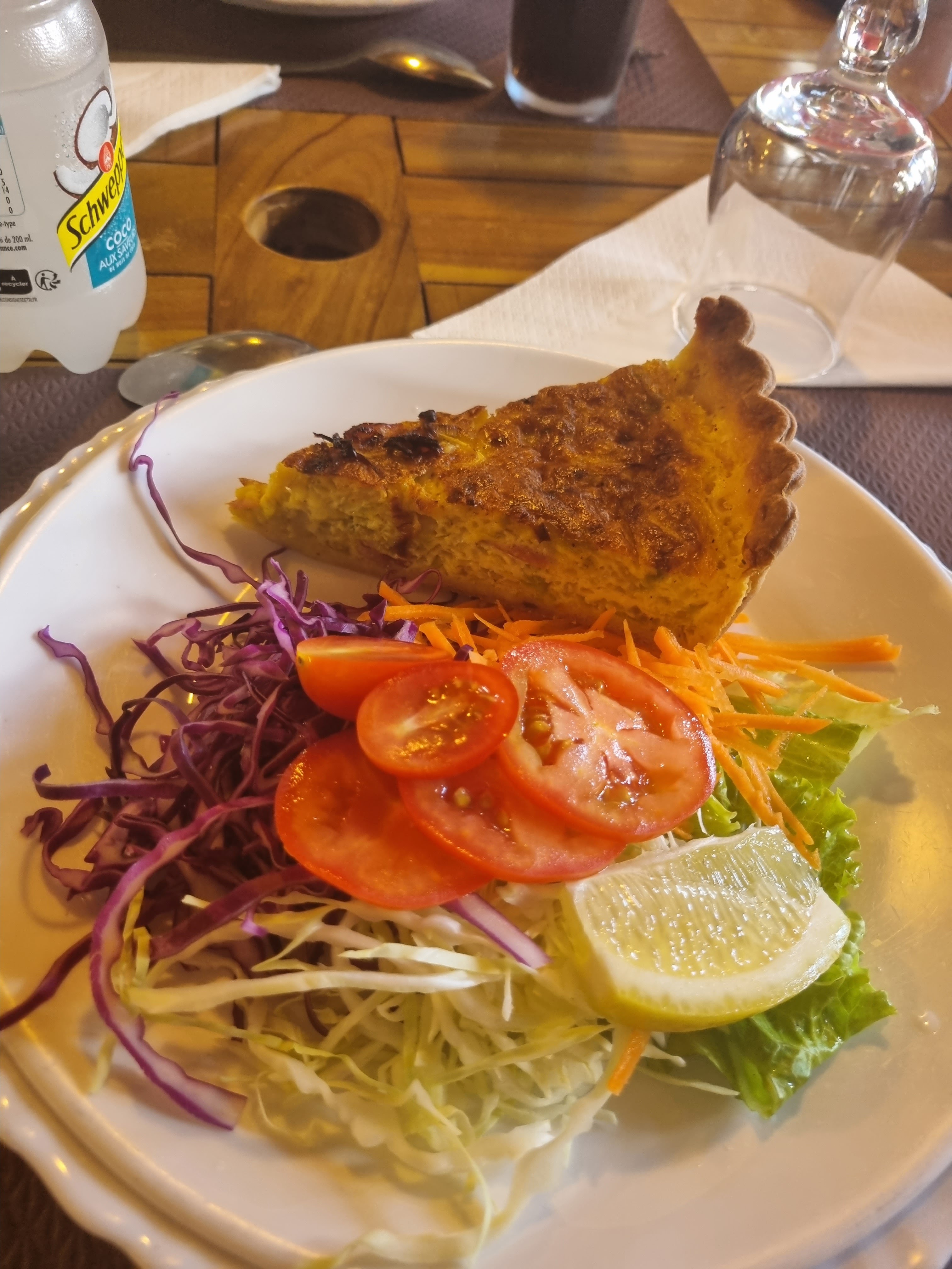 Une très bonne table ! Des plats créoles très bons et copieux (très copieux). Nous avons pris la quiche aux chouchous et lardons, le gratin de chouchous, carri poulet, rougail saucisse aux aubergines servi avec le riz, les pois et 3 rougails. En dessert, gâteau à la citrouille et crème brûlée. Le tout était parfait. Rhum arrangé offert en fin de repas Un délice, à refaire ! Merci pour cette bonne soirée