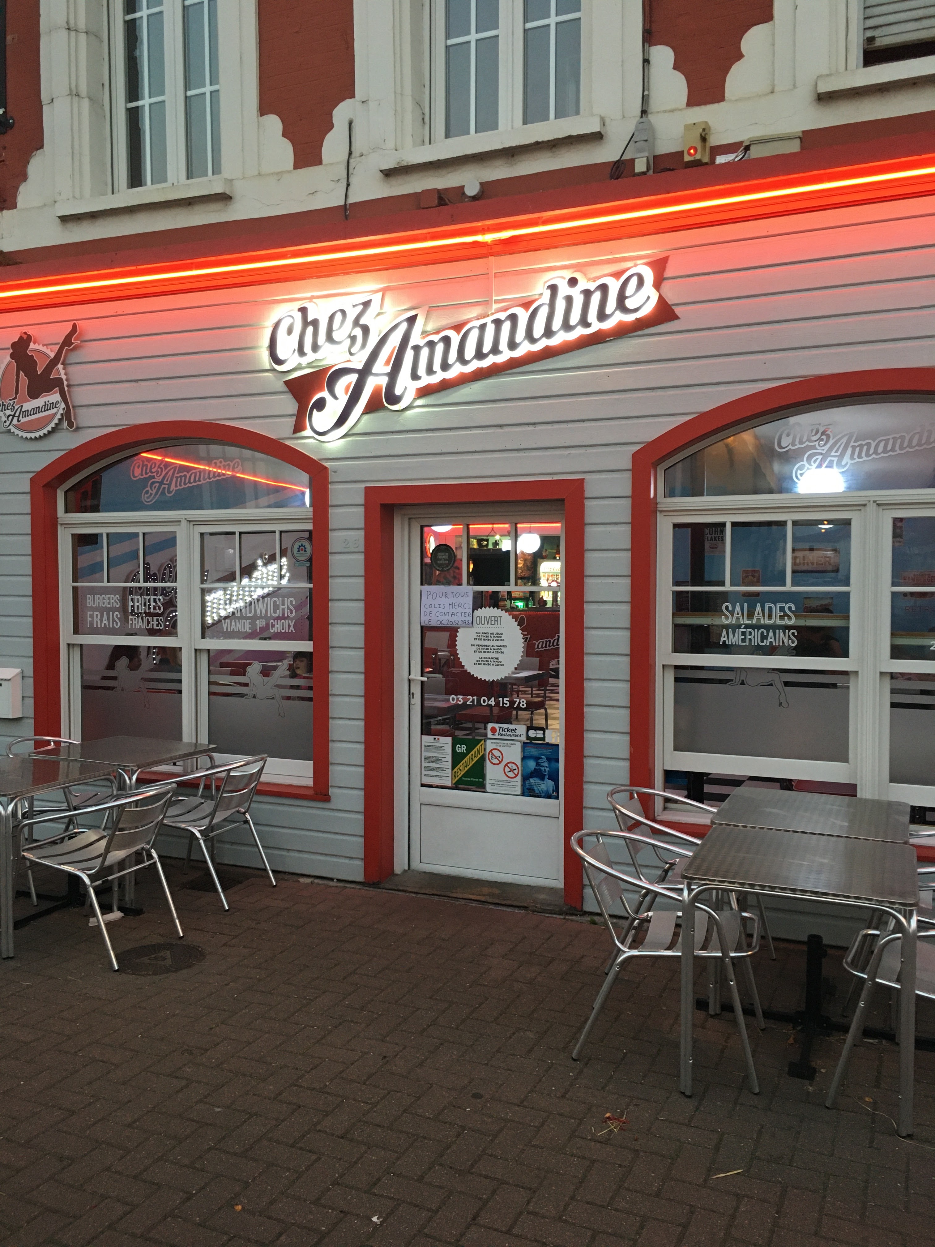 De passage sur Auxi j’ai trouvé Chez Amandine grâce à ma pub sur la route. La personne qui prend les commandes est très gentille, le cadre USA années 50 j’adore. Les Burger sont grands et frais, que de bons produits. Pareil pour les frites. A ceux de passage sur Auxi, je vous recommande d’aller manger la!