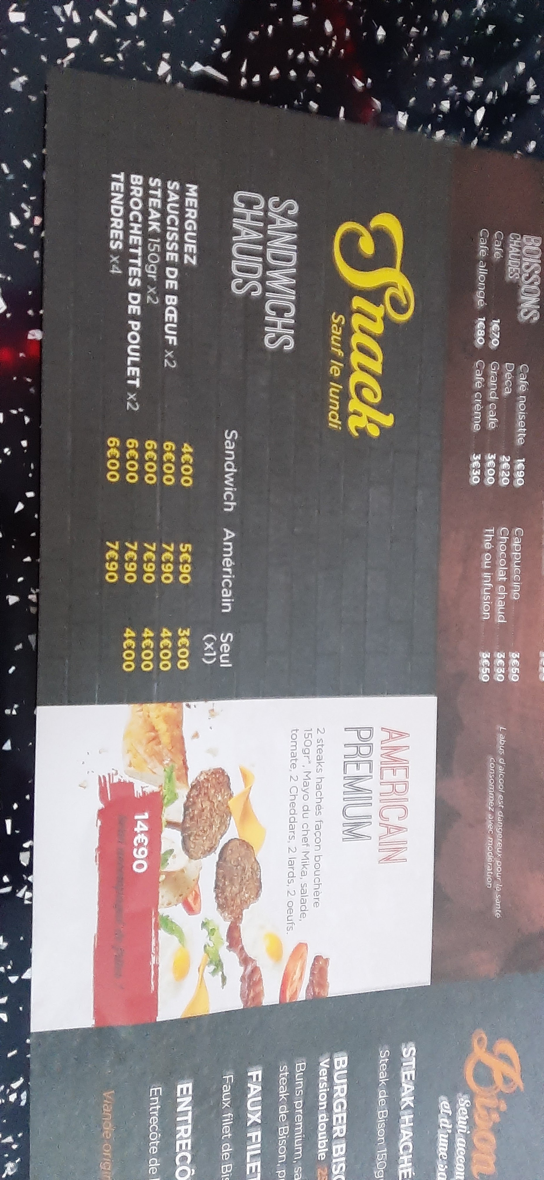 En déplacement, non prévu , ambiance retro US cool Sandwich américain Double saucisse excellent , et un collègue avec la version merguez , idem.....+ frites non grasses au gras de bœuf, odeur présente mais c'est le jeu. A conseiller si vous passez par la !