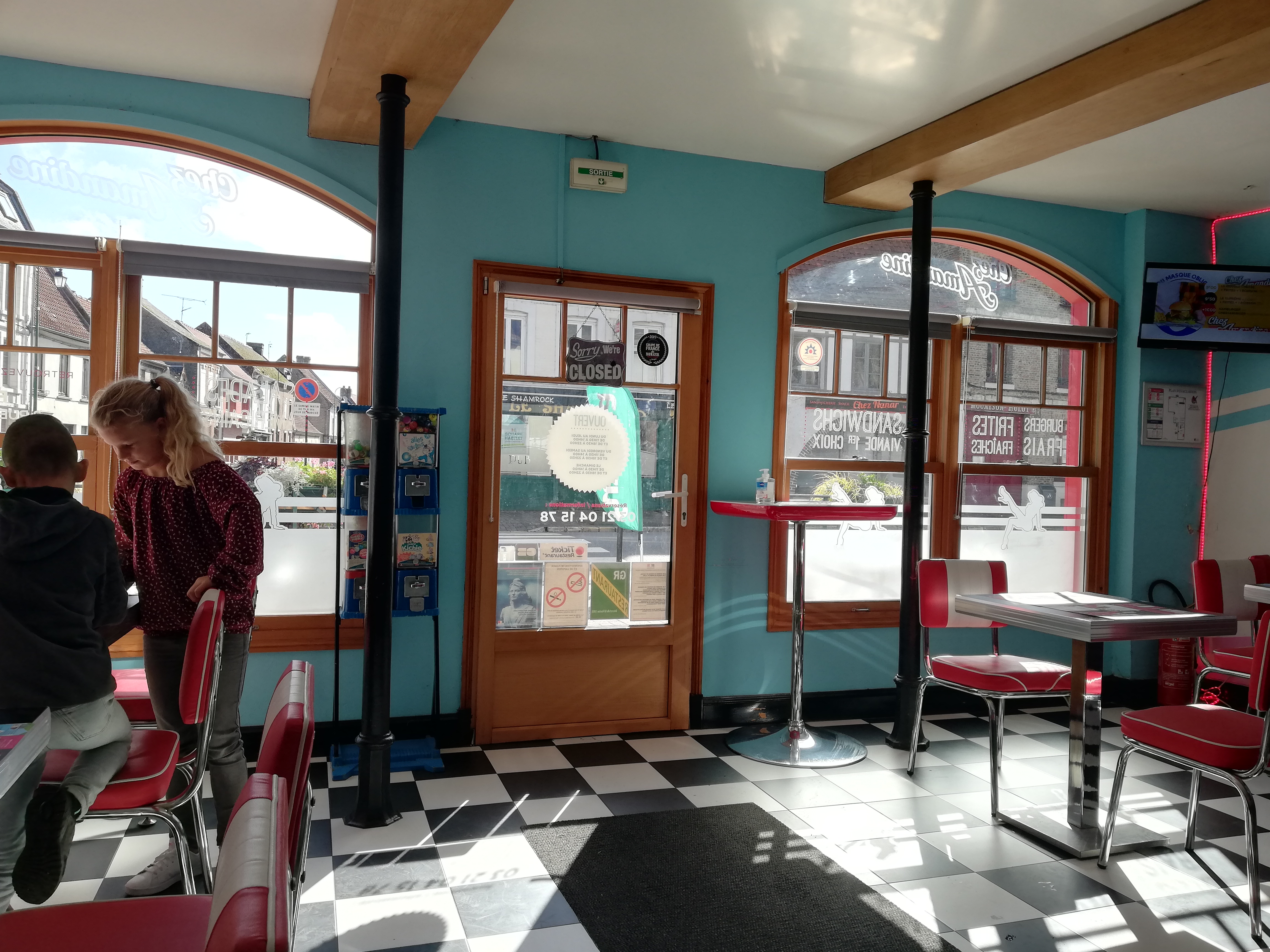On pourrait penser à une friterie améliorée mais le cadre est vraiment sympa type snack américain. On y trouve des plats de l'entrée aux desserts, viandes, burgers, snack. Accueil et service très sympas