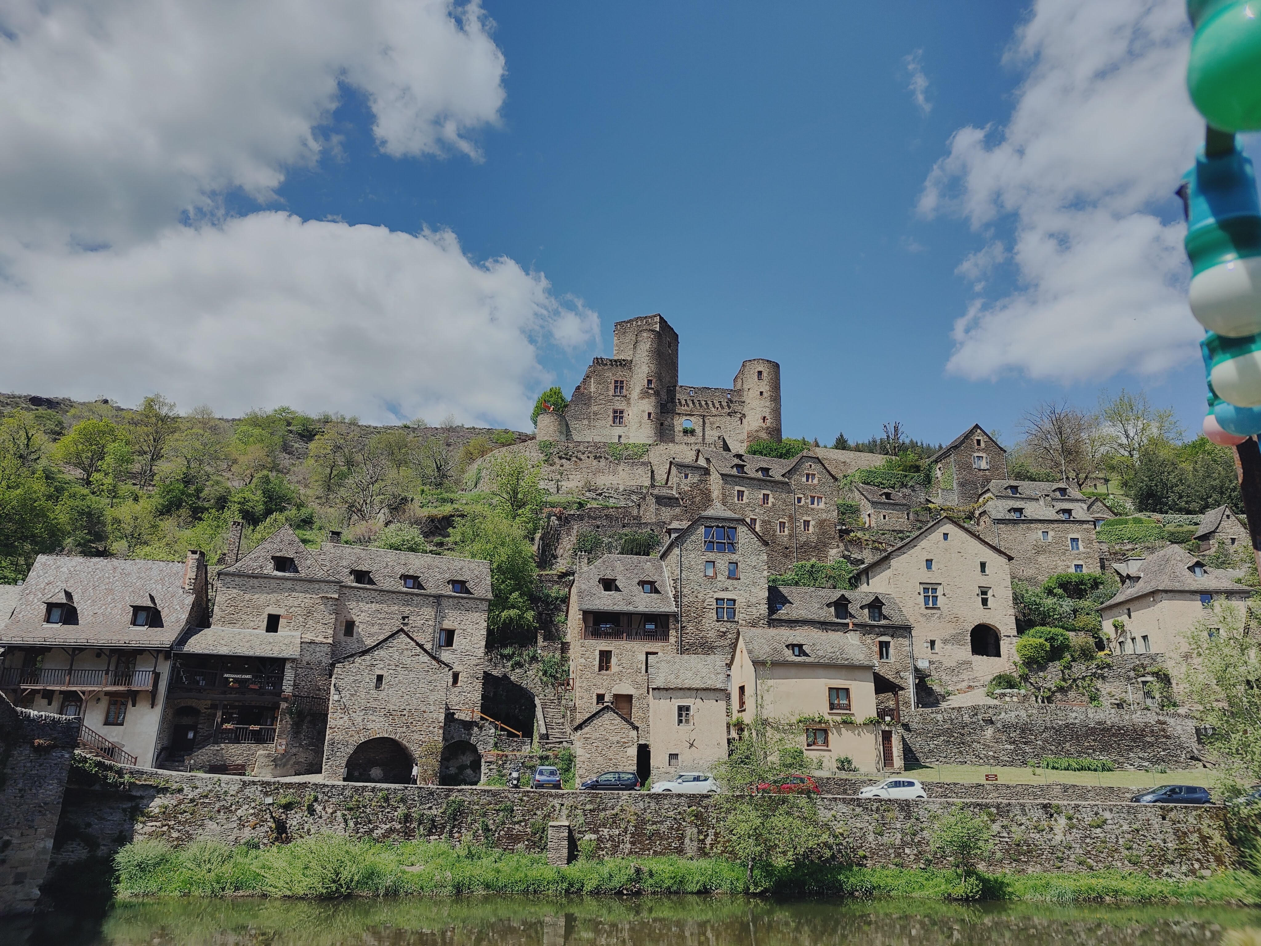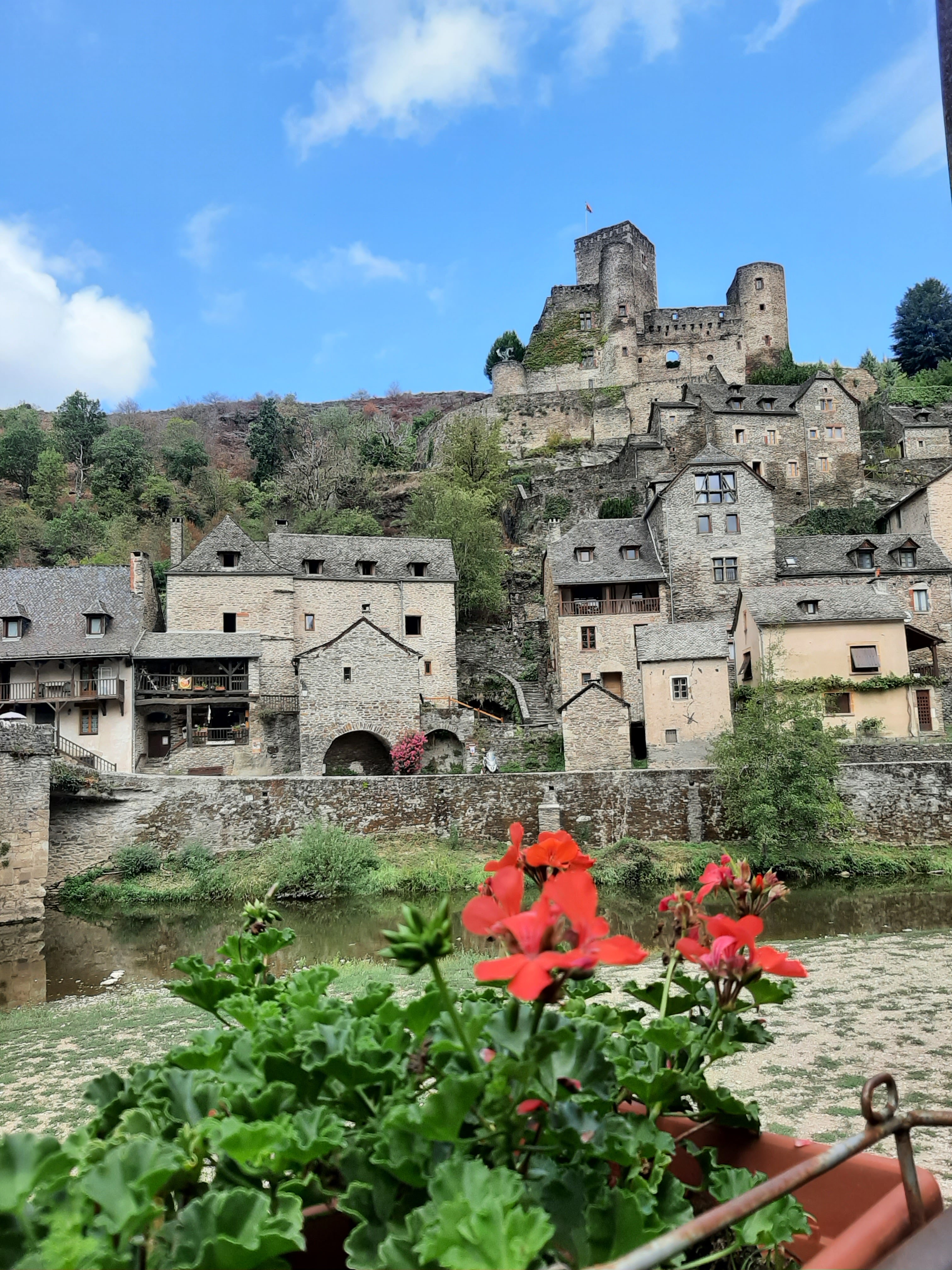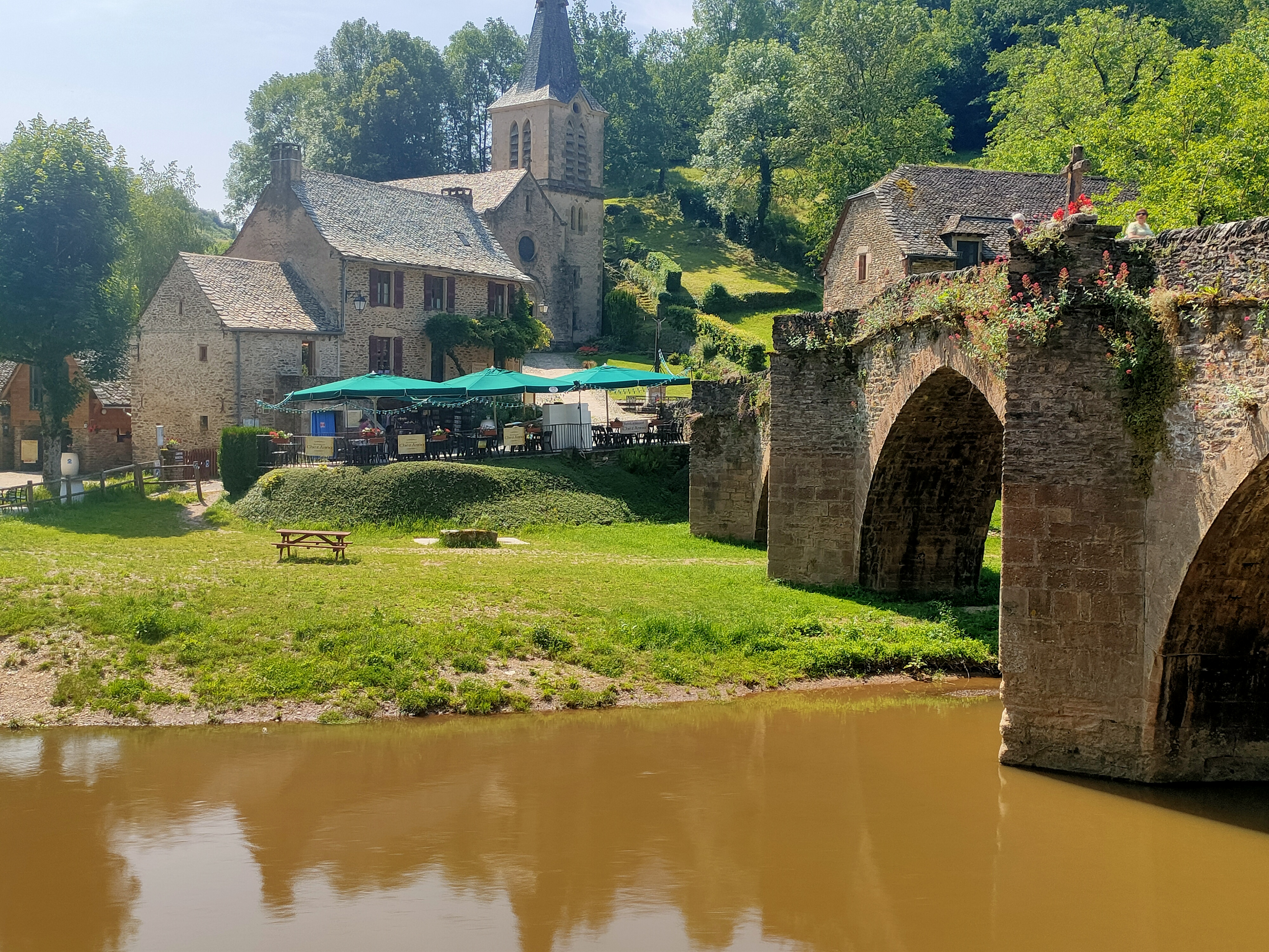 Lieu très agréable pour manger une trufade aveyronnaise. En terrasse au bord de la rivière Aveyron et avec une très belle vue sur le village et le château de Belcastel.