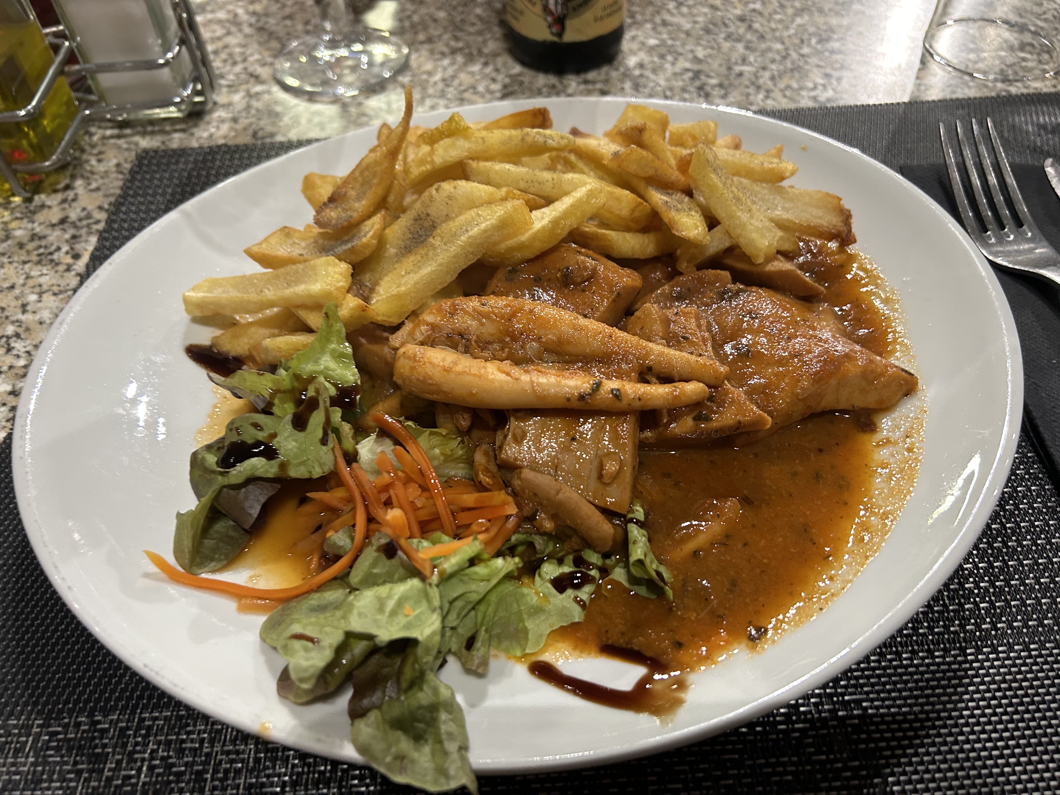 Déjeuner ce midi, très bon restaurant recommandé par notre hôte, assiettes copieuses et prix plus que correct pour le coin, à tester sans hésitation
