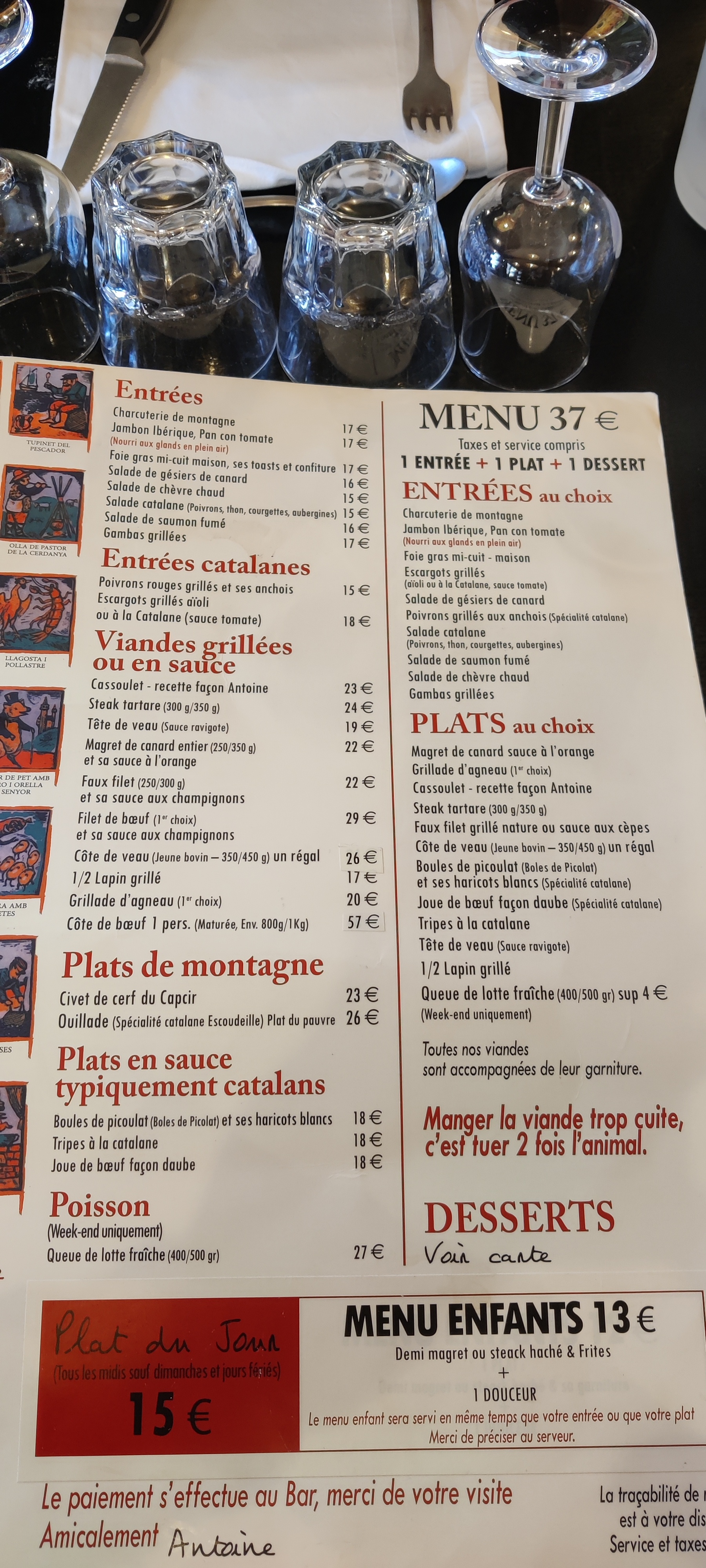 Jamais déçu ! De passage aux Angles en ce week-end férié , nous sommes allé déjeuner Chez Antoine , repas de qualité et très copieux, accueil très sympa , nous y reviendrons et le recommandons .