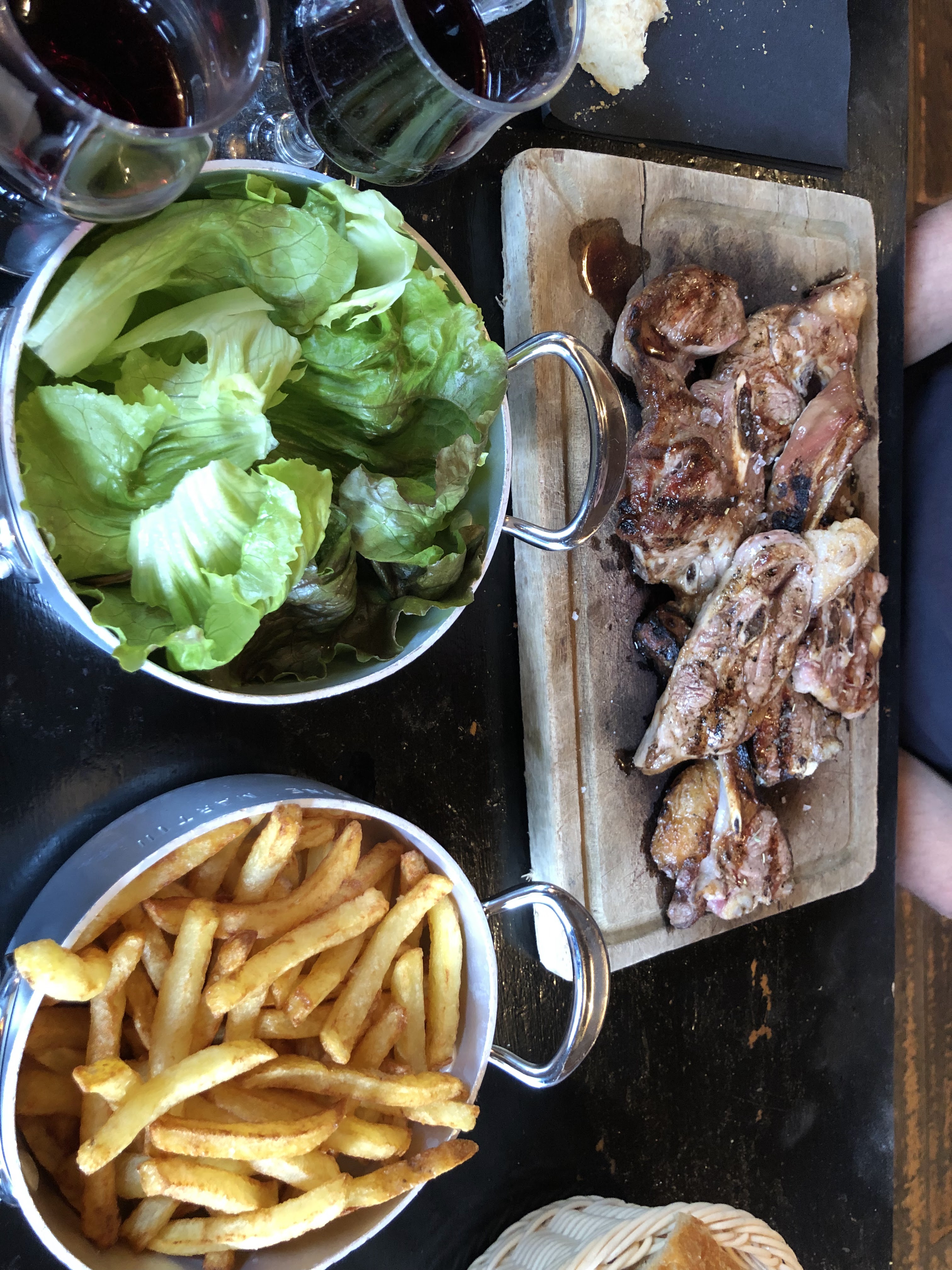 Accueil superbe malgré l’heure (+14h), on a prit brochette de bœuf, côté de veau et pan con jambon. Excellent rien a dire. Prix correct pour du fait maison même les frites. Hâte de revoir Antoine et Anais ! 😍😍