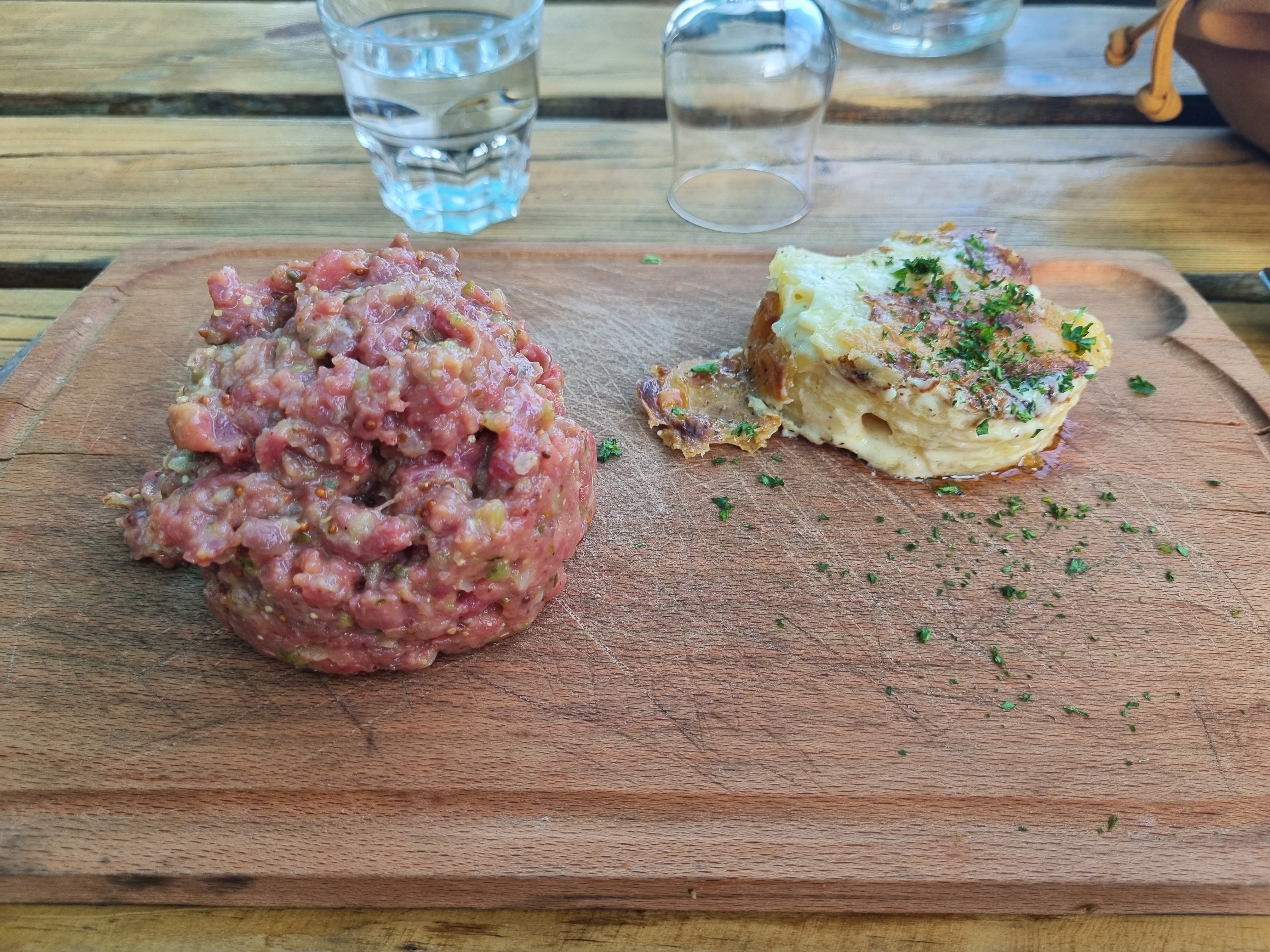 Nous étions 4 avec 2 enfants, nous nous sommes régalés dans un cadre atypique (décoration bois autour de la viande). Nous sommes régalés, très bon rapport qualité prix. Le service est impeccable, très attentionné y compris envers les enfants et pas trop long. La planche de charcuterie est divine ! Les enfants et les grands, ont adoré les frites maison et la sauce aux champignons. Le seul bémol est l'accueil de la patronne peu souriante et un peu sèche ce jour-là.