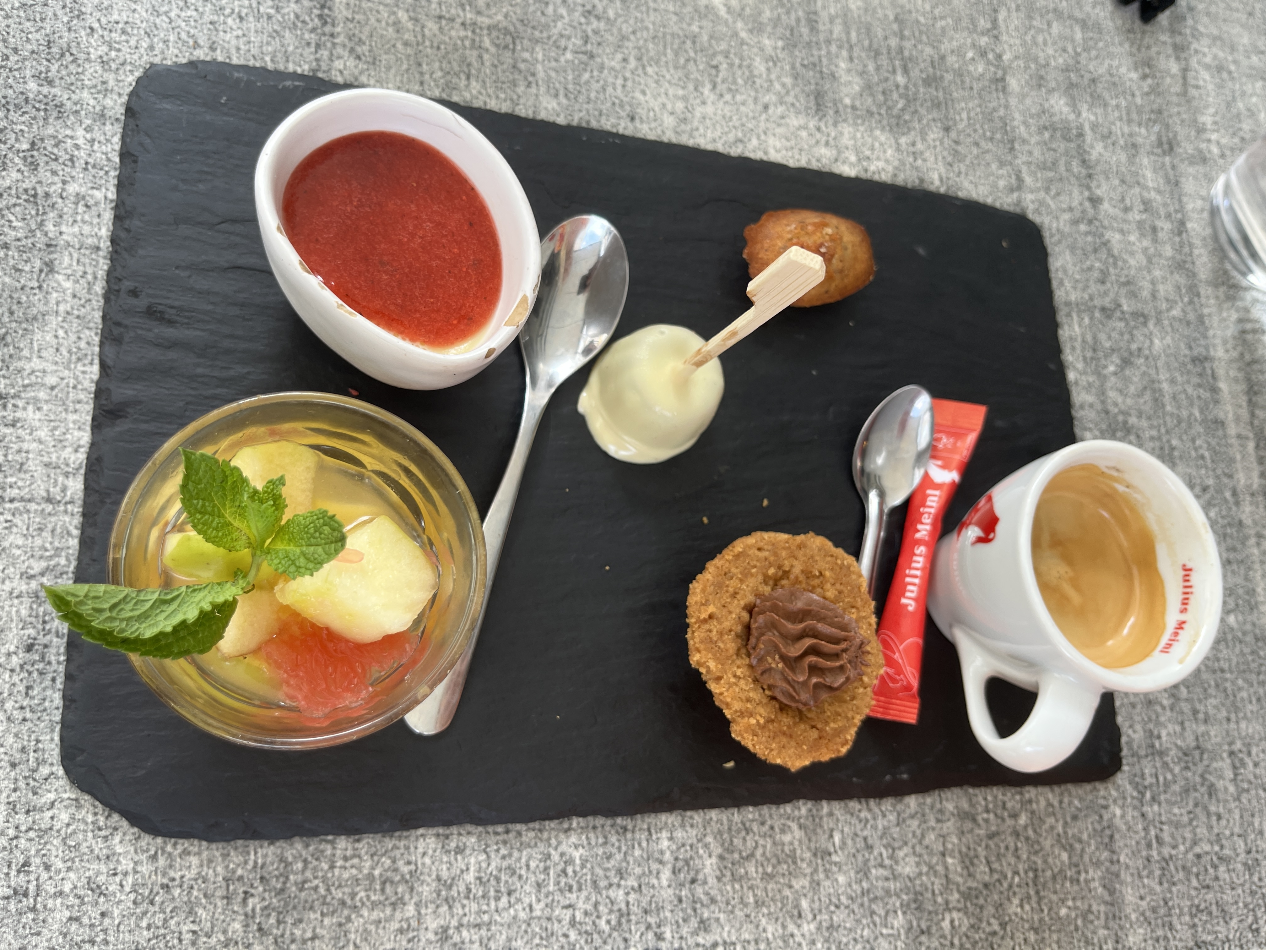 On a adoré notre pause déjeuner... ok le cognac tonic chauffe un peu les oreilles mais c'est couleur locale ! Merci de votre accueil !
