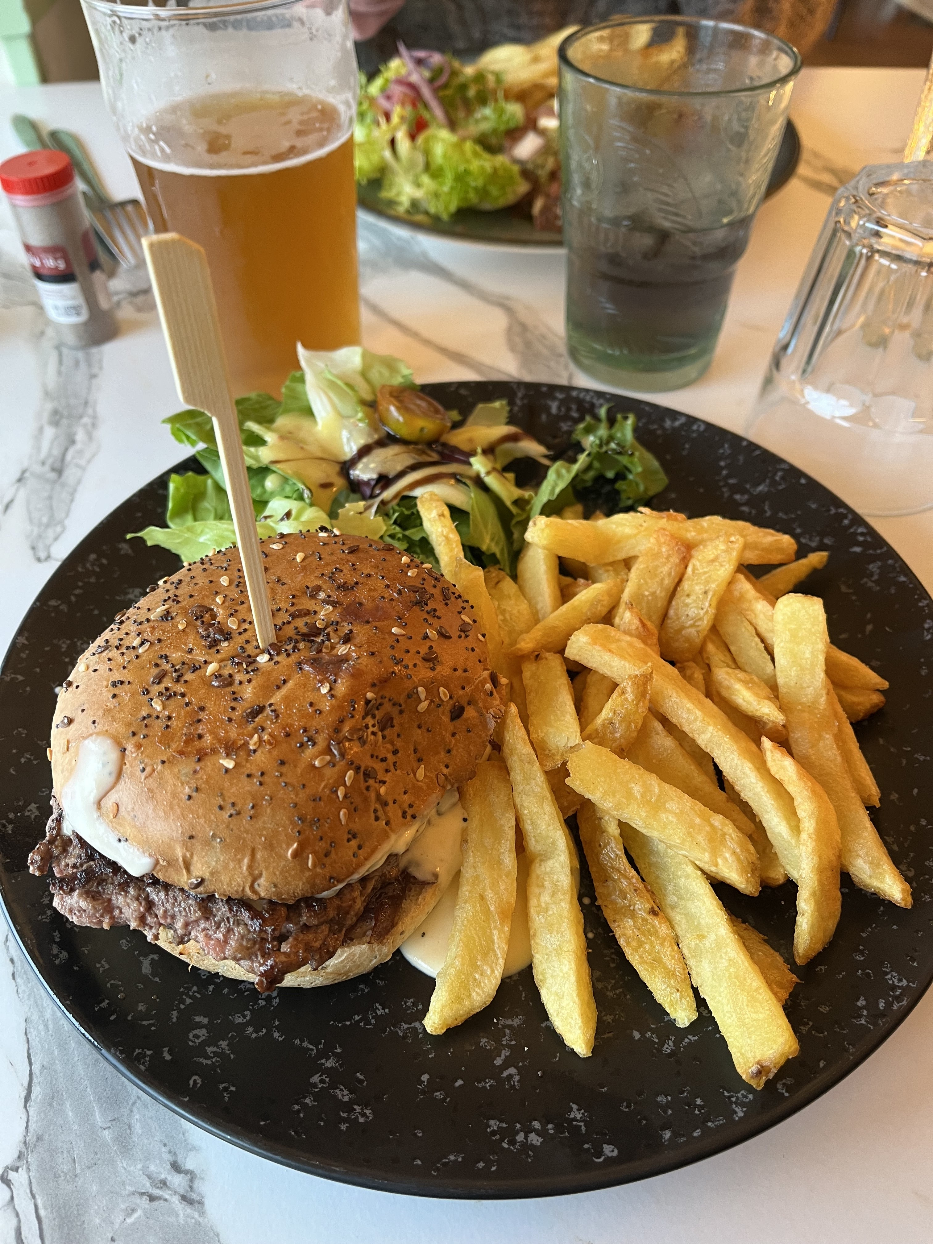 Nous venons de prendre un super hamburger et un tartare du feu de Dieu !!! Malgré une fréquentation de pointe, le service a été rapide, efficace et souriant.. Ça donne vraiment envie de revenir !!