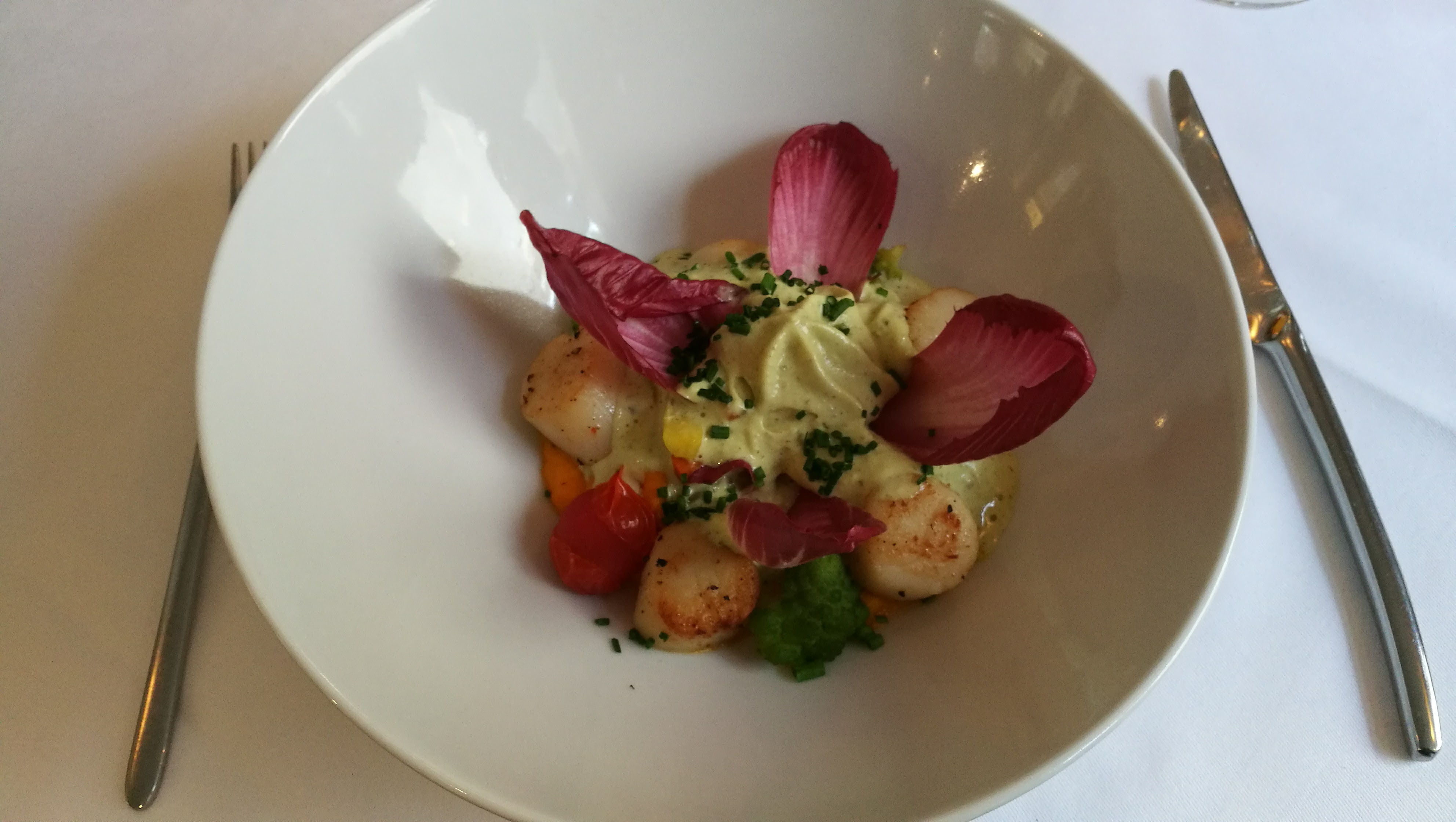 Restaurant très agréable aussi bien pour son personnel que pour la qualité des plats. Inutile d’avoir une carte à rallonge, et cela ils l’ont bien compris!☺️ Les différents choix d’entrées, plats ou desserts vous suffiront amplement. Tentez tout de même les suggestions😉 (Photos: noix de st Jacques, Bavarois avocats et jambon Serrano, magret de canard aux framboises)