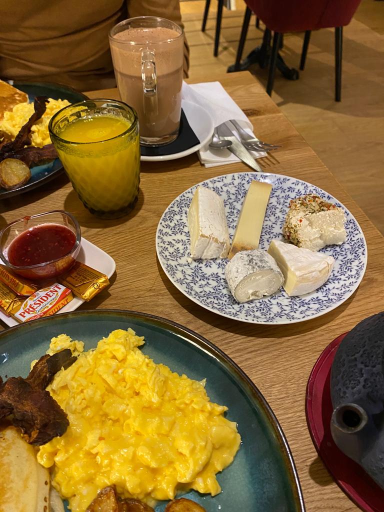 Petit brunch simple, mais copieux et fort bien préparé, les œufs brouillés étaient trop bons (baveux comme il faut) ! Un choix très correct de thés. Les pâtisseries avaient l'air aussi très bonnes. Par contre pas d'option de lait végétal, ce qui est très dommage.