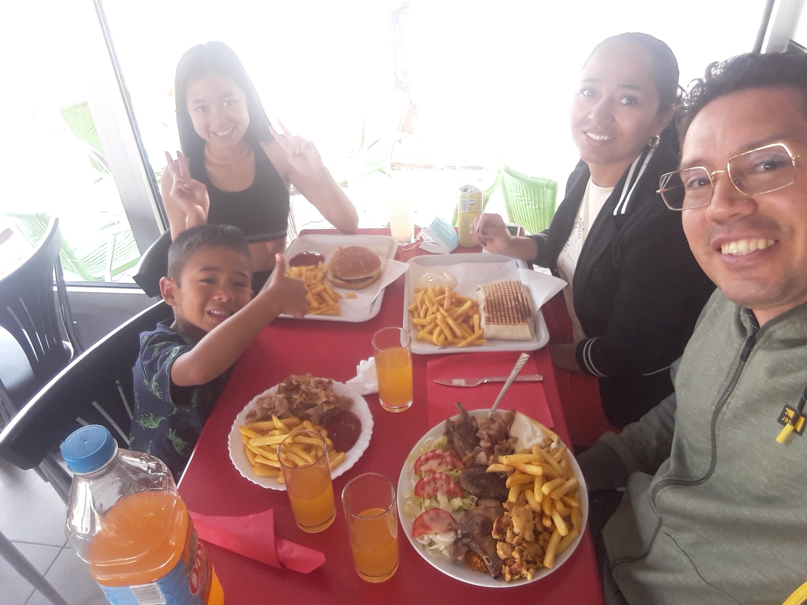 Nous y sommes allées ver 15h , une femme Nous a servis , elle etait àu téléphone avec quelqun qu'elle connaissait , elle n'a pas lâcher sont téléphone pour Nous demander notre commande , je pense que ce sont ses enfants ou dès personne de sa famille qui sont arriver , pas de bonjour de leur part , pas de Carte de fidélité , pas de sauce Avec les frites , kebab bien remplis de viande mais pas assez de salade tomate oignon .