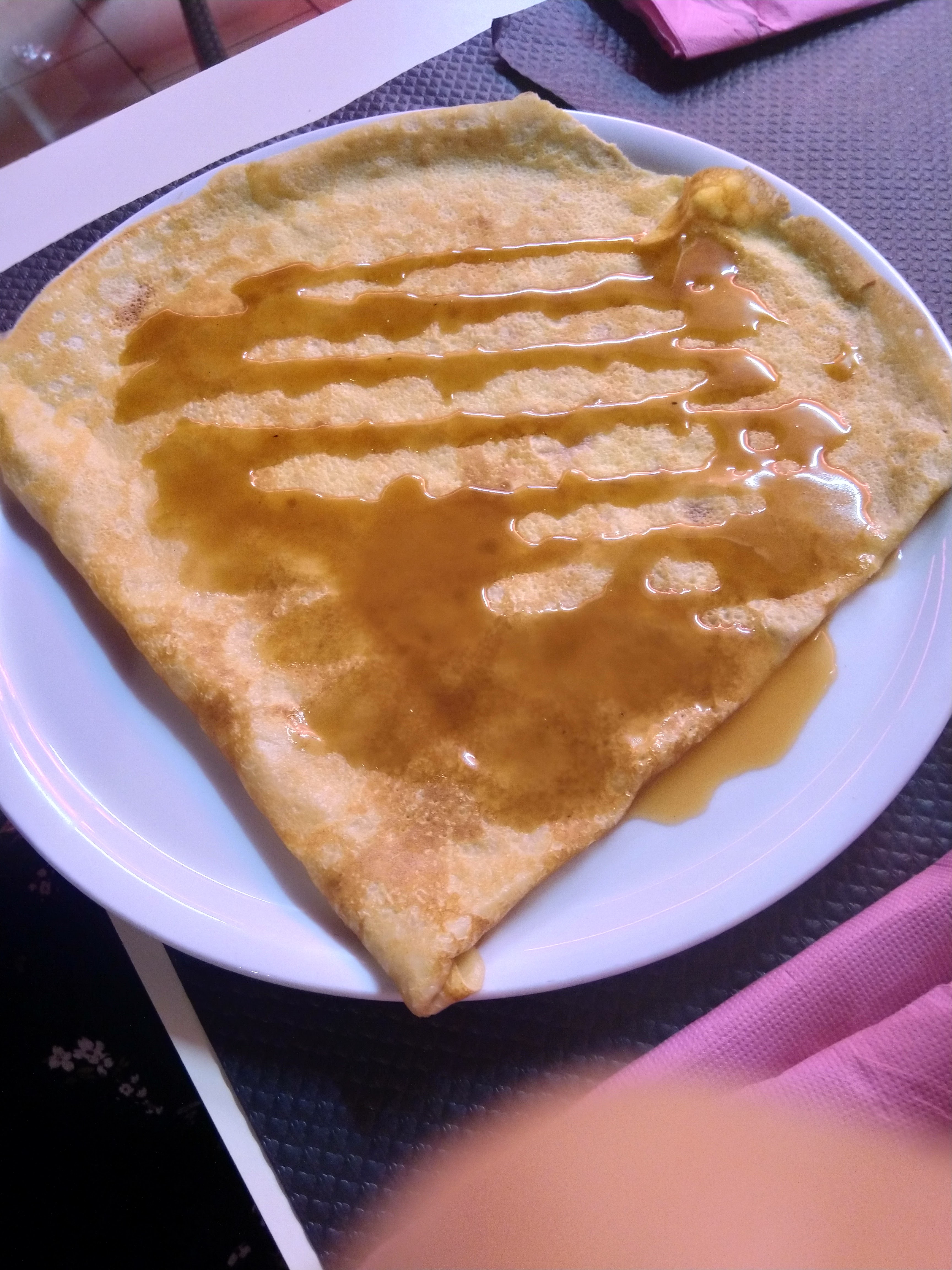Crêpe blanche peu cuite mais goûteuse. Accueil à peine aimable. J'attends encore le verre d'eau que j'ai demandé .