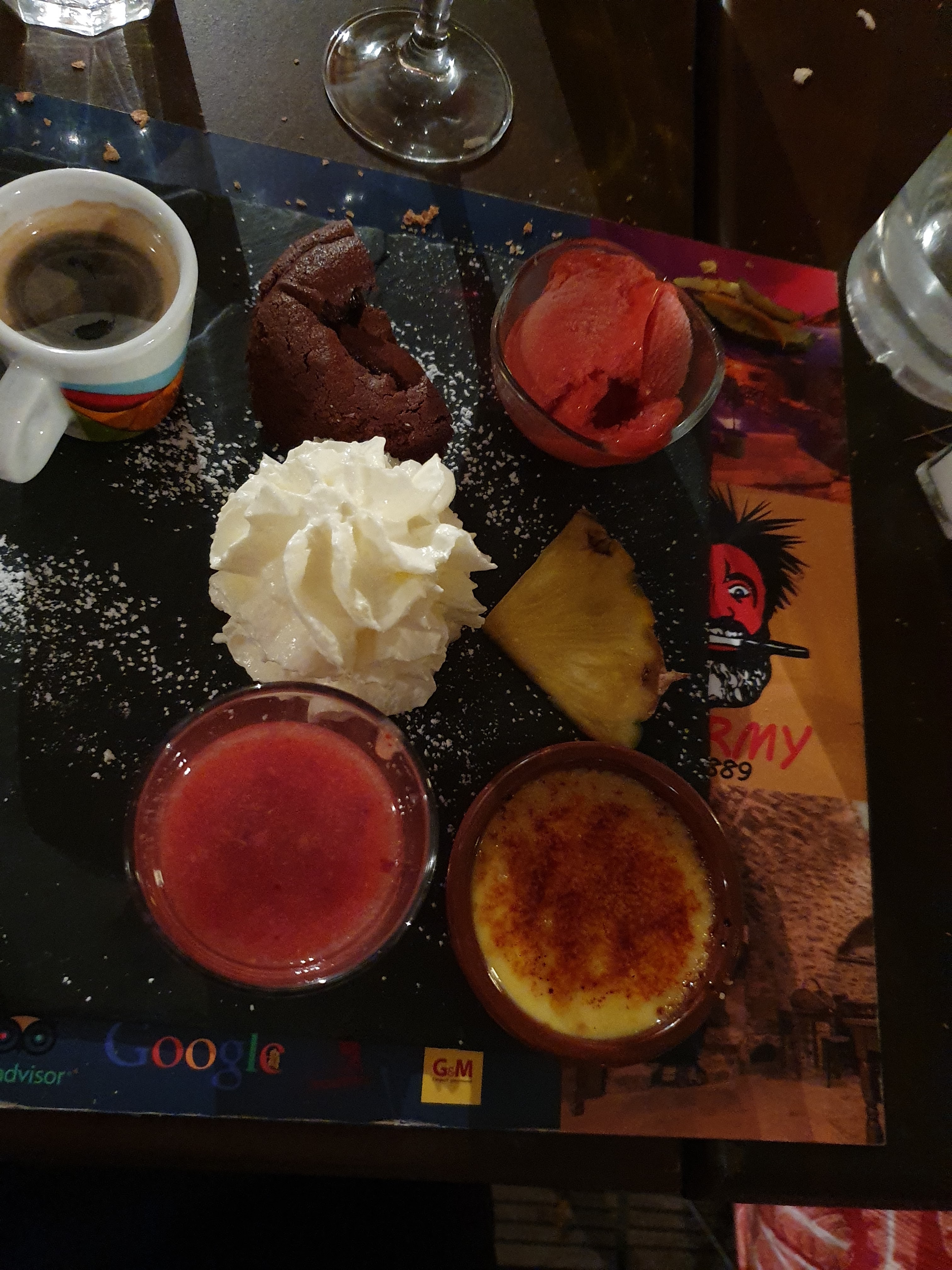 Le cadre est sympa, le service des serveuses et d'un serveur très bien mais alors au moment de la note désenchantement lorsque nous assistons aux discussions de deux serveurs qui parlaient très fort et tenant devant nous des propos extrêmement racistes(je precise que j'étais en compagnie d'une amie d'origine magrehbine à qui l'on a demandé d'où elle venait au moment de la note) nous repartons sidérées et choquées d'autant que le patron n'était pas bien loin et n'a absolument pas repris le serveur... C'est scandaleux.