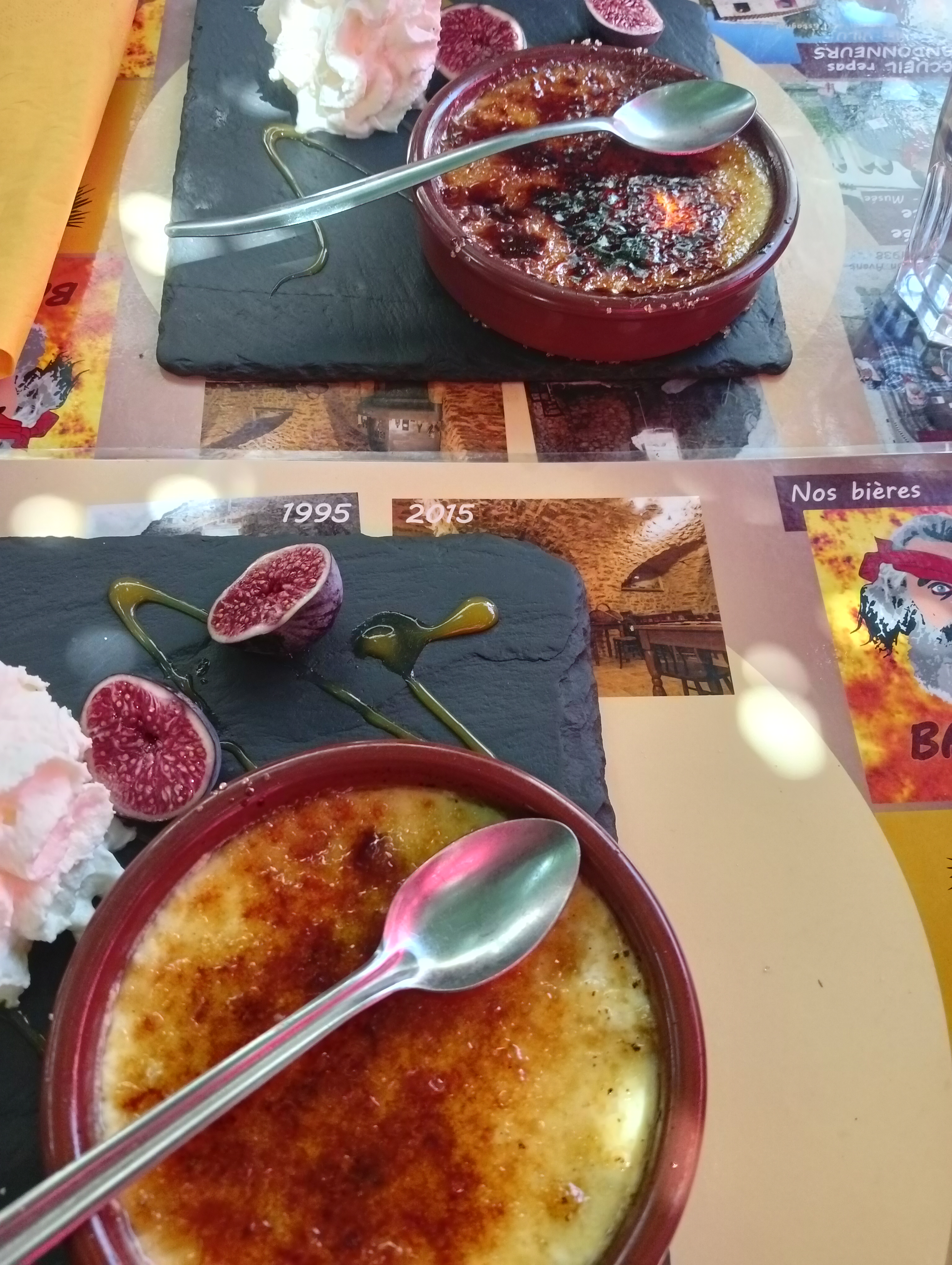 Assez déçu que les jus soient achetés au supermarché... je pensais que tout était fait maison et que les jus étaient pressés mais non. Le diabolo fraise avec de la limonade faite maison avait un goût chimique. Accueil pas spécialement sympathique non plus.