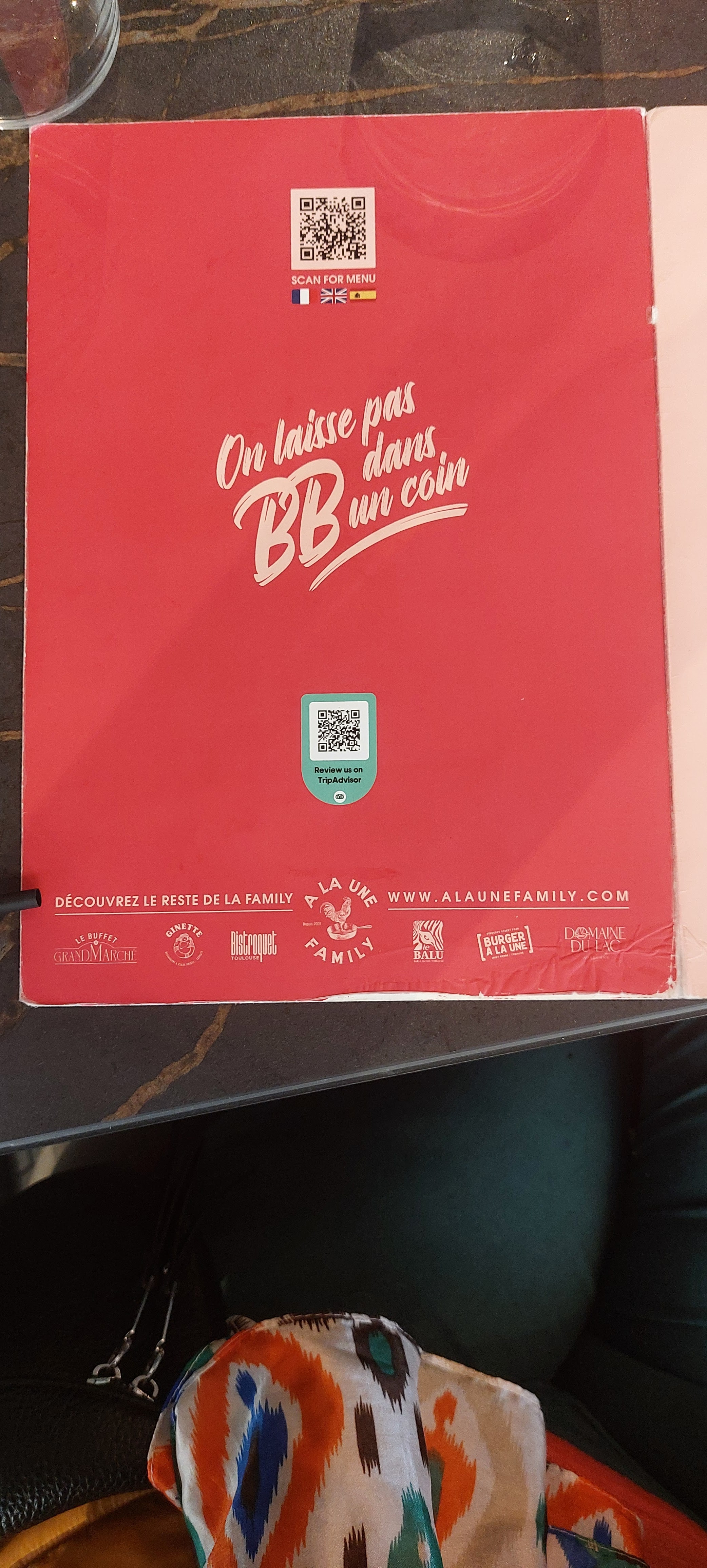 Nous avons réservé au 2ème service, donc 21h30. Conseil: flasher le QR code pour la carte car celle qu'on vous donne n'est pas à jour. Prix et plats différents. Sachez qu'il n'y a pas de plateau de fromages mais un seul fromage dans l'assiette. Quand la serveuse à posé l'assiette de fromage sur la table, on lui demande si c'est vraiment ça le plateau de fromage. Elle nous répond que Oui et s'en va. Beaucoup d'attente pour les apéritifs dont un oublie. Le repas était servi qu'il manquait encore un cocktail. Le pain est mou et donné dans une poche en papier. Le concept pourrait être sympa si c'était du bon pain. Plat pas très chaud. Encore un os dans l'assiette de chipirons. Les serveurs ont l'aire débordés. On a dû demander des assiettes, du pain et de l'eau. Si vous avez besoin d'aller au WC. Ne soyez pas pressé. Ne soyez pas non plus surpris de vous laver les mains sous une lumière rouge.