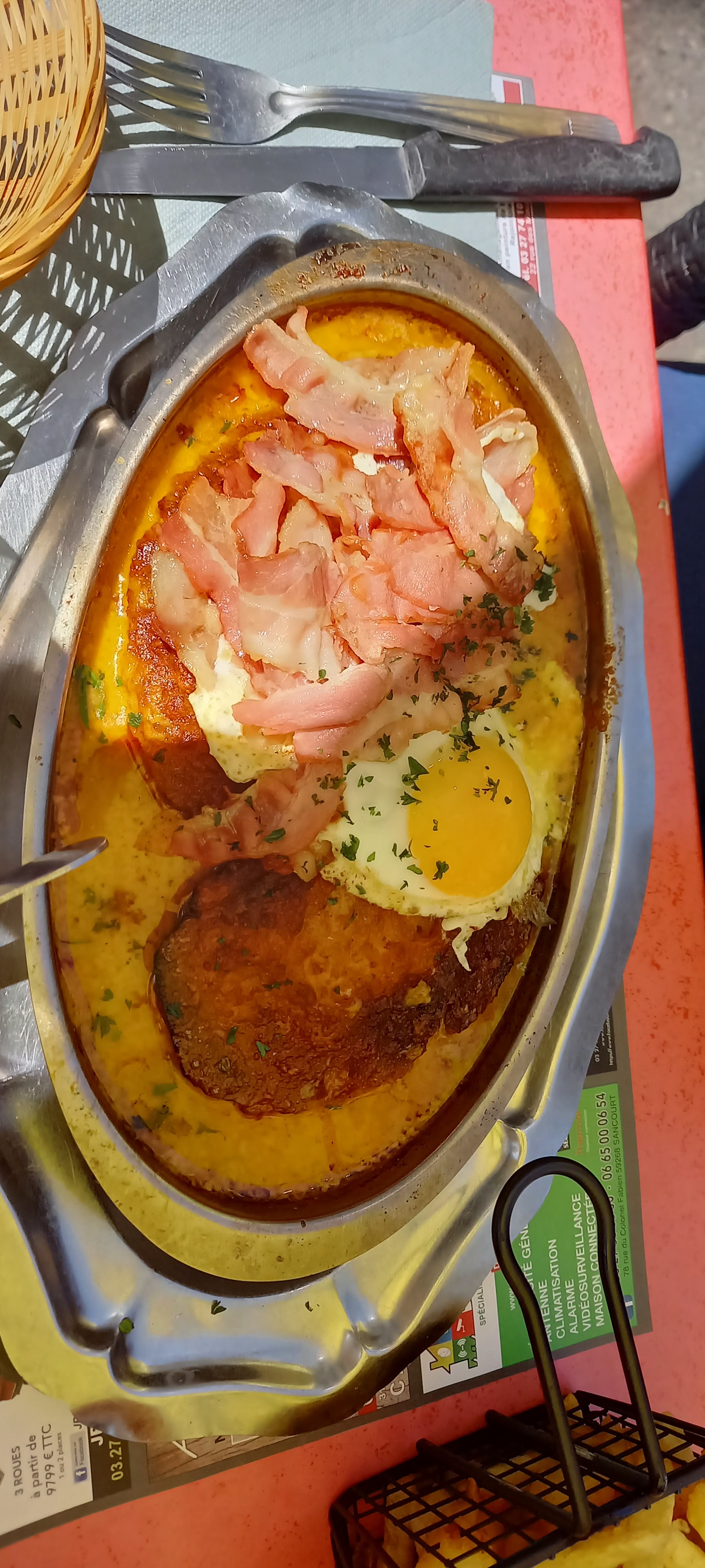 De retour d Allemagne, nous nous etions juste arreter pour casser la croute. C etait le plan initial. Sauf qu a la vue du menue ! C est devenu gargantuesque ! Welsh, moules frites, tripes, mais on aurait voulu aussi les cuisses de grenouilles et les escargots, de l andouillette, ... le menu est fou et fait rever ! Alors on passe quand meme aux desserts, qui permettent de clore ce festin en beaute et les patisseries sont servies avec chantilly et boules de glace ! Rajoutez a ca un personnel aux petits soins, d une extreme gentillesse et de bons conseils. Le plus dur dans tout ca, c est bien de quitter la table et cette excellente adresse ! Encore merci pour ce repas!