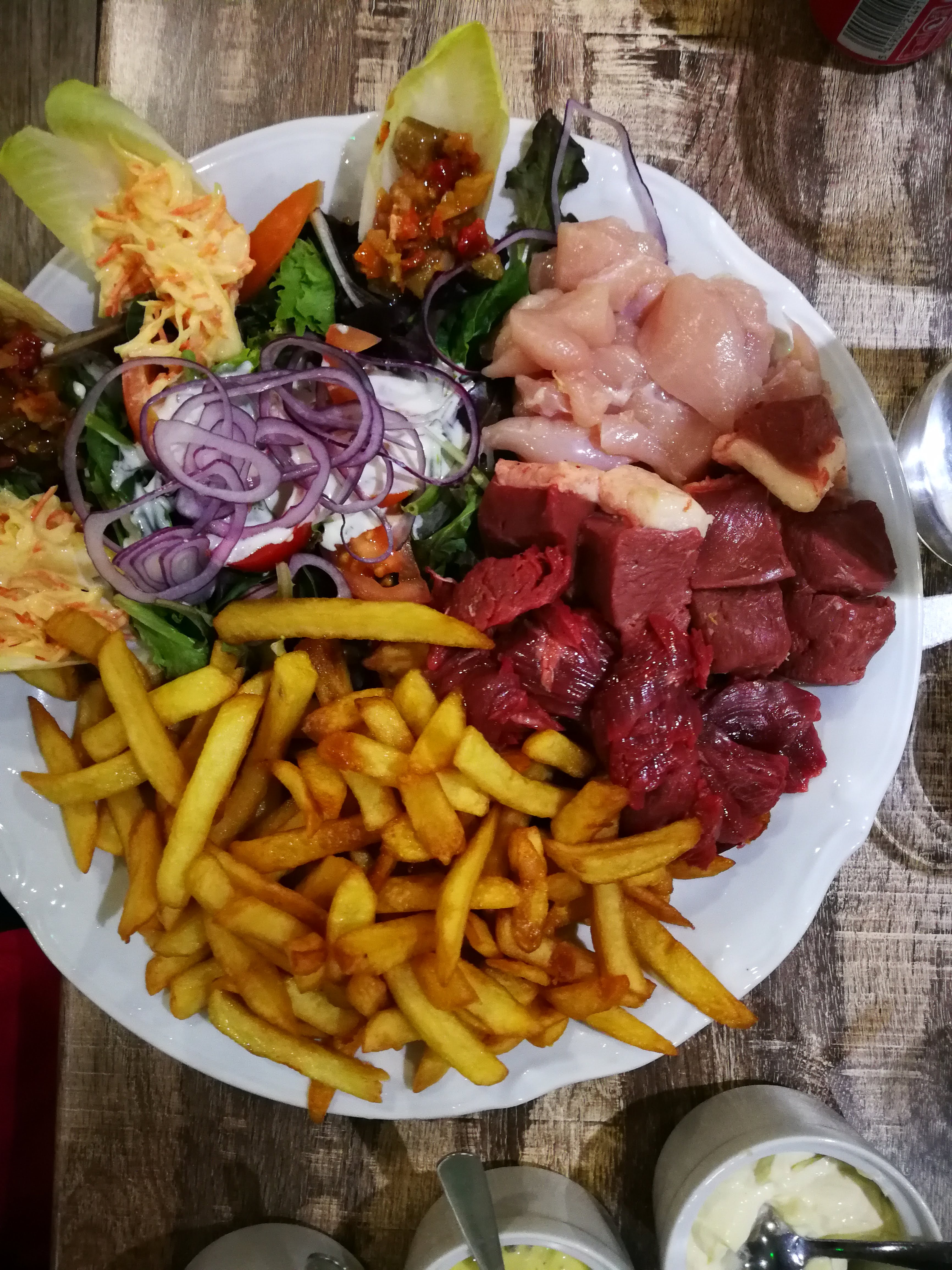 Très bon restaurant avec un serveur très sympa. La fondue 3 viandes était excellente, le service était un peu long mais étant le seul serveur à servir cela était normal. Un vrai régal 🤩