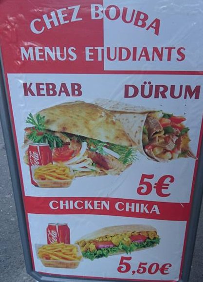 Pour avoir goûté quasiment tous les kebabs de Besançon, c’est vraiment chez Bouba que je vais le plus souvent, meilleur que beaucoup d’autres et certainement l’un des seuls qui n’a pas revu ses prix à la hausse (5€ le menu). De plus, le chef est quelqu’un d’adorable et propose une carte de fidélité.