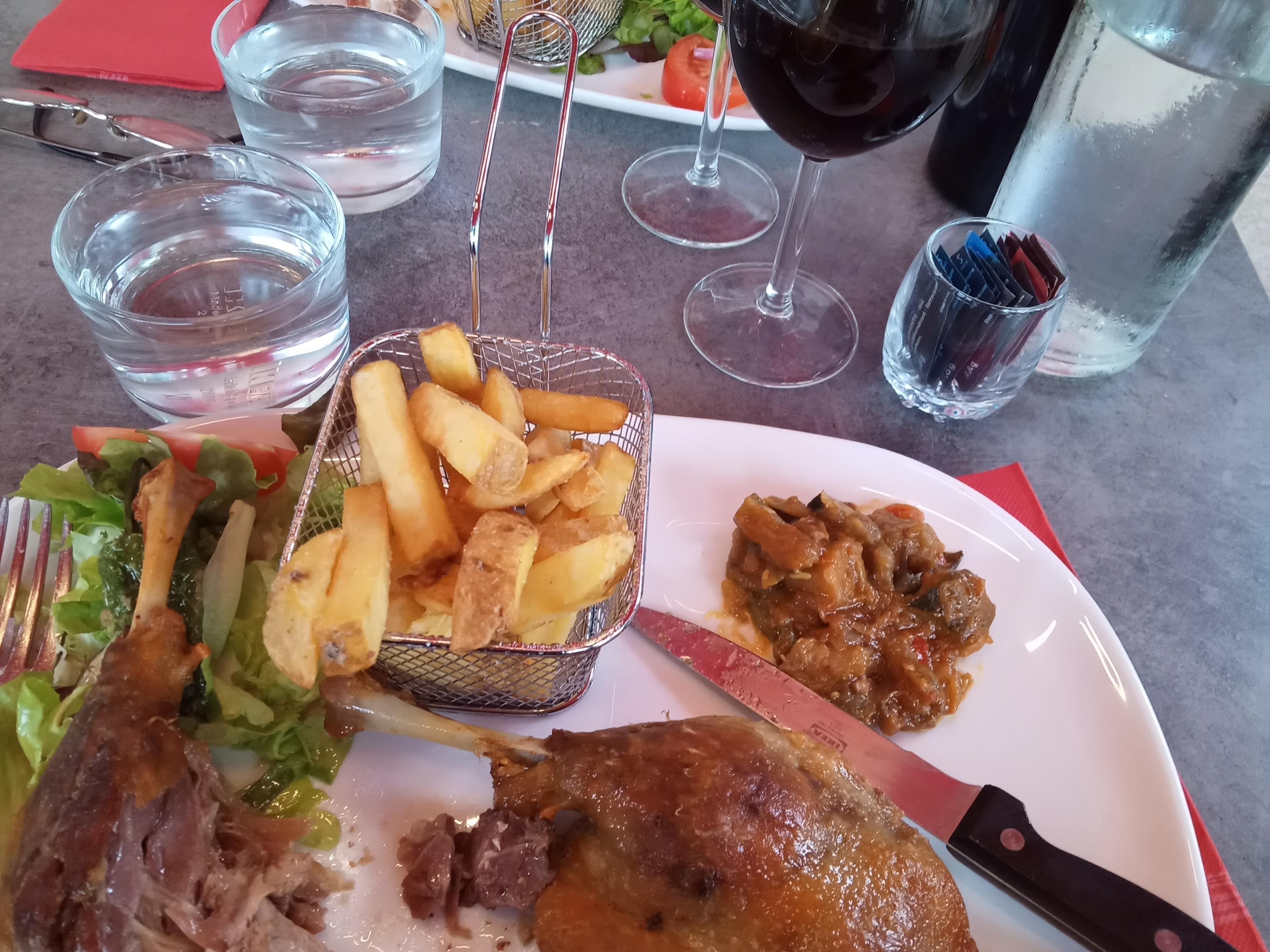 Simple et efficace le cuistot maitrise bien les cuissons les magrets sont excellents il fait bon mangé sous les platanes